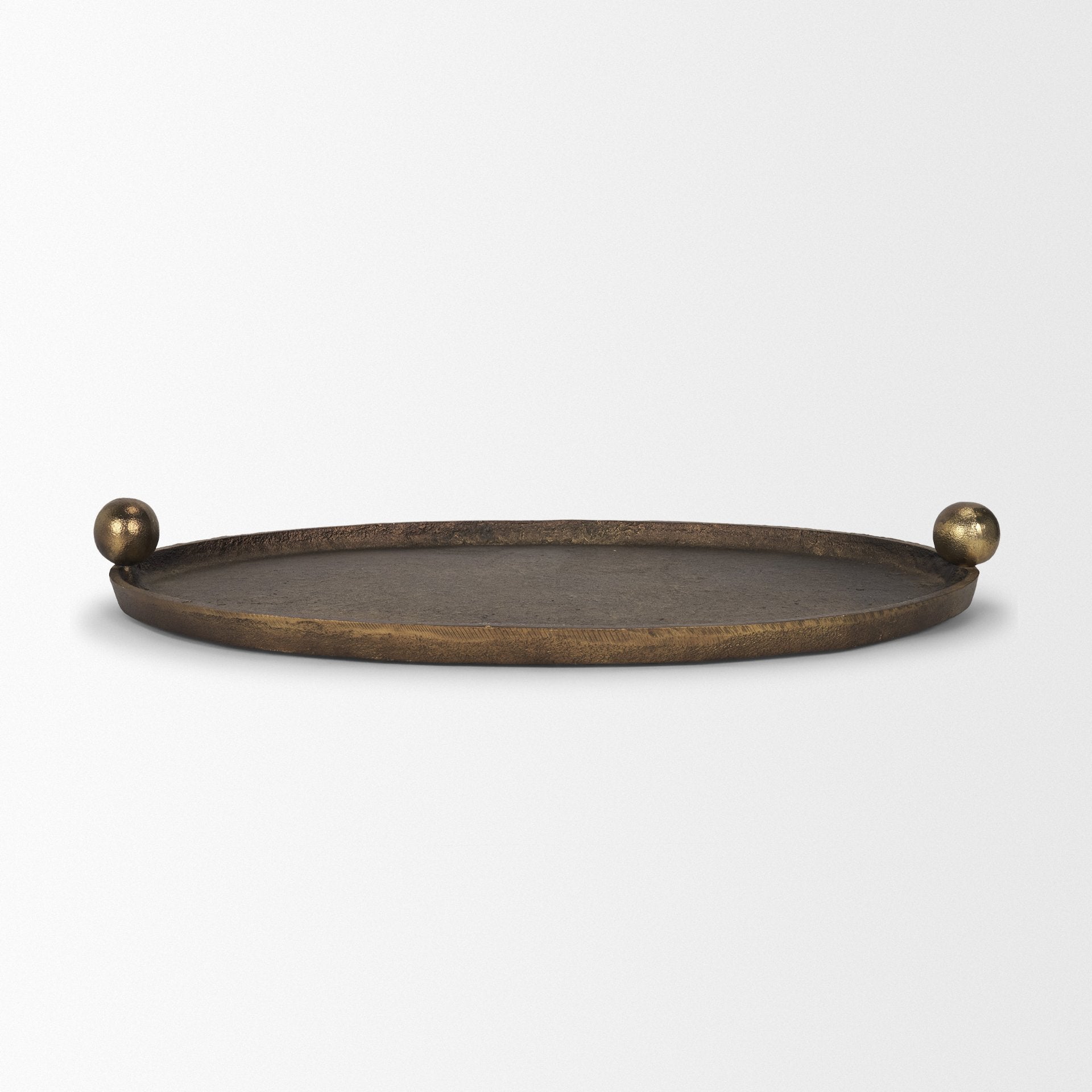 Jianna Small Oval Textured Antiqued Gold Metal Tray with Handles
