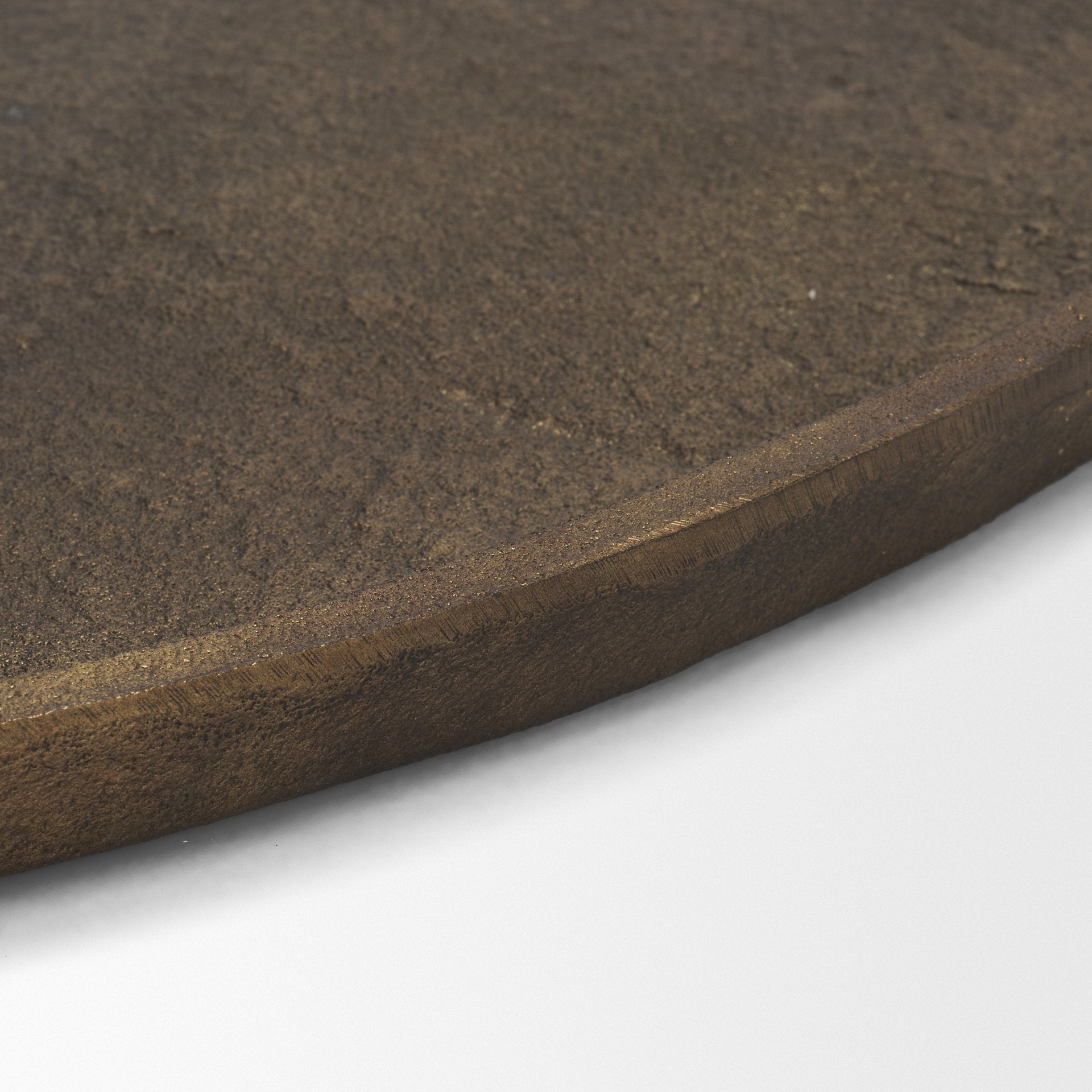 Oval tray with lip edge and raw, tactile surface for artisan appeal