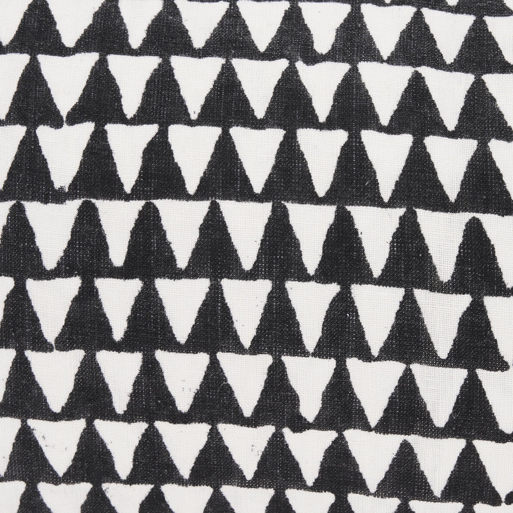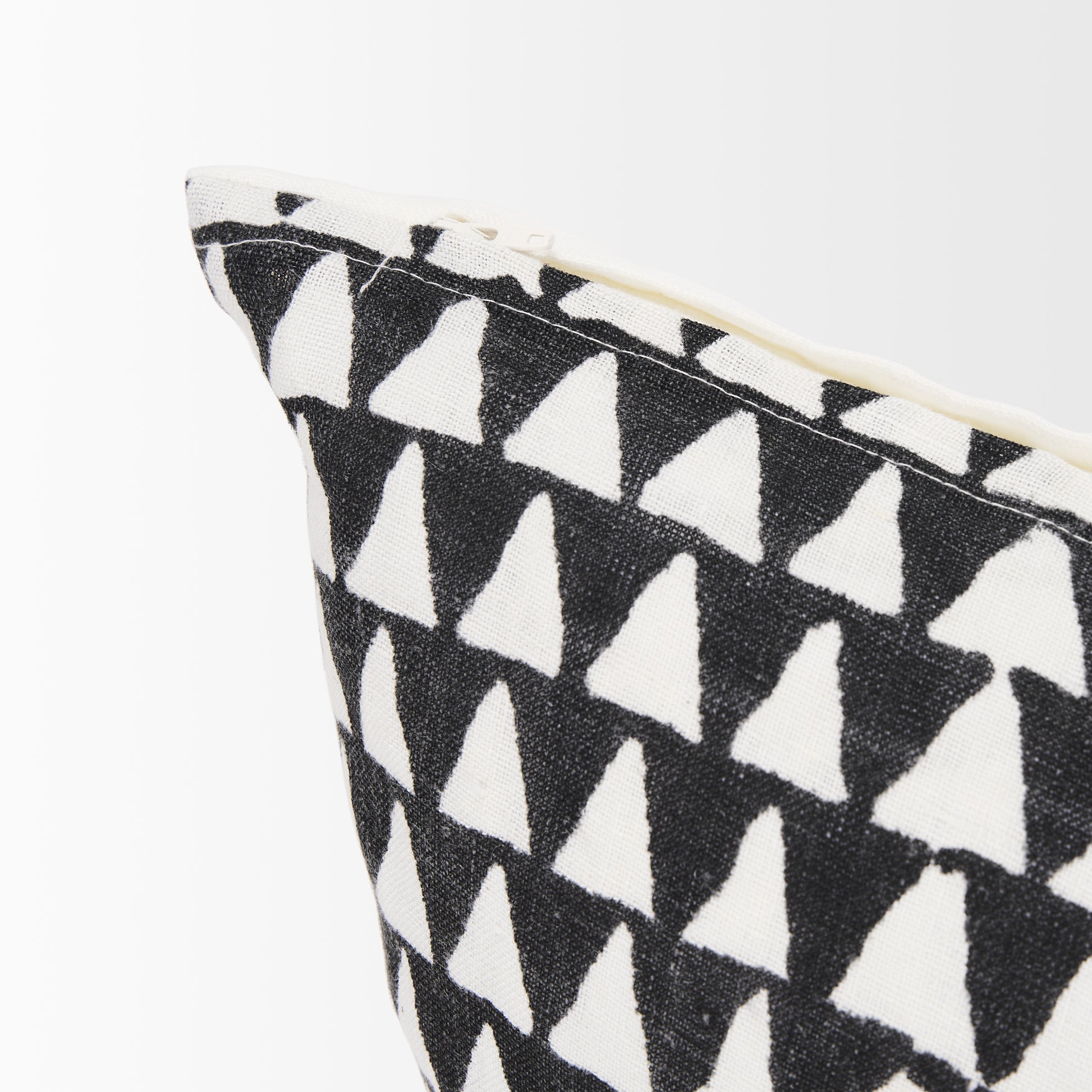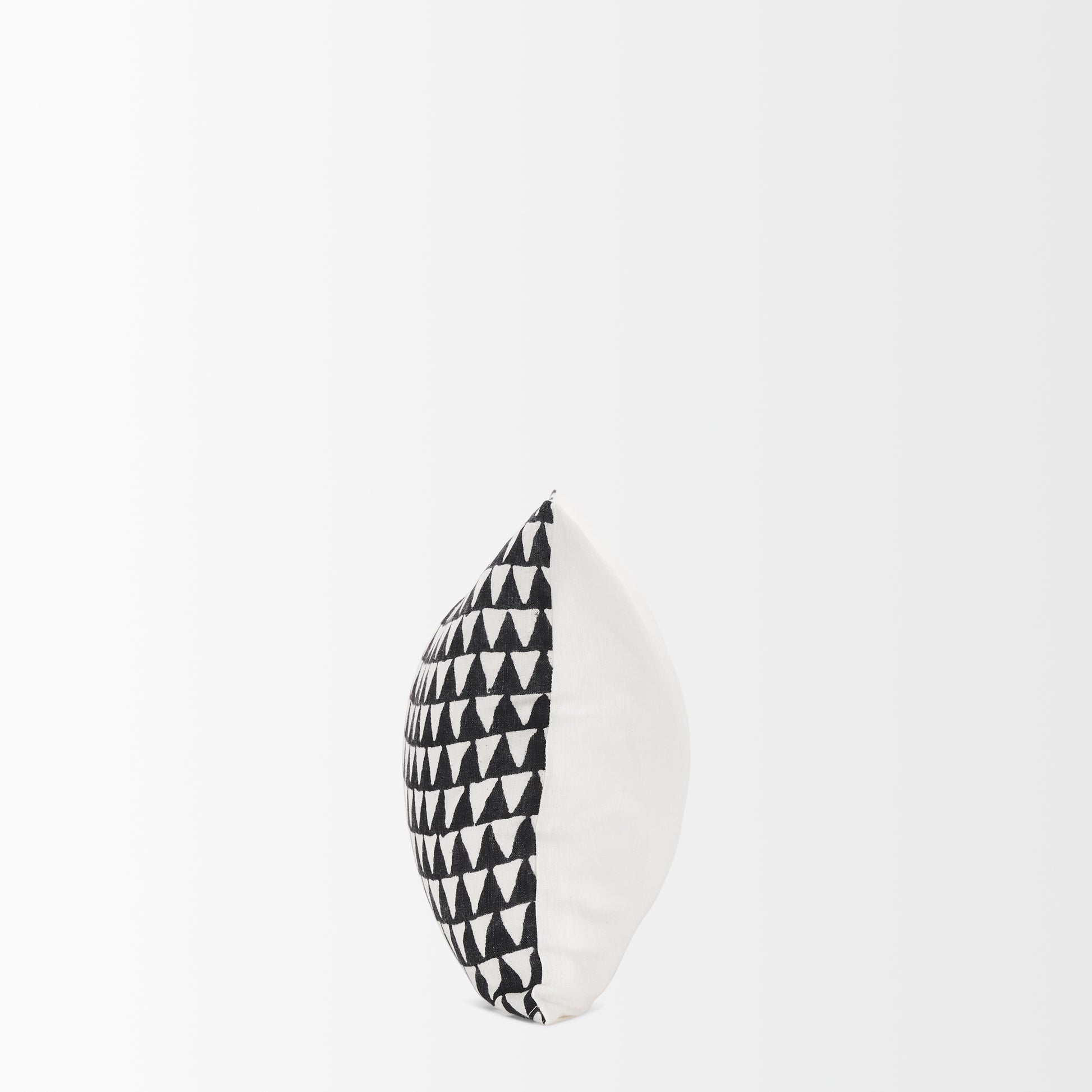 This lumbar Jolie Pillow Cover in cream linen has a black arrowhead print on one side.