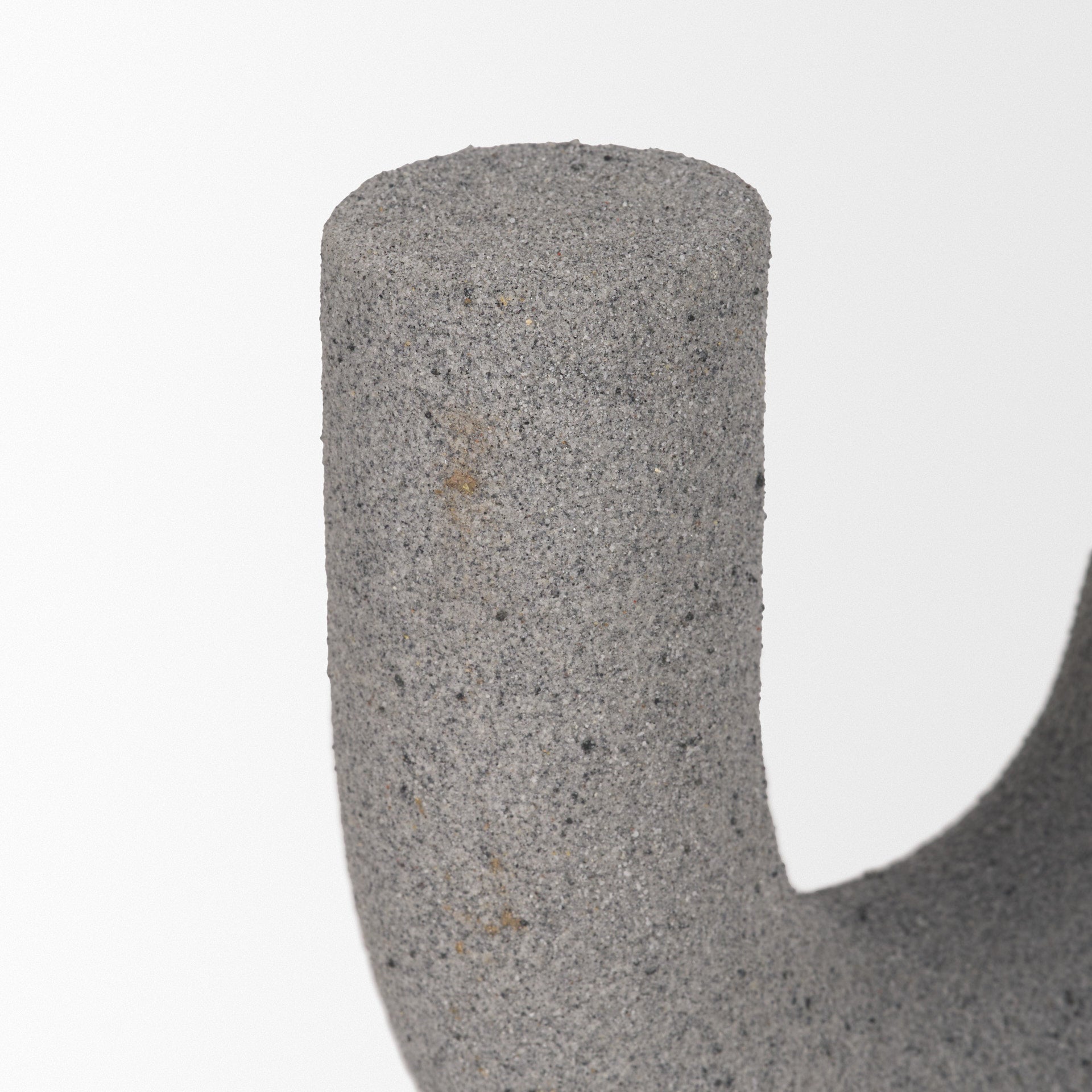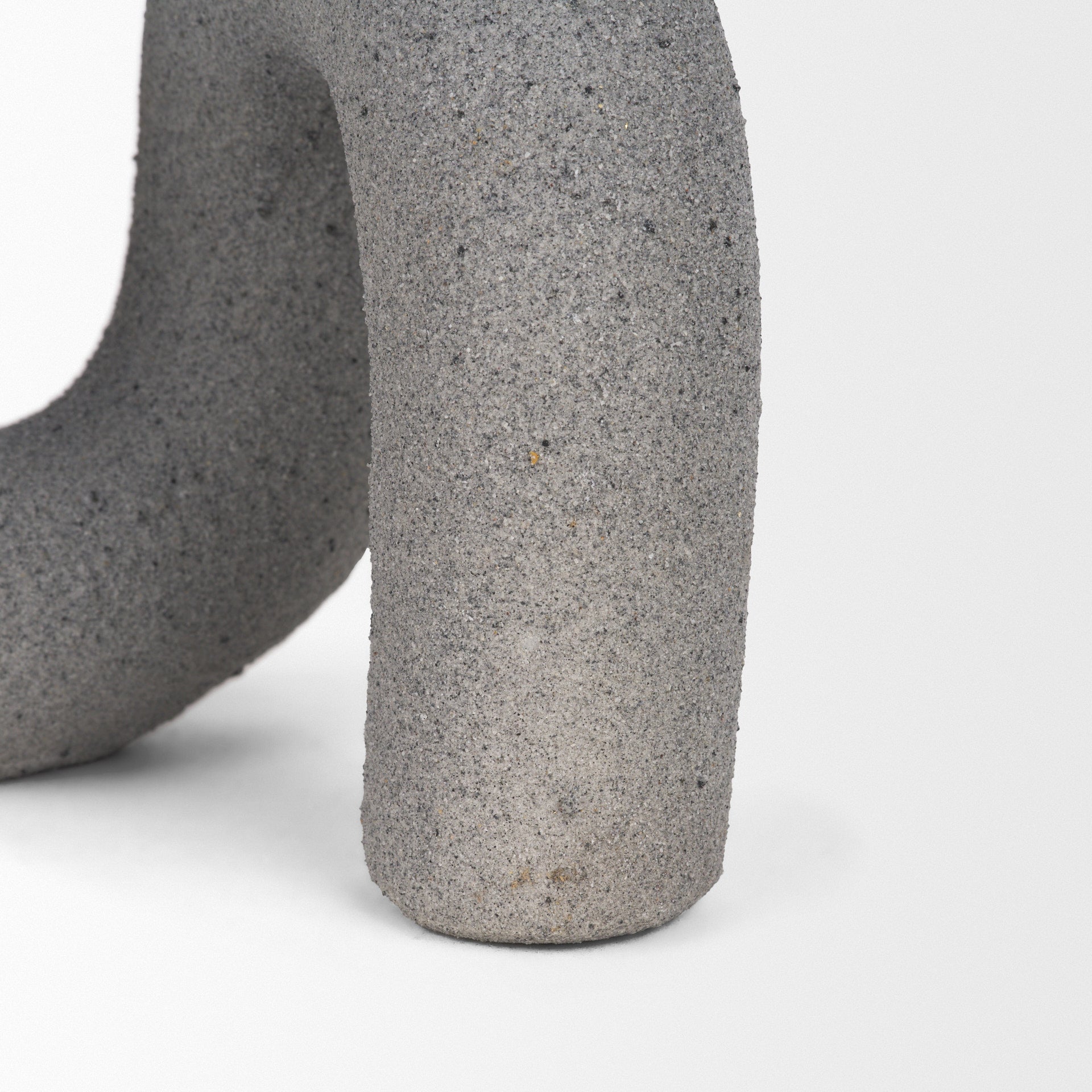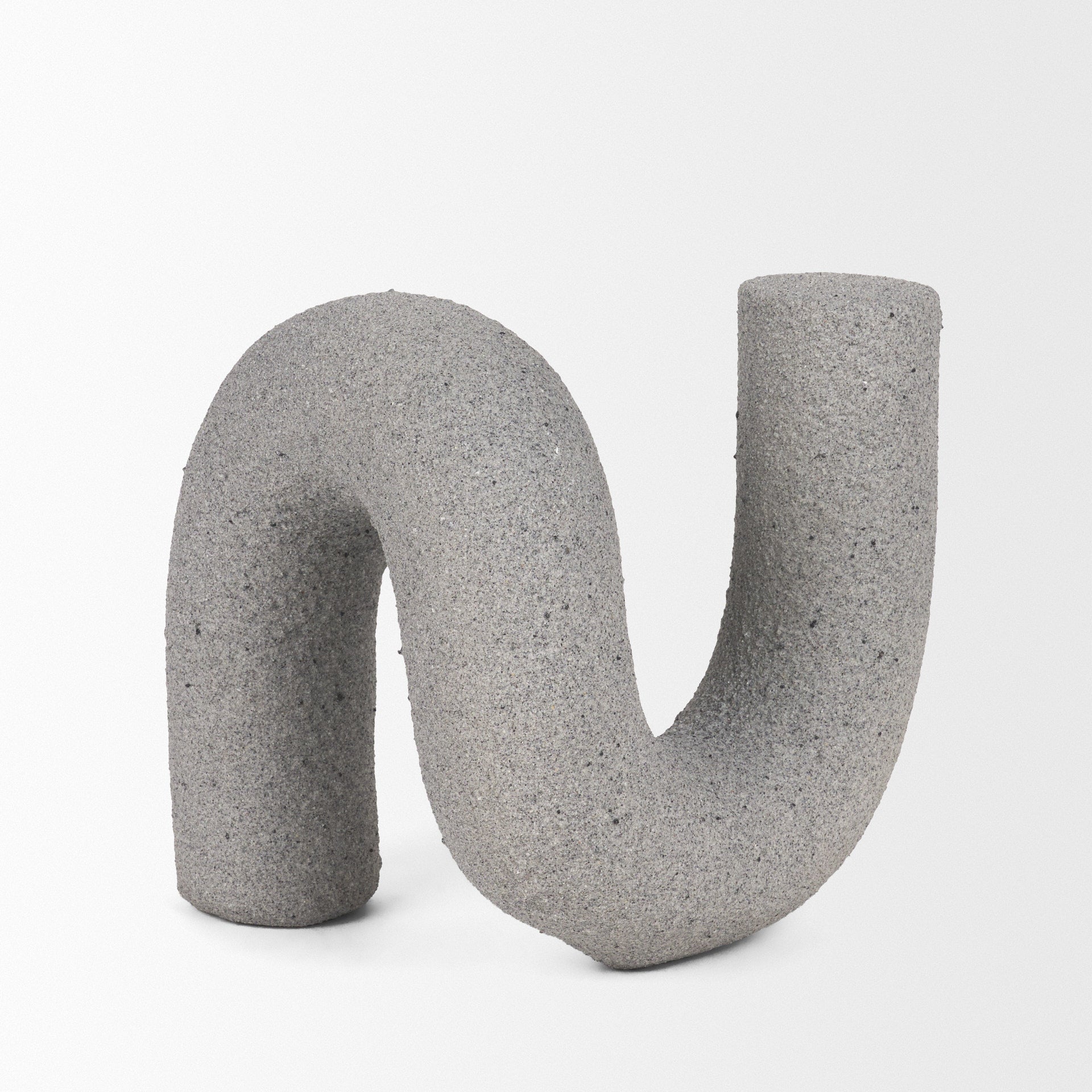 The Kailas decorative object features a sculptural U-shaped form with smooth curves and a concrete gray resin finish—an artful interior accent with a modern, architectural feel.