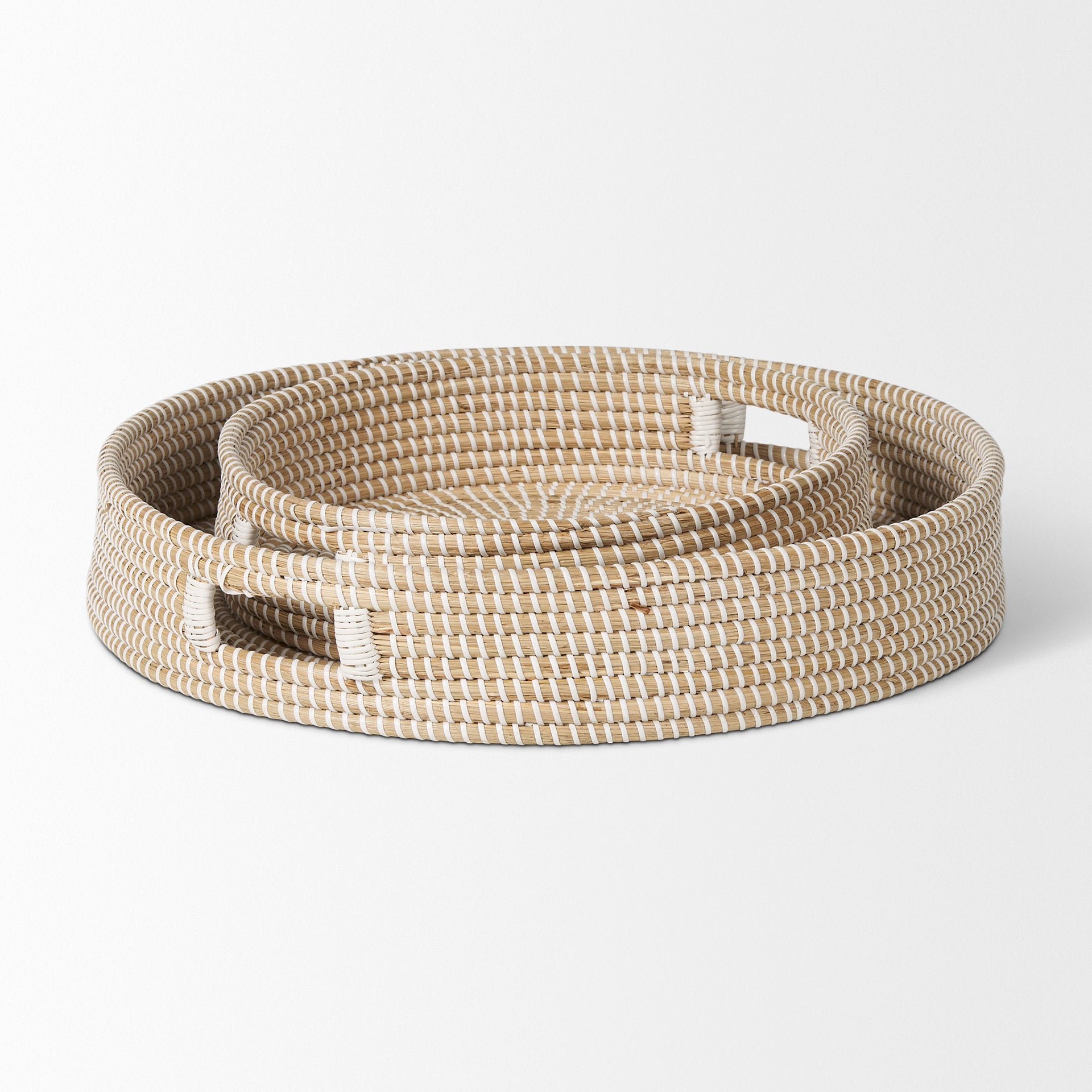 Kalama Set of 2 Large Round Seagrass Trays w/ Handles