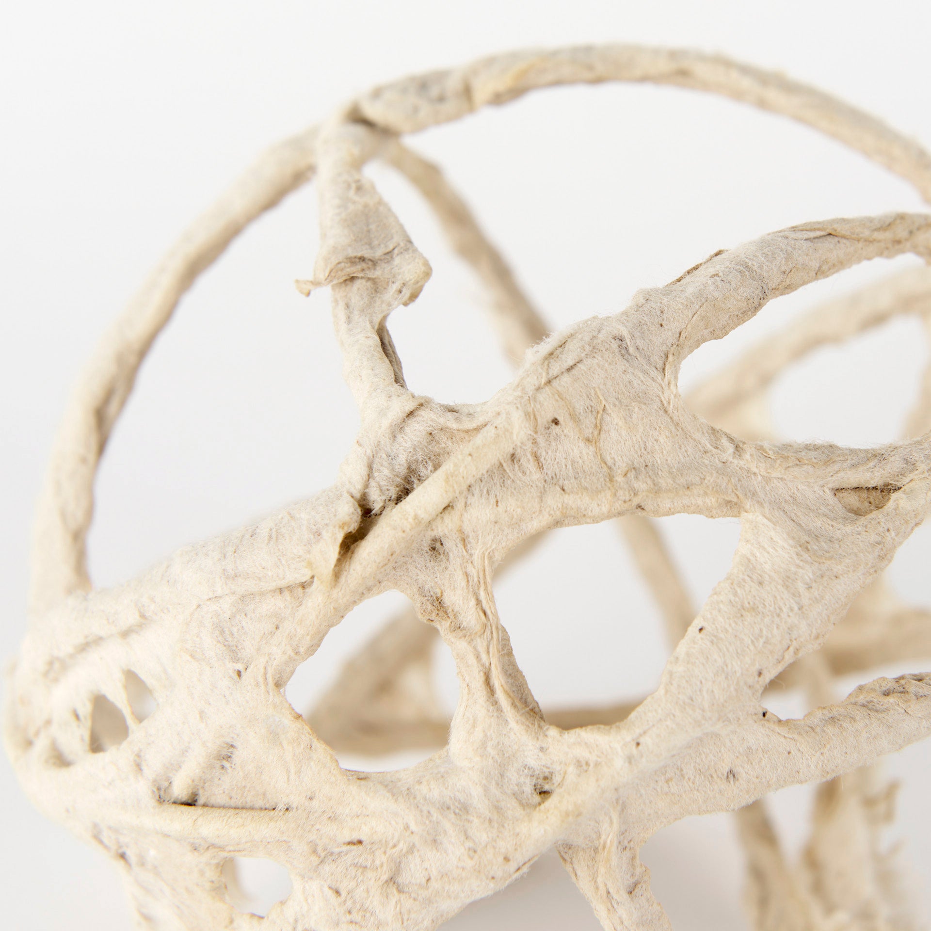 A beautiful beige decorative object made from paper and metal that will add interest to a light and airy color scheme