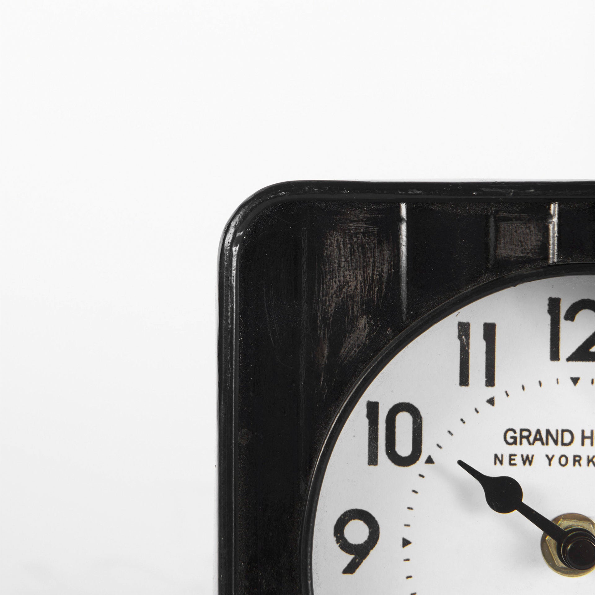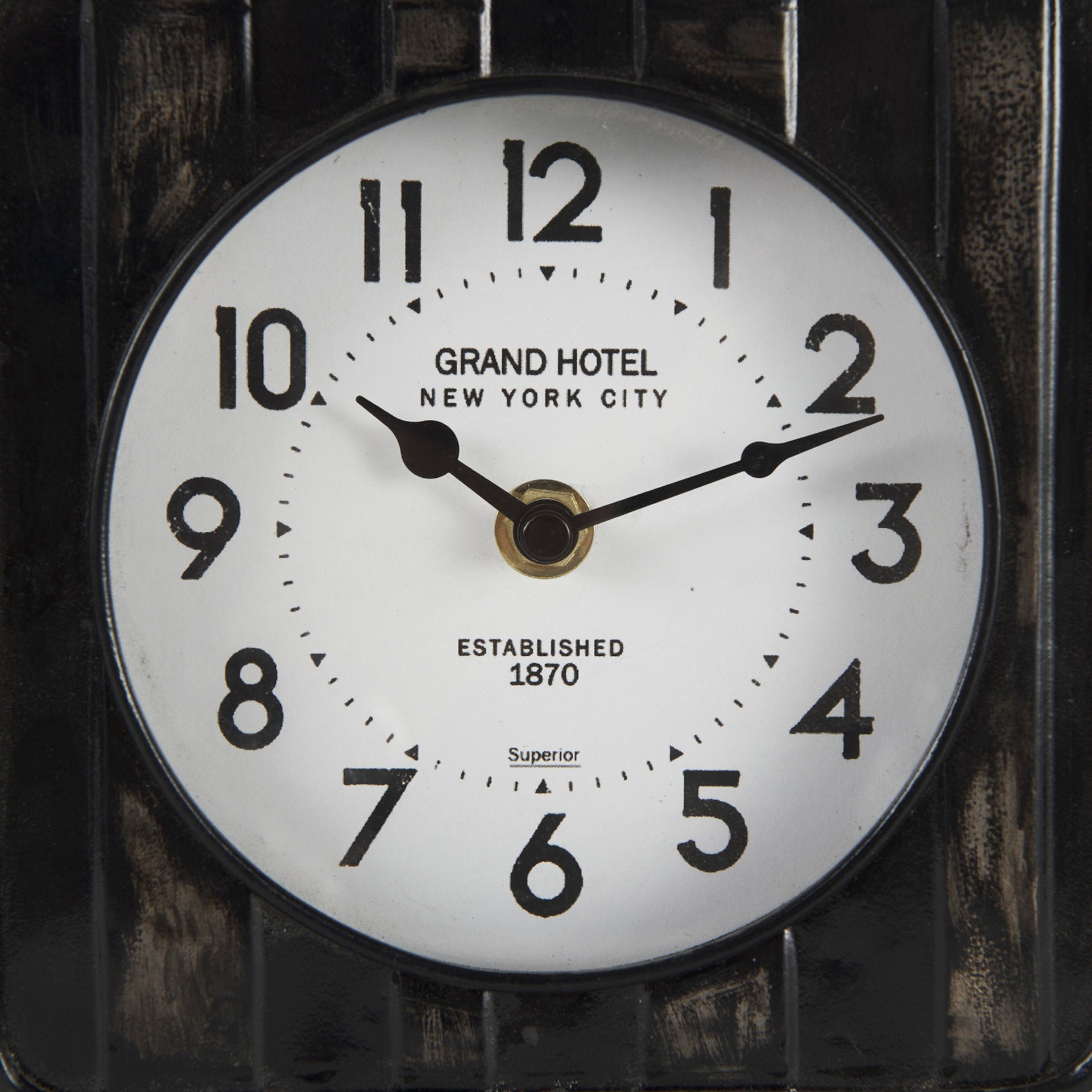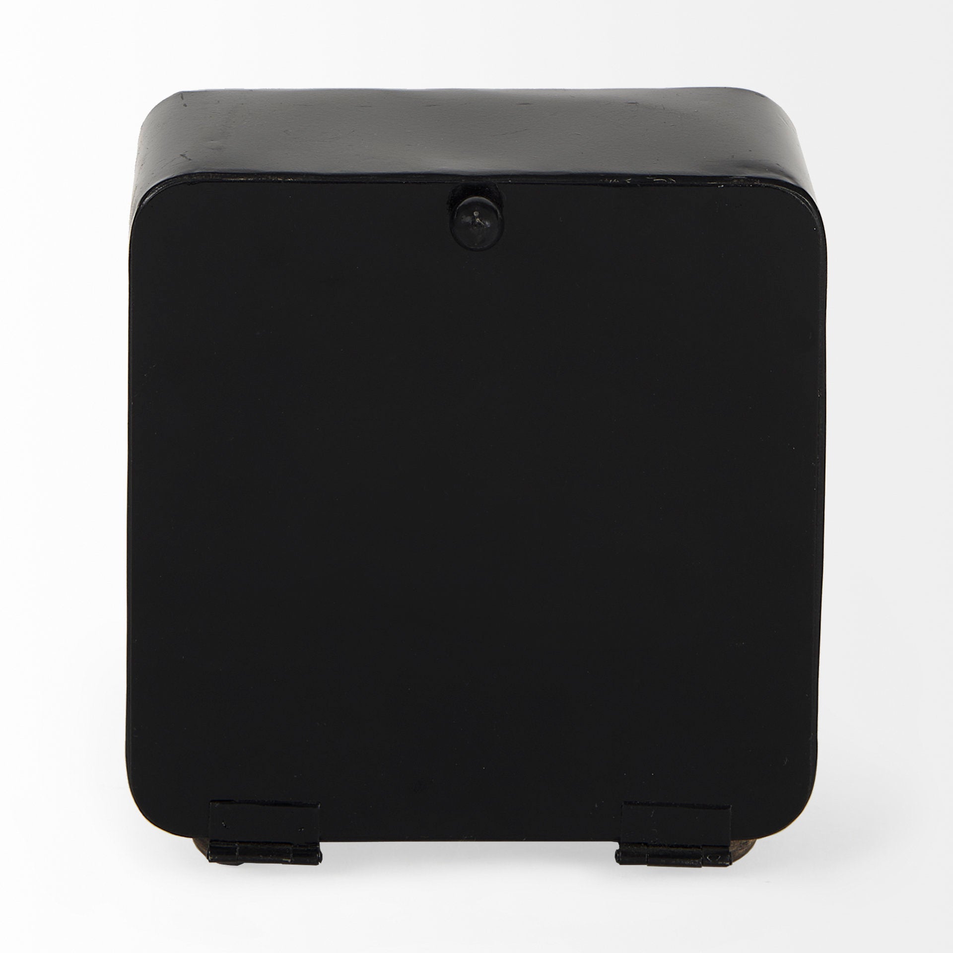 Karl 6.0L x 3.0W x 6.8H Rustic Black Iron Rounded Square Table Clock