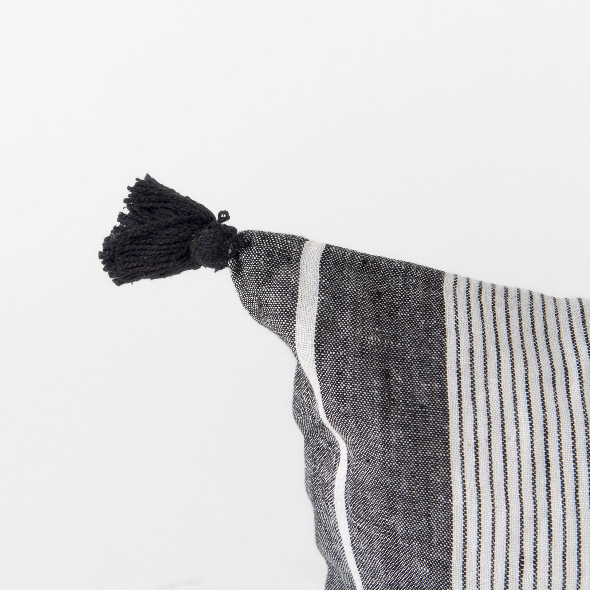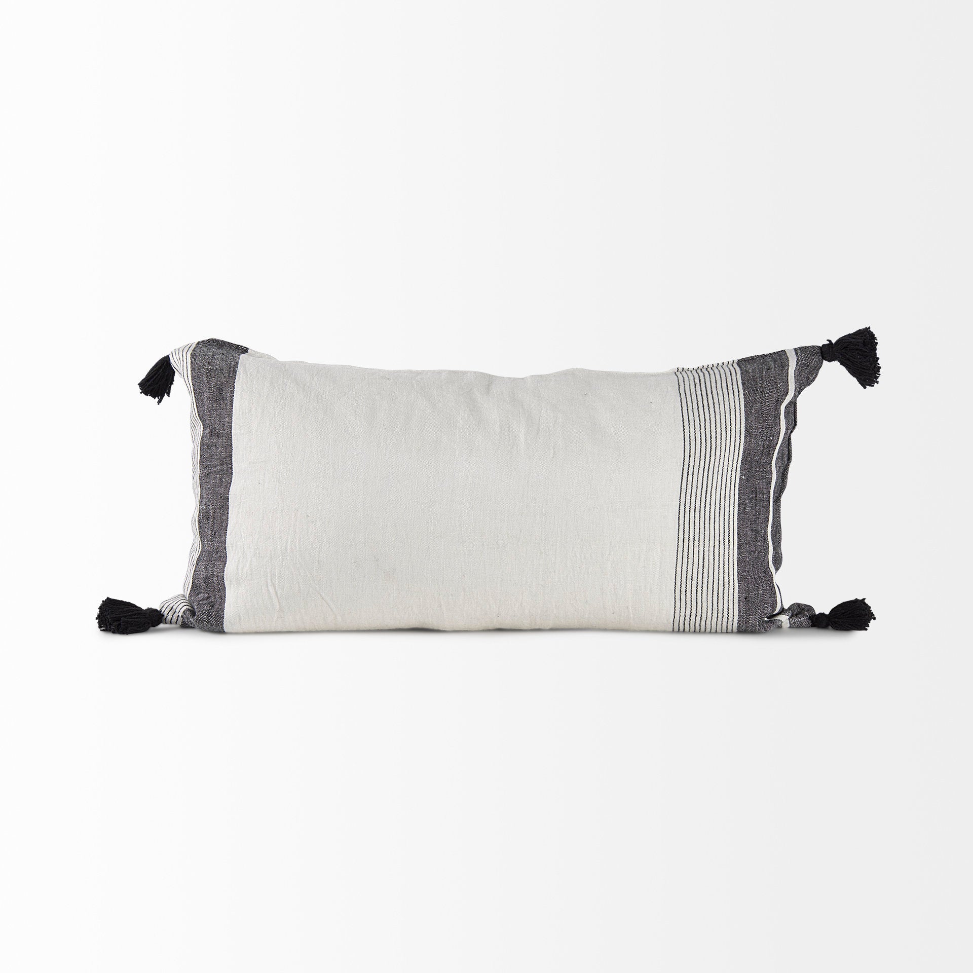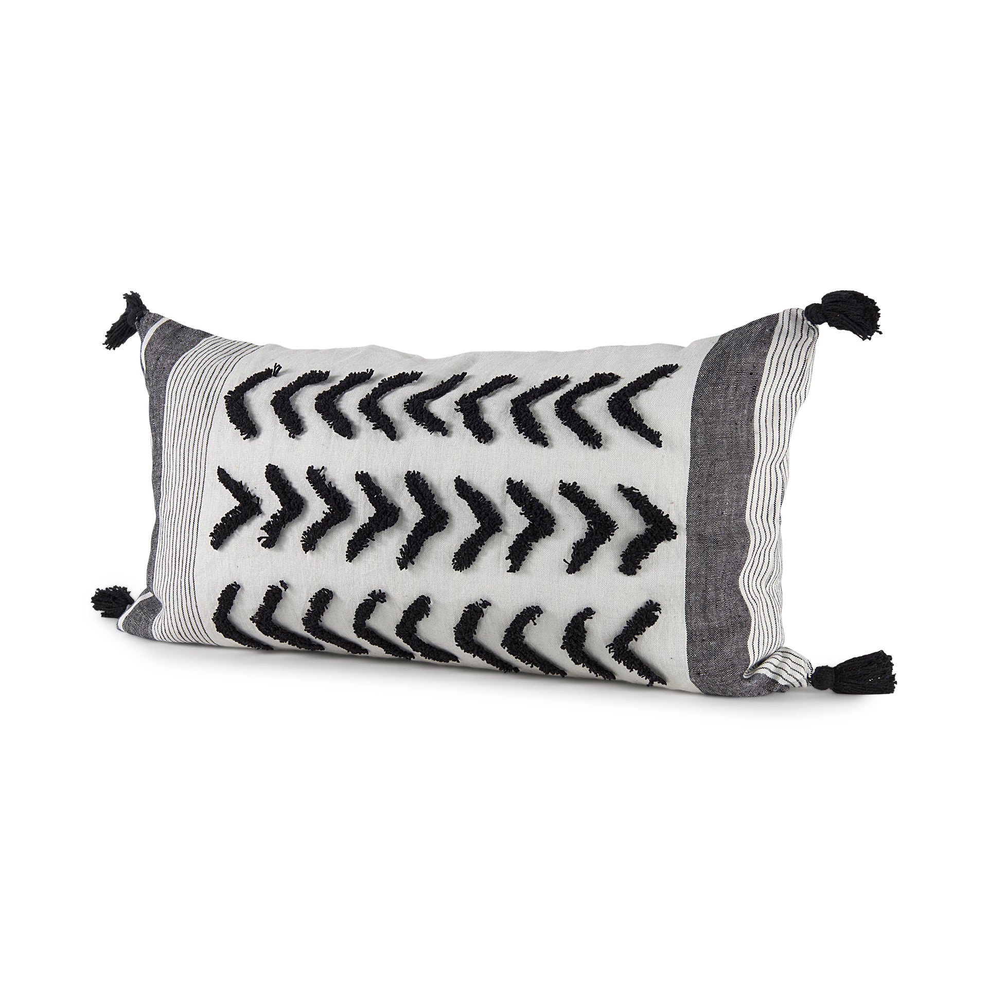 Kimia 14L x 26W White and Black Fabric Herringbone and Fringed Decorative Pillow Cover