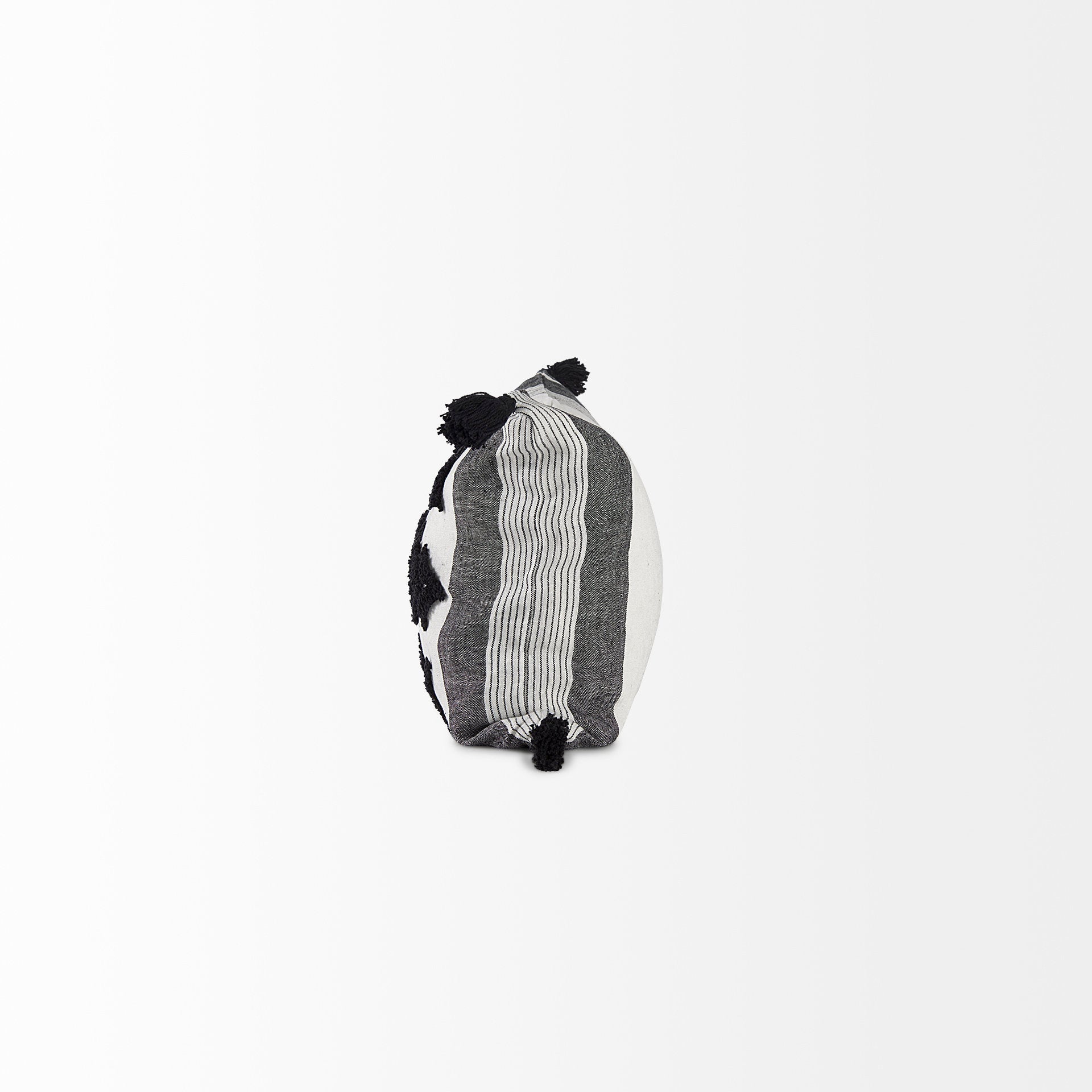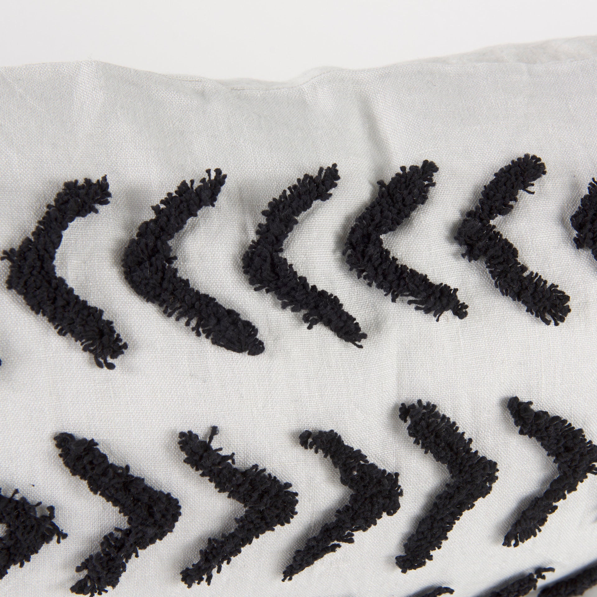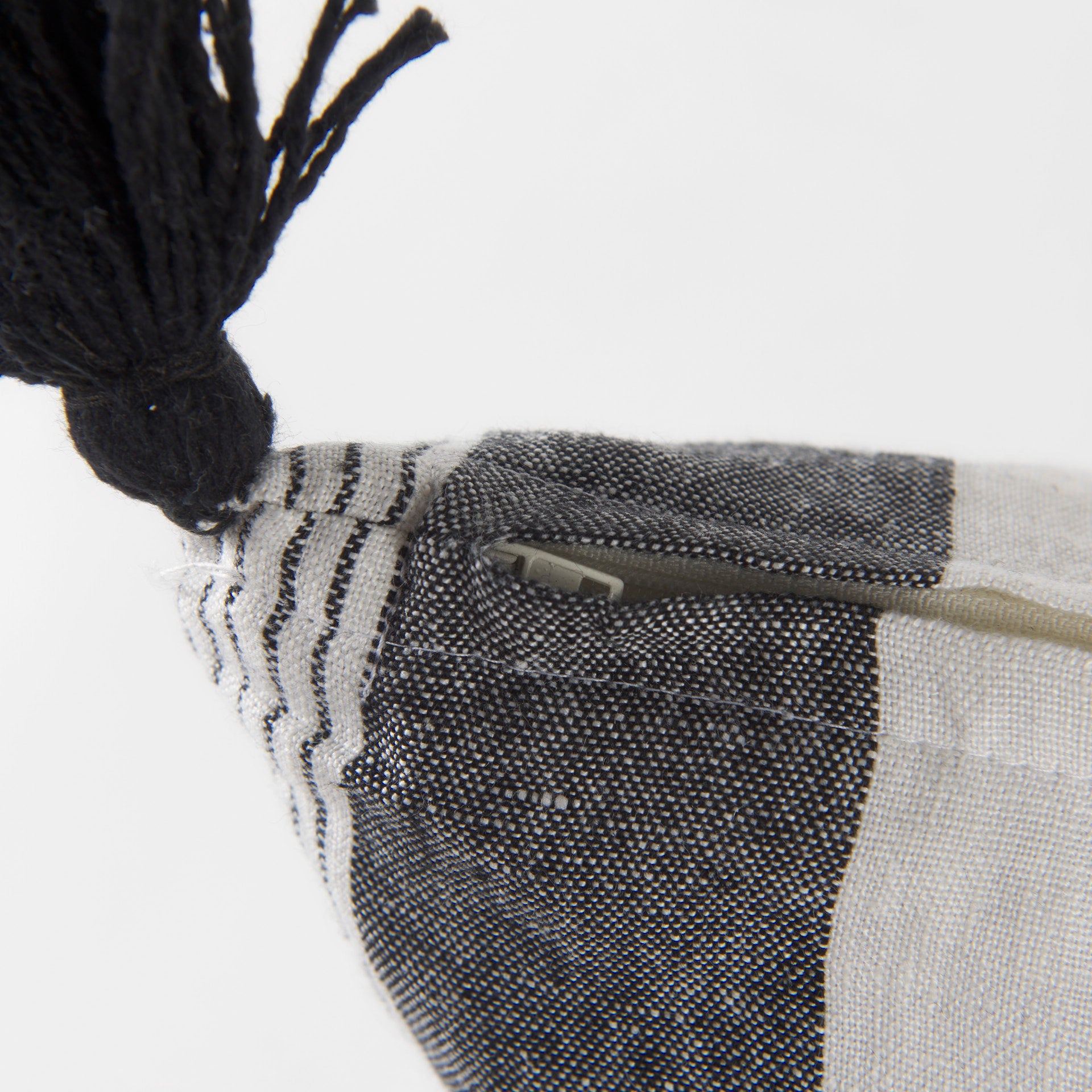 Kimia 14L x 26W White and Black Fabric Herringbone and Fringed Decorative Pillow Cover