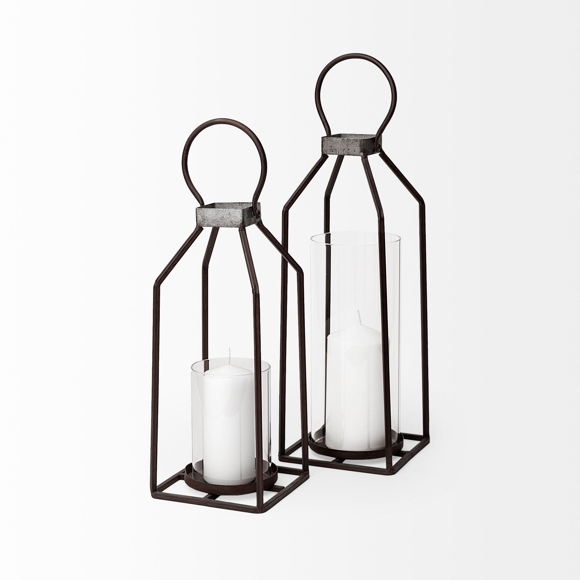 Kingston II Small Rustic Metal Framed Table Candle Holder