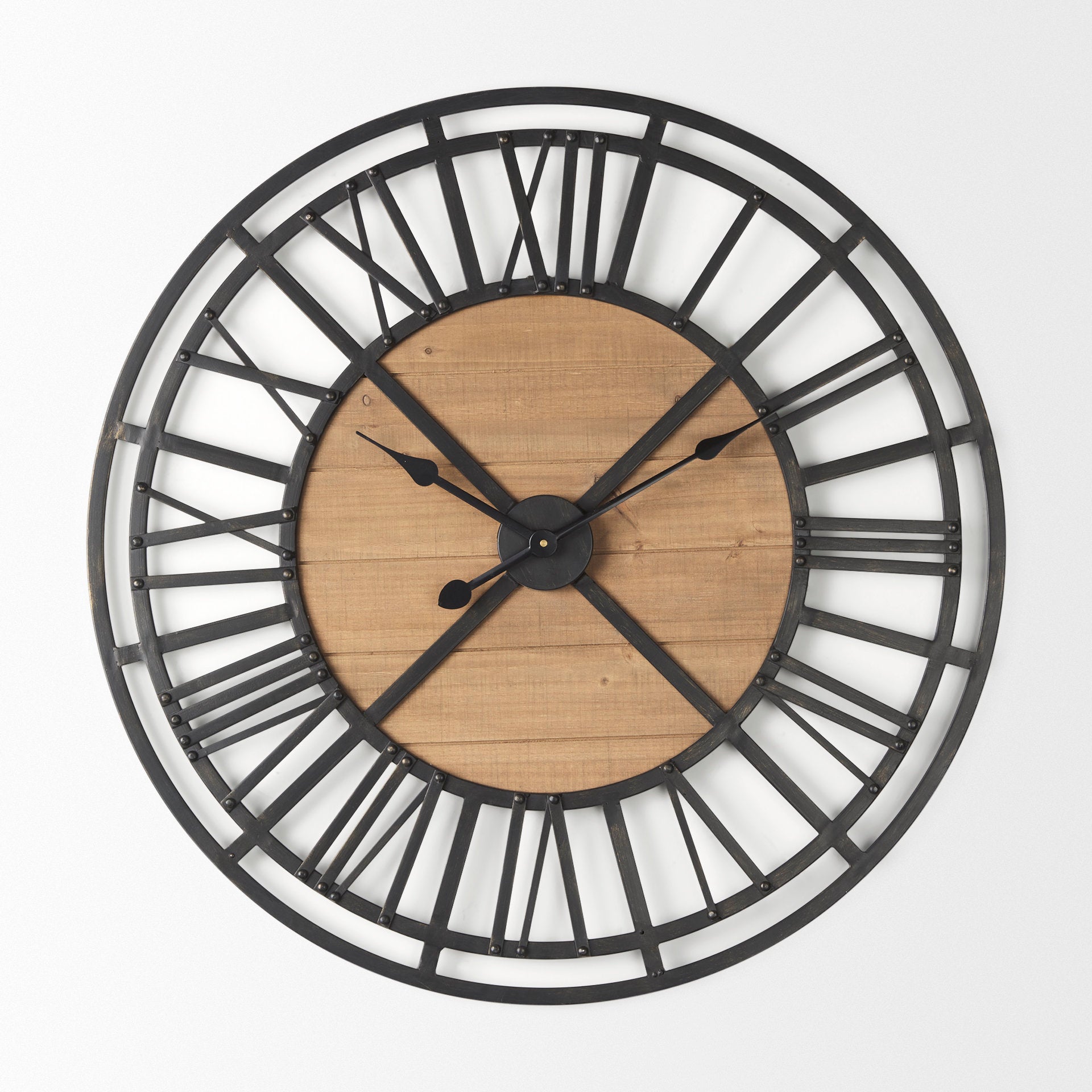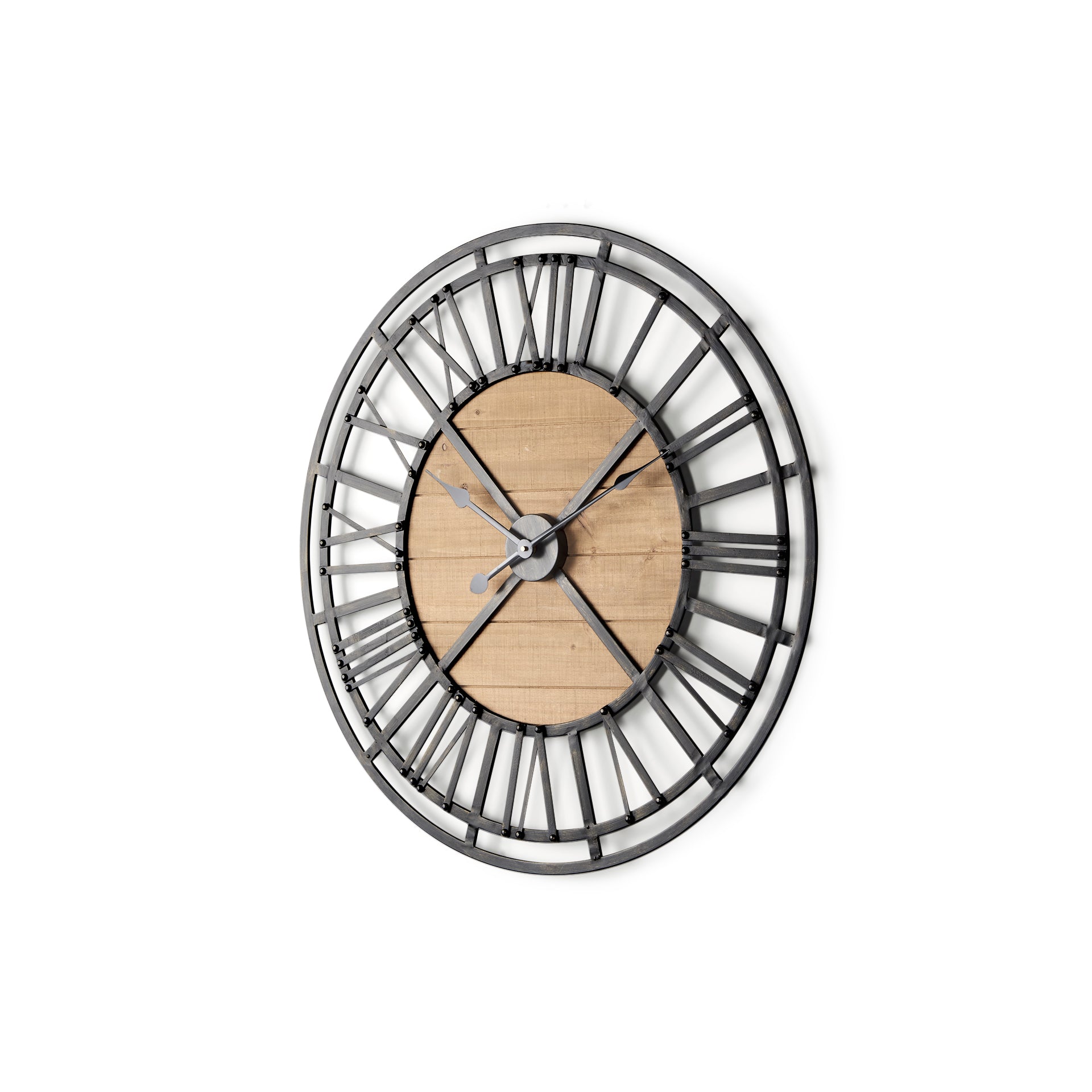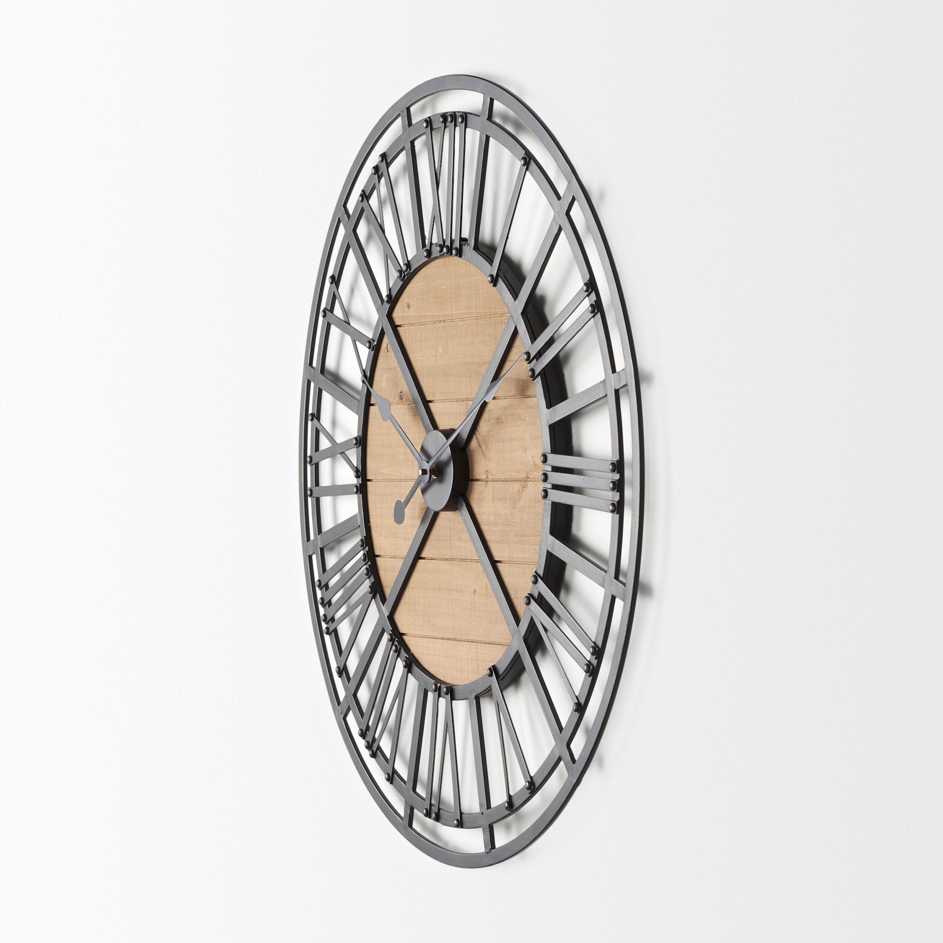 Lewiston 30.1L x 2.0W x 30.1H Black Iron W/Wood Round Wall Clock