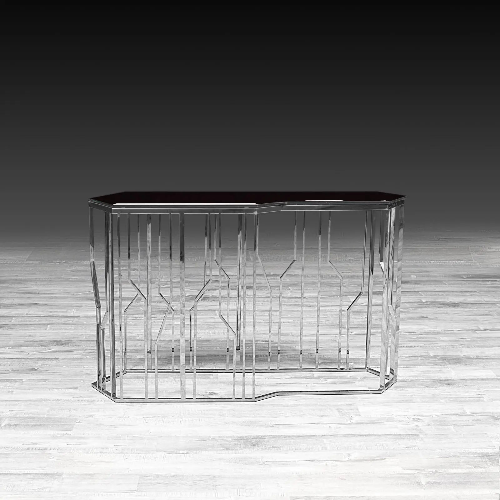 Enhance your living space with the elegant Lorensia Console Table, by Roberto Grassie. This exquisite console table features a polished stainless steel base available in three stunning finishes: rose gold, silver, or titanium gold. Each option adds a touch of sophistication and luxury to your decor, making it a versatile piece that complements various interior styles, from contemporary to traditional.
