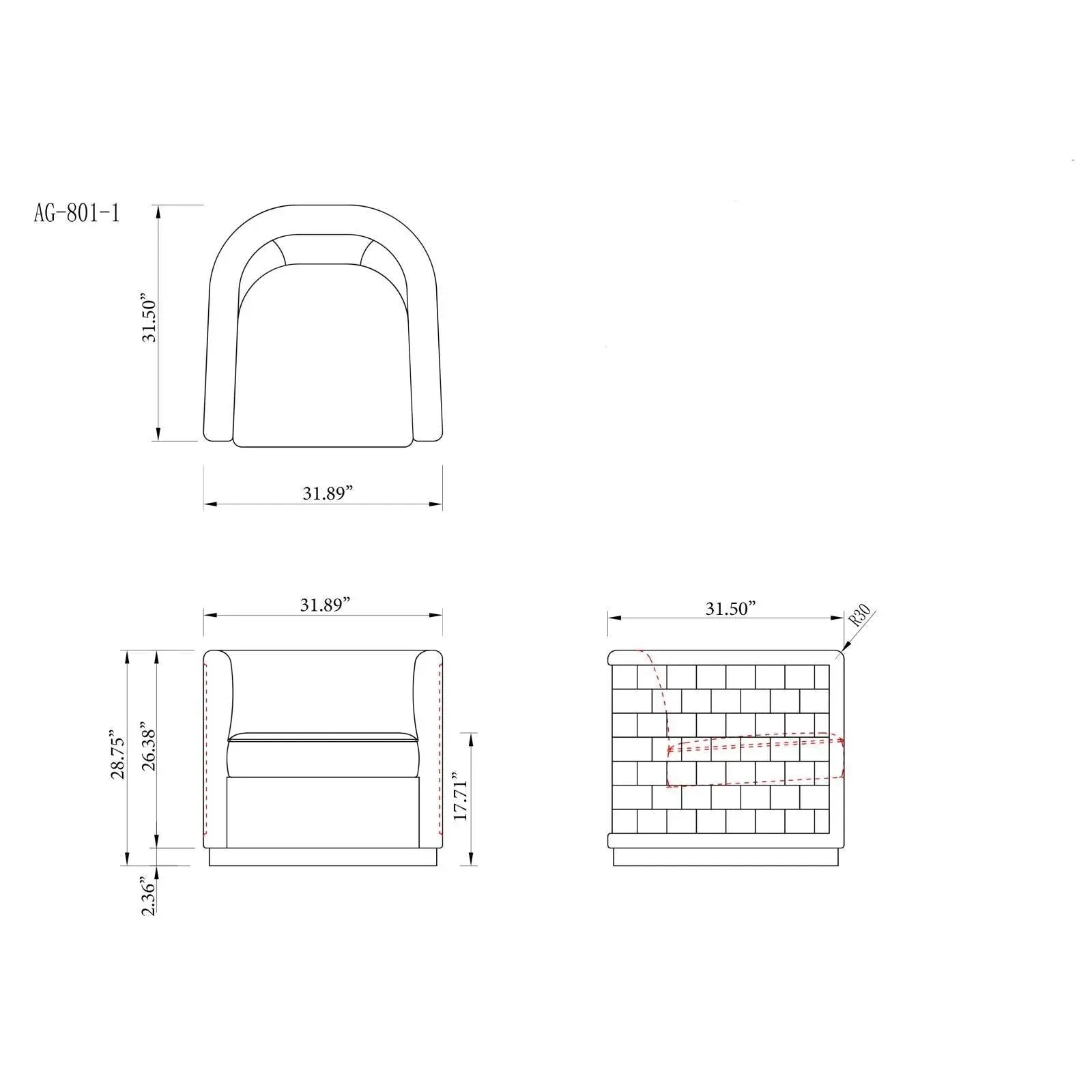 Chair: 31.82 in x 31.5 in x 28.75 in