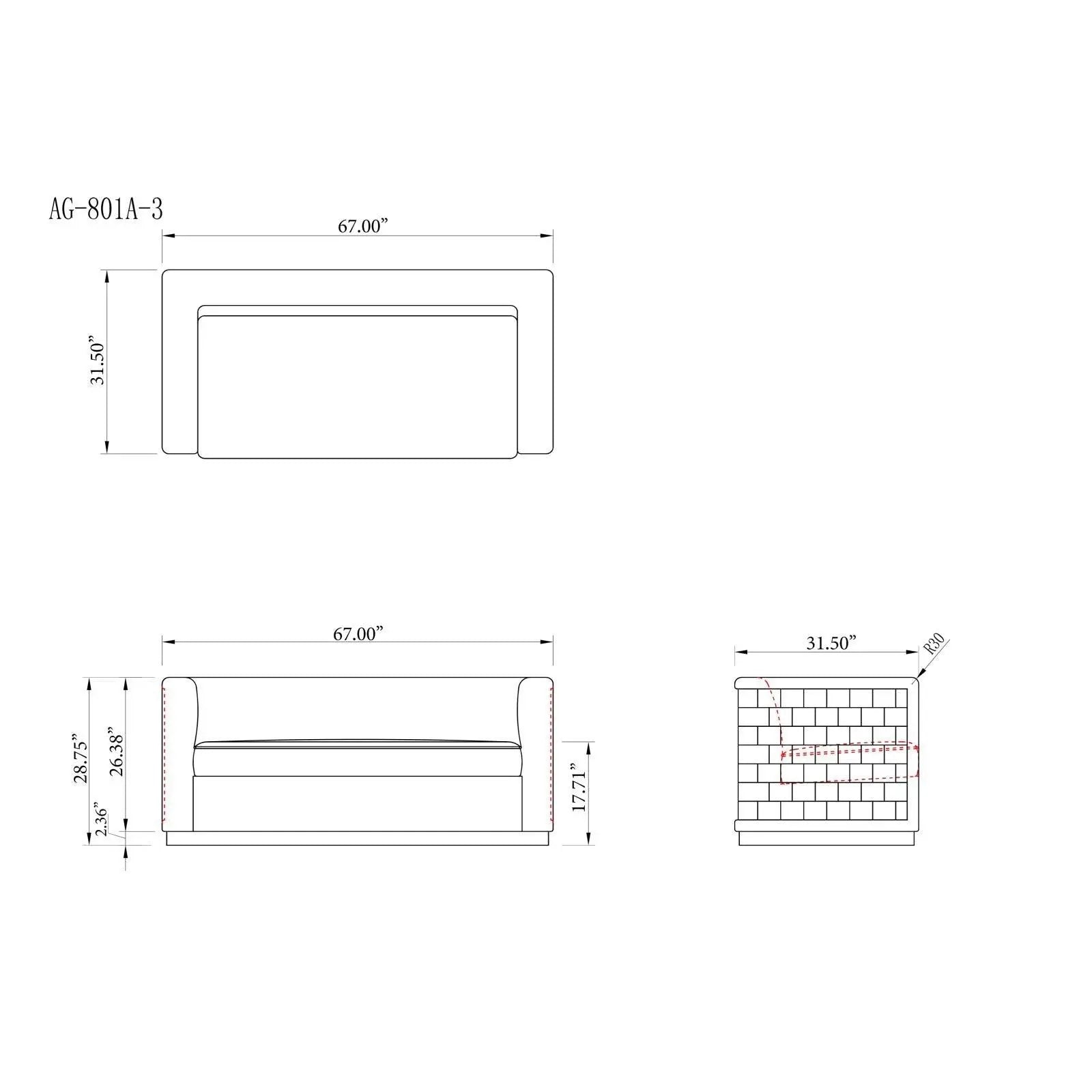 Loveseat: 67 in x 31.5 in x 28.75 in