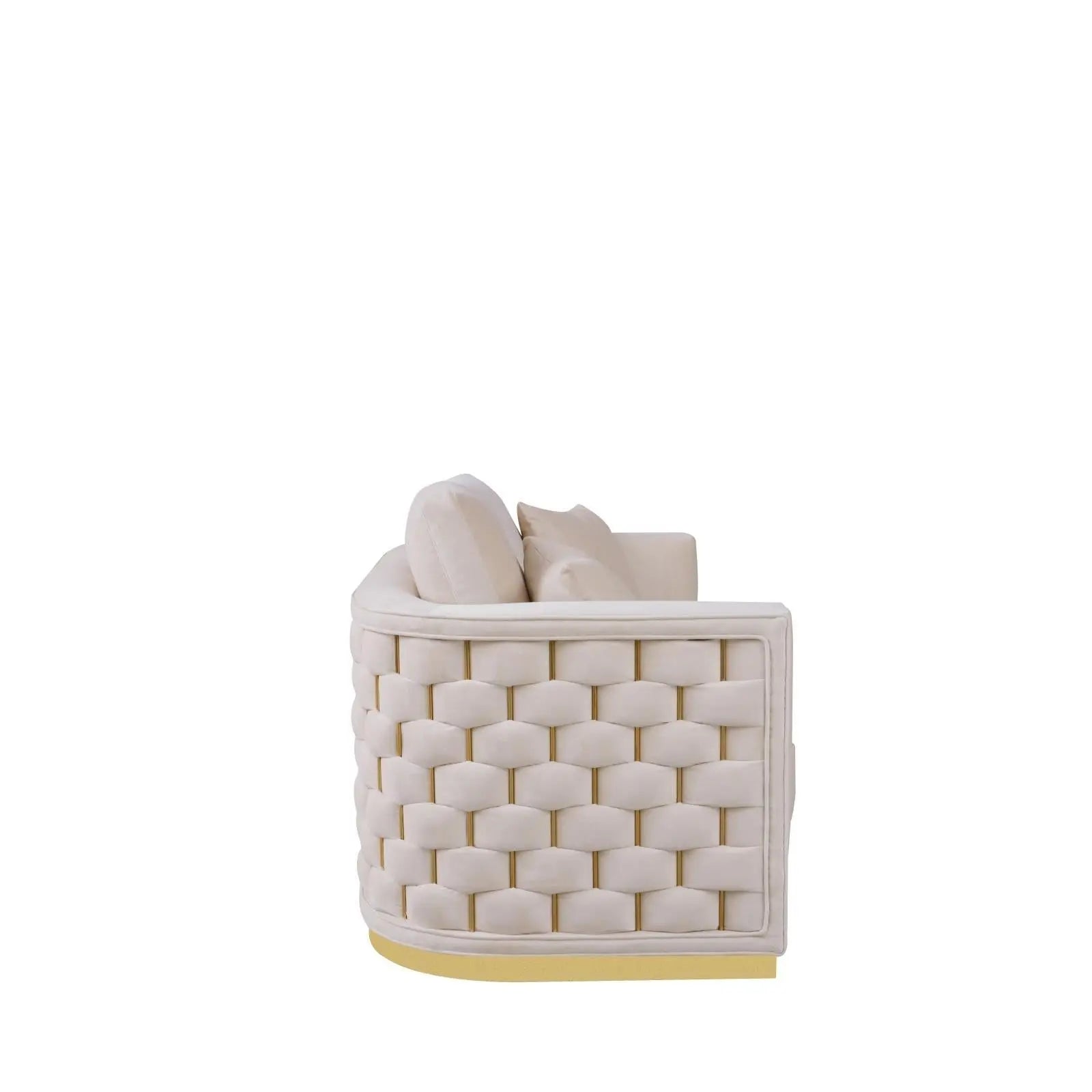 Discover the Lucia Sofa sets by Norhaus Furniture. Available in Black, Beige, Taupe, and Silver Gray velvet, these sofas feature polished gold metal detail and curved corners for a touch of sophistication. With detached back cushions filled with fiber and high-density polyurethane foam core seats, comfort is ensured. Elevate your living space with the Lucia Sofa sets, combining style and comfort effortlessly.