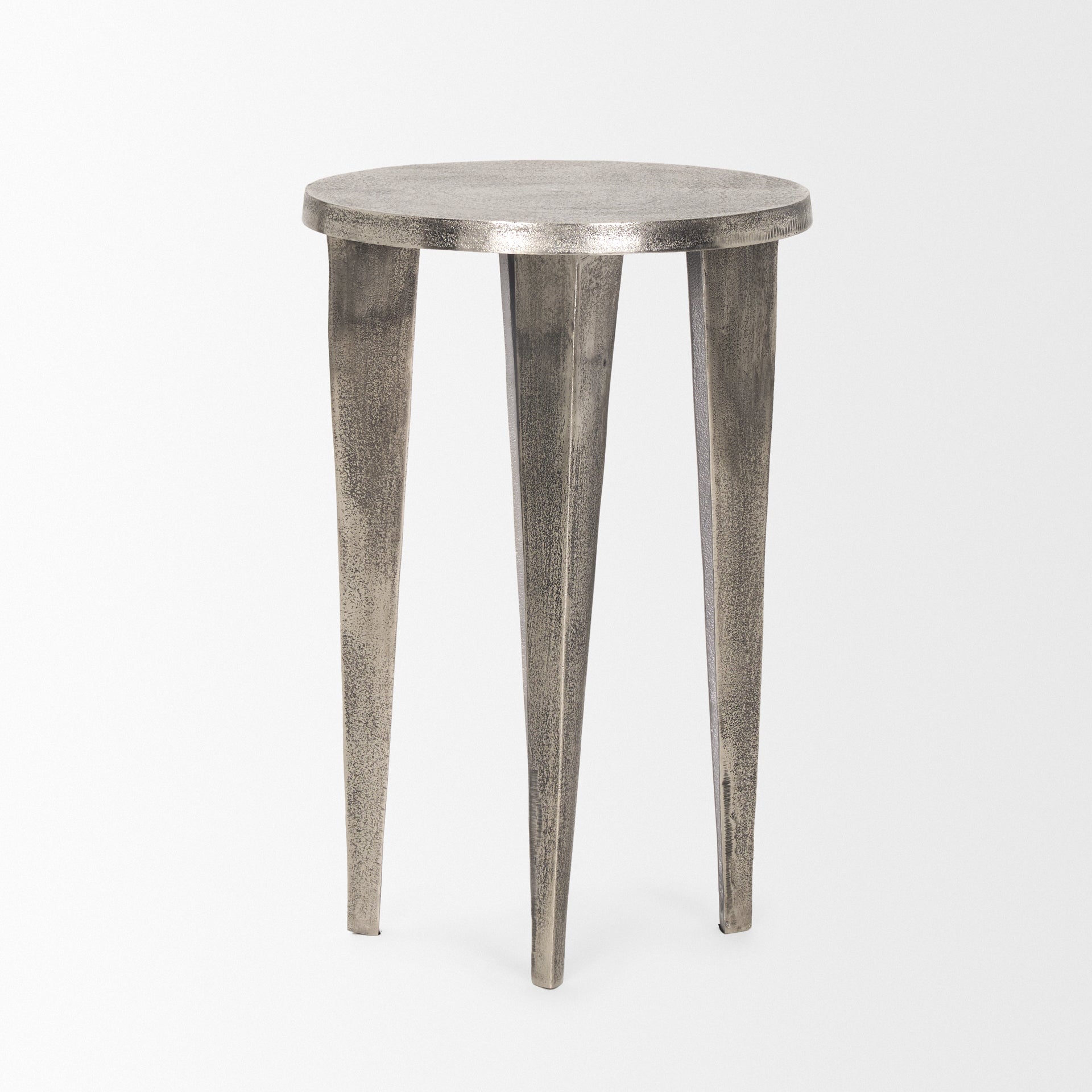 Maggie Textured Silver Nickel Cast Aluminum Metal Accent Table