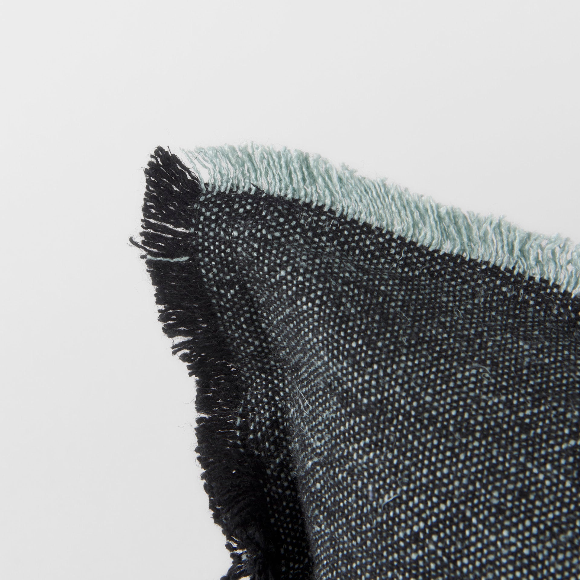 Malia 14L x 26W Black and Teal Fabric Fringed Decorative Pillow Cover