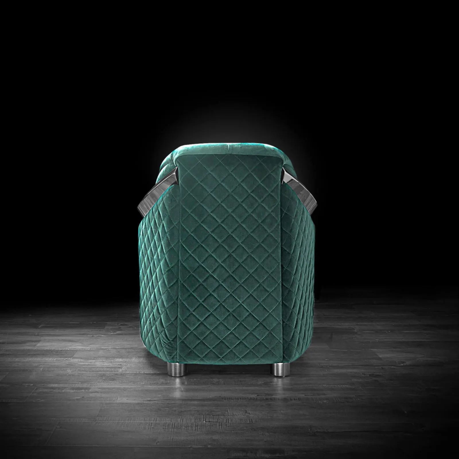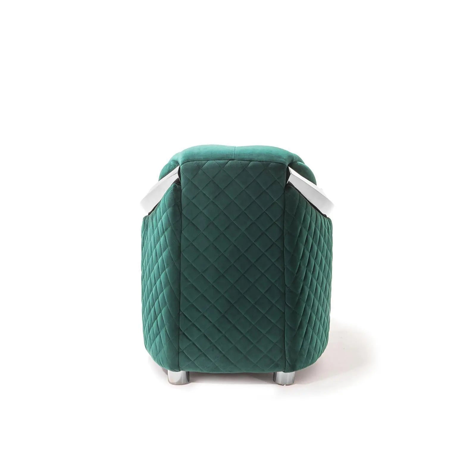 Massimo luxury Sofa is an original Norhaus Furniture design with elegant quilted detail n the outside and large tufted arms and back. The silver detail on the arm shows the sophistication and workmanship of this exquisite piece of furniture. The Massimo sofa set is available in multiple velvet fabrics and silver or rose gold options on the accent metal details.