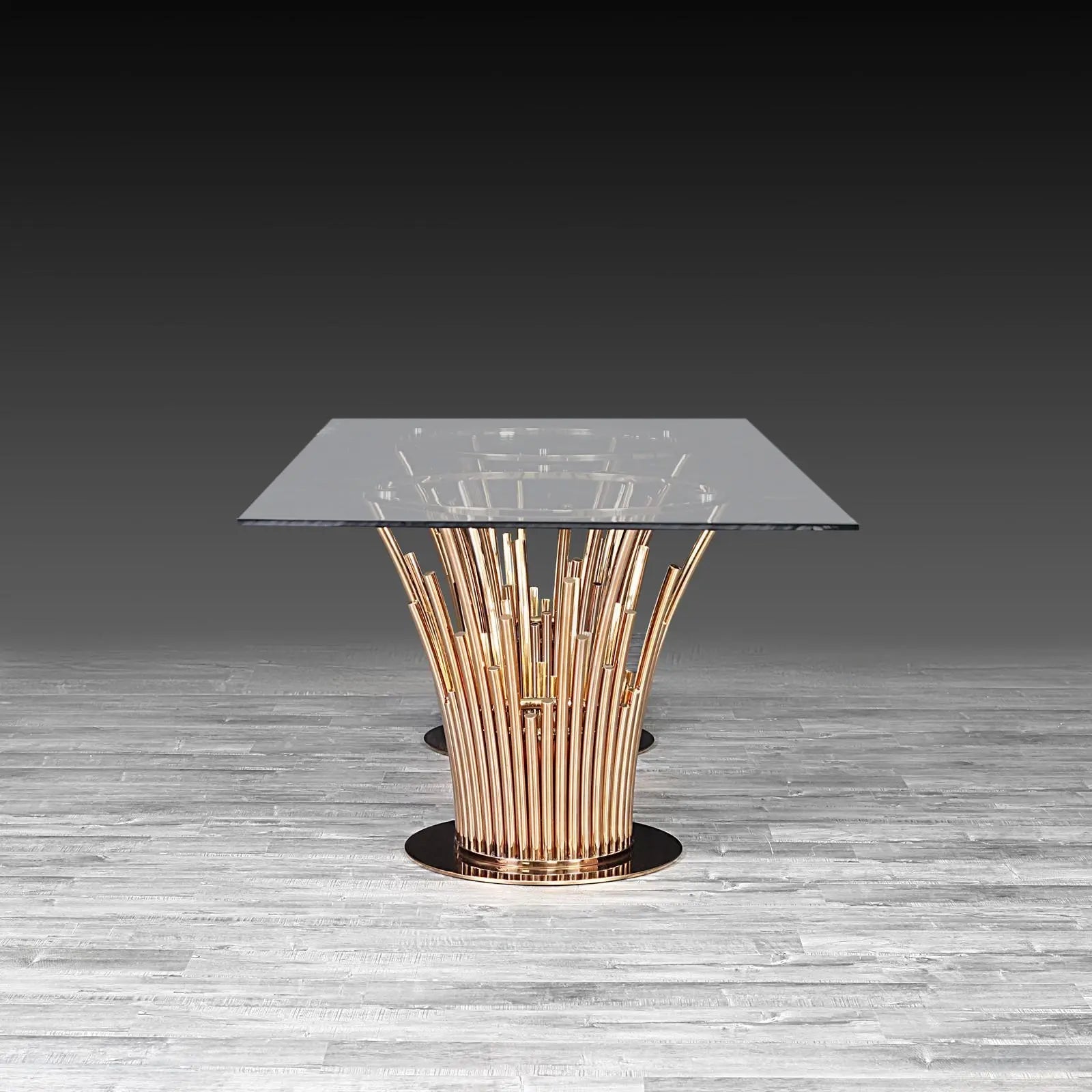 Transform your dining area with the exquisite Mauris Rectangular Luxury Dining Table, brought to you by Norhaus Furniture. This stunning dining table serves as a captivating centerpiece that combines modern elegance with exceptional functionality. Its luxurious base is crafted from polished stainless steel, available in three exquisite finishes: titanium gold, silver, and rose gold. Each finish enhances the dining table's sophisticated appearance, making it a perfect fit for any decor style, whether contemporary or classic.