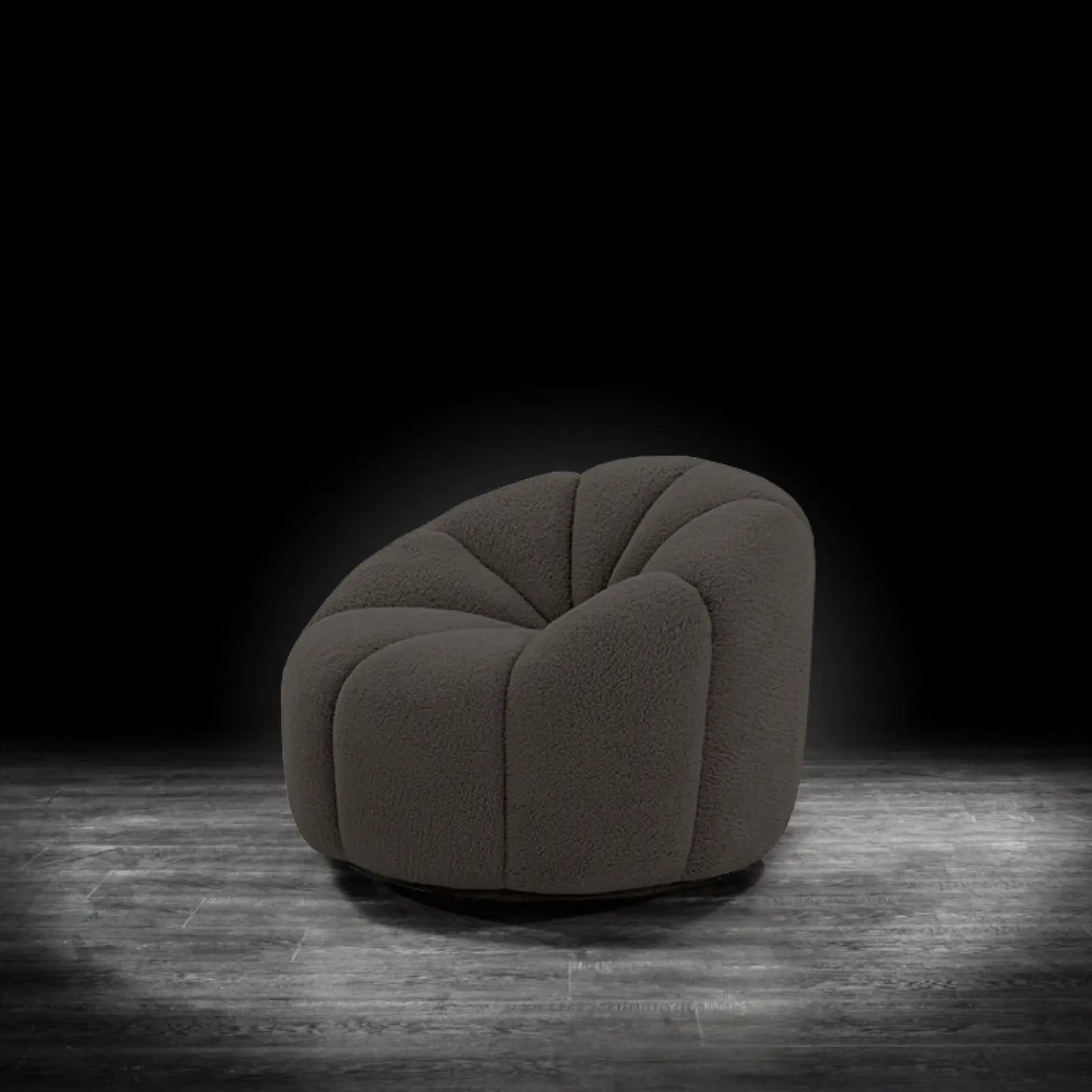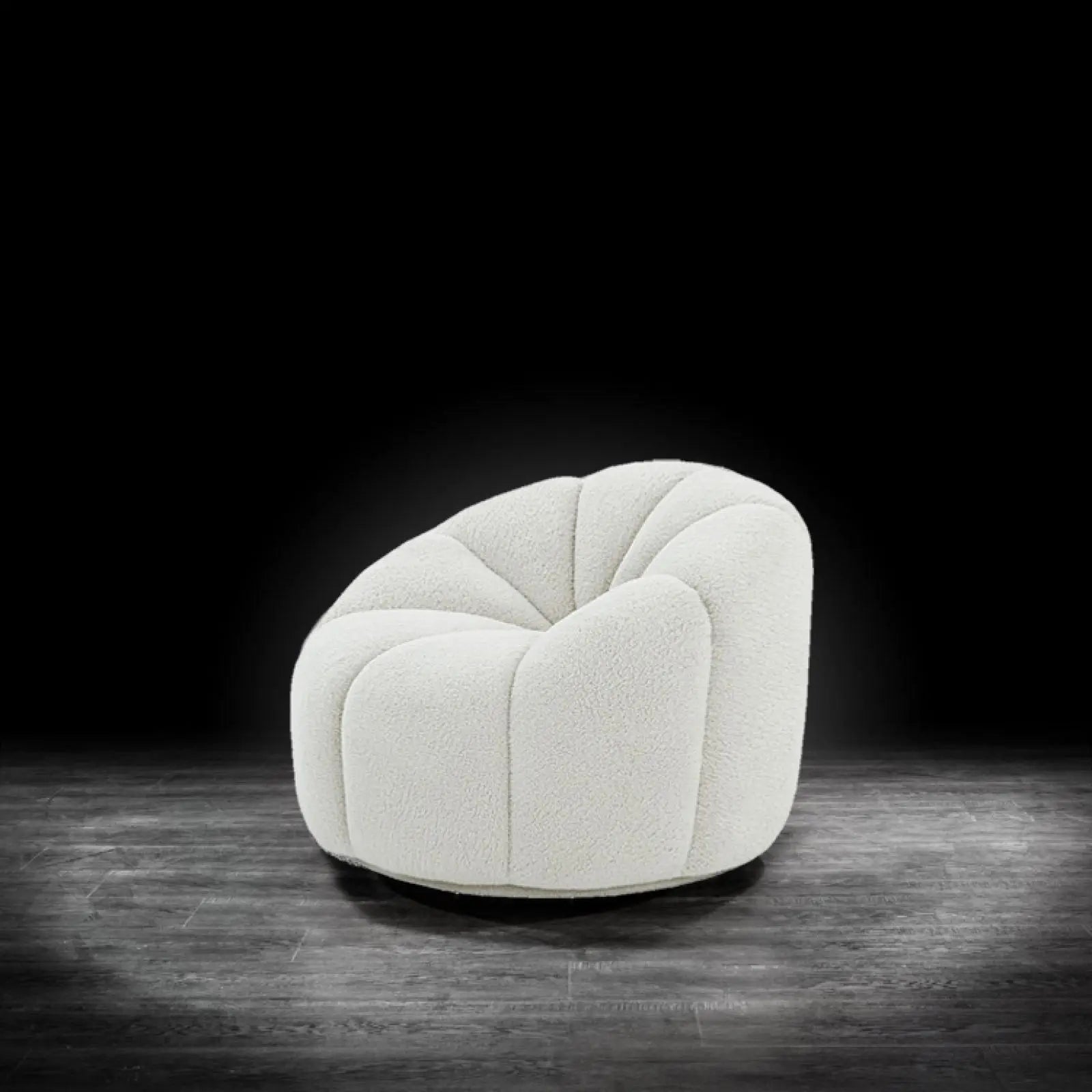 The Maxi modern round swivel chair is a at home in any room furniture. This stunning design has a beige boucle fabric for seating. Drop into the deep seat filled with foam for the undeniable comfort. The swivel chair guarantees years of effortless 360 turns.
