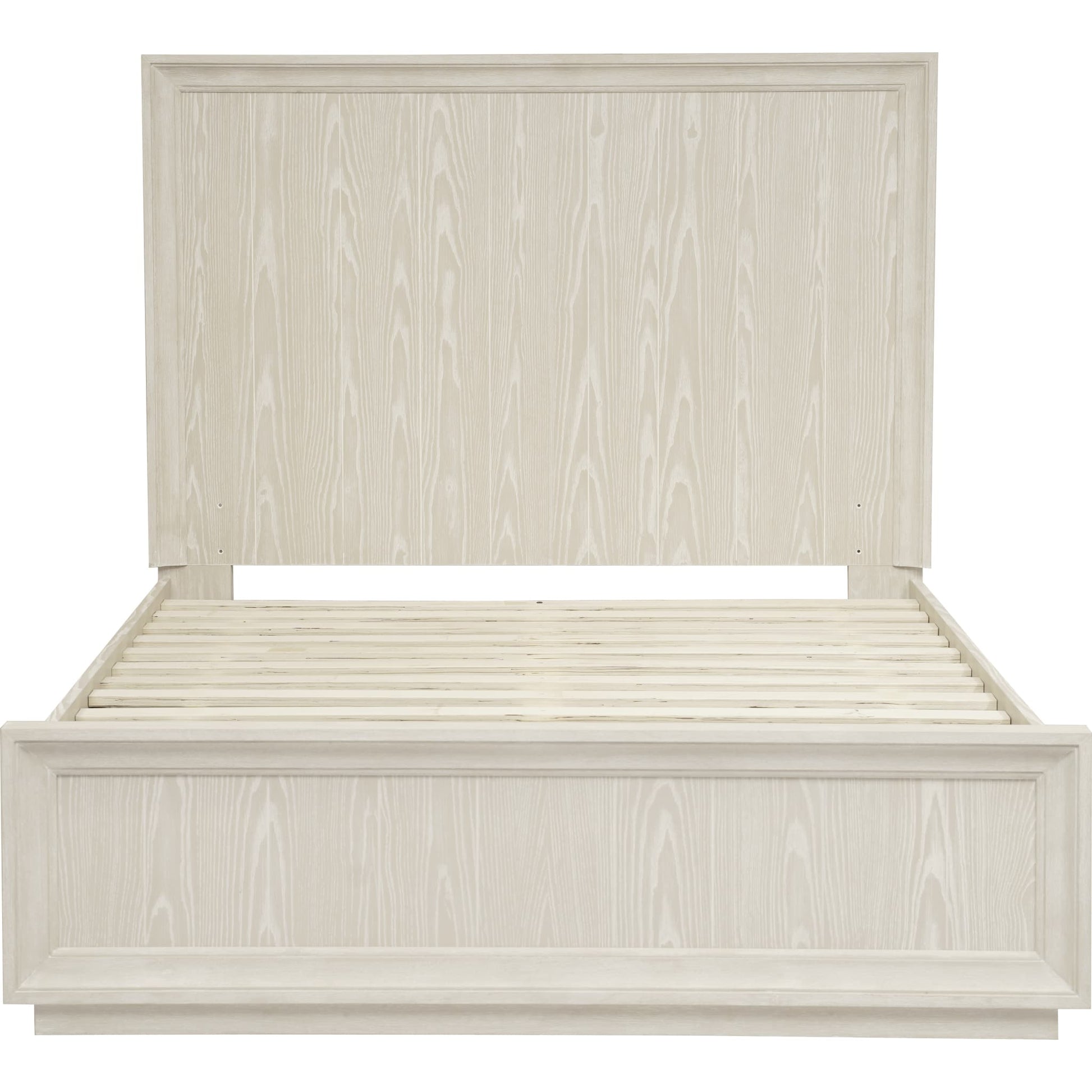 This classic contemporary collection blends a crisp modern silhouette with traditional picture frame moldings and jewel-like, custom molded metal pulls. Made from a mix of quartered and flat cut Ash wood veneer and meranti solid wood, our proprietary Sugar finish showcases the wood's active grain with a beige base and a soft white powder glaze resting on top.