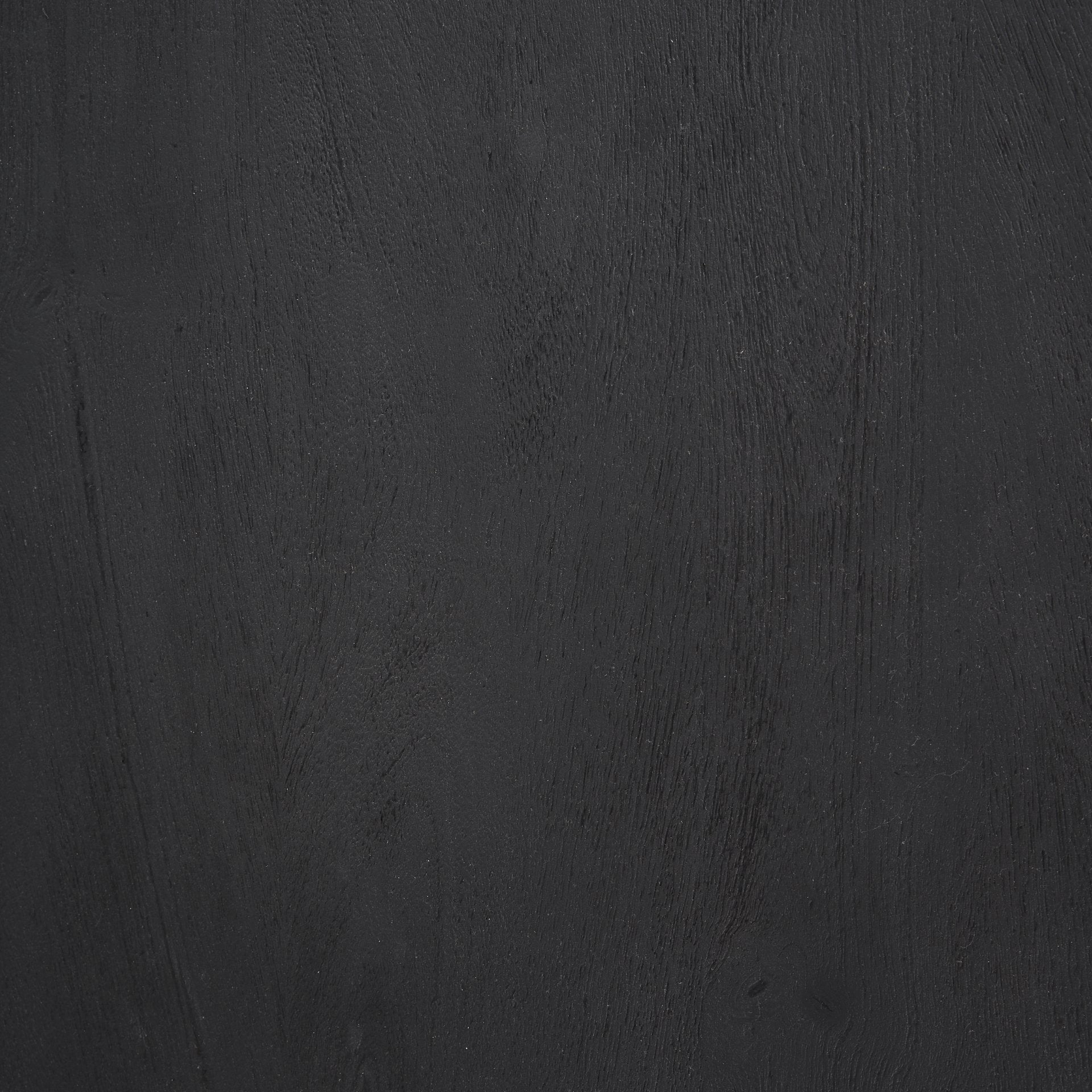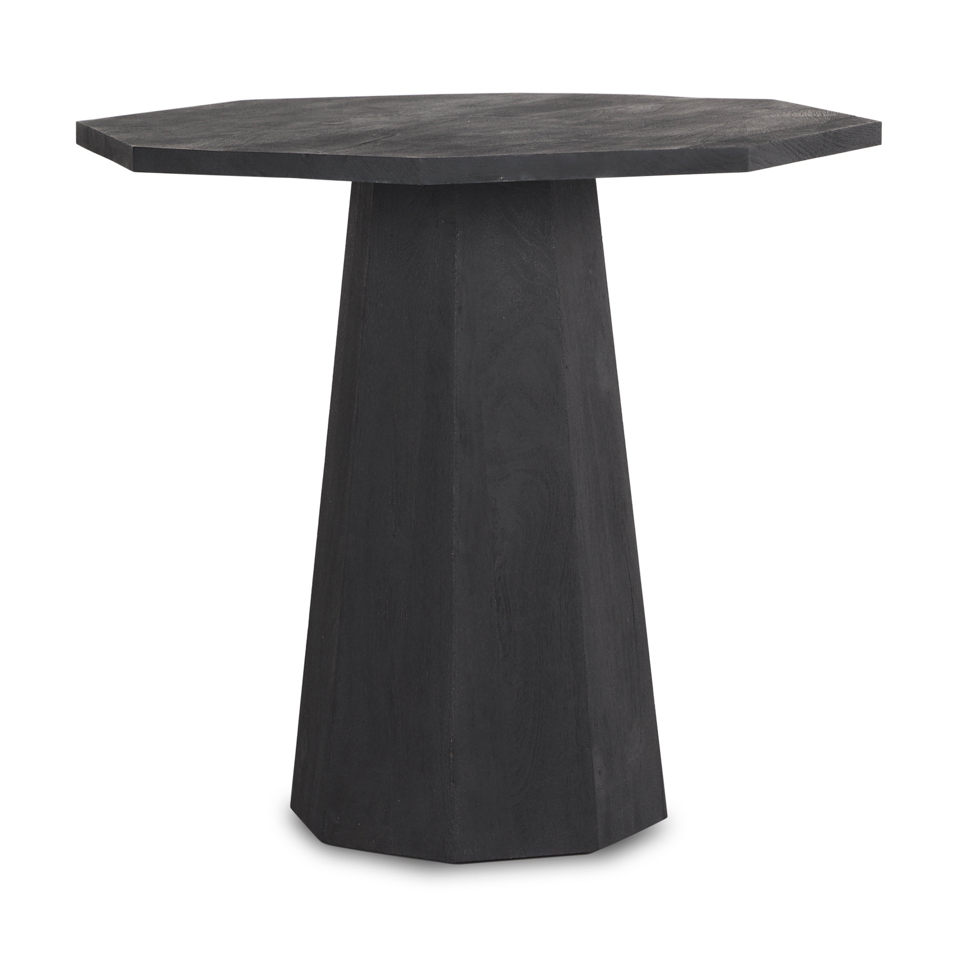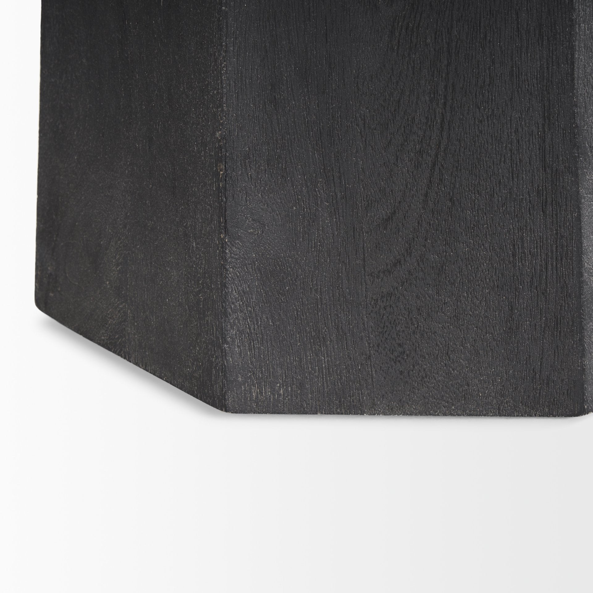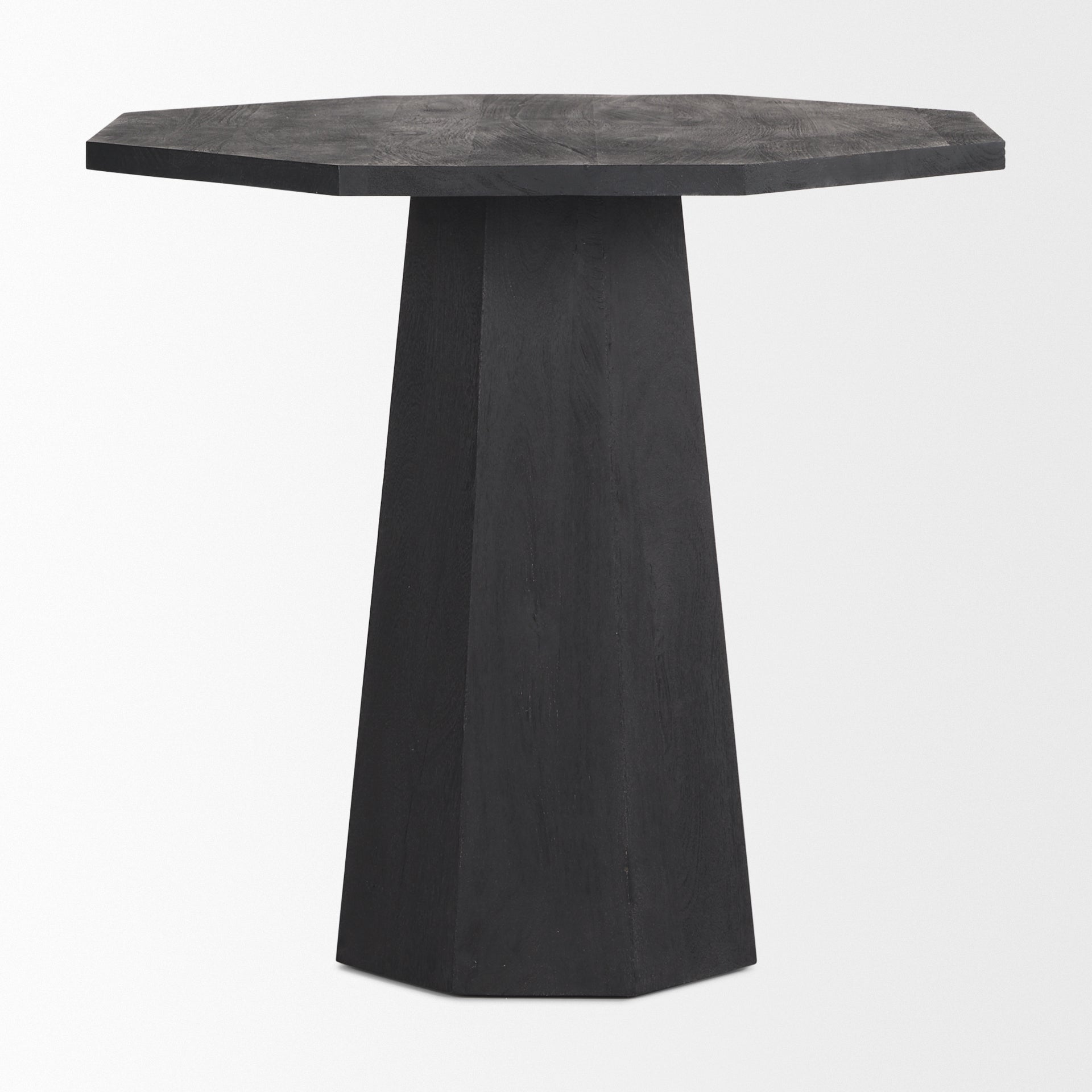The Maxine Foyer Table in Black wood features a hexagonal tabletop and pedestal base.