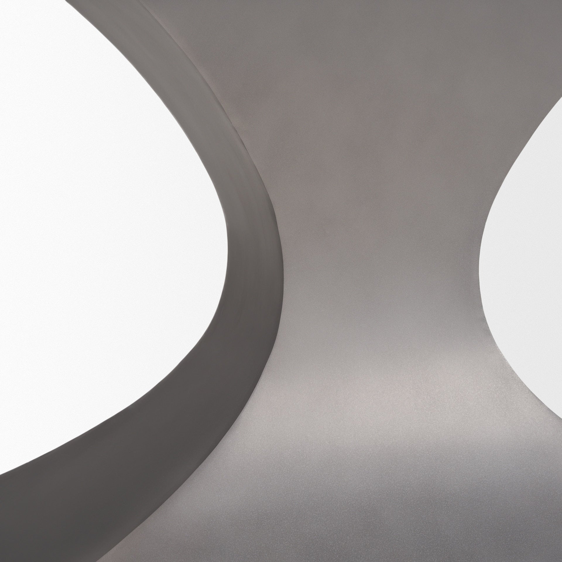 This Maxton pedestal dining table dining table showcases a marble top on a stylized gunmetal base.