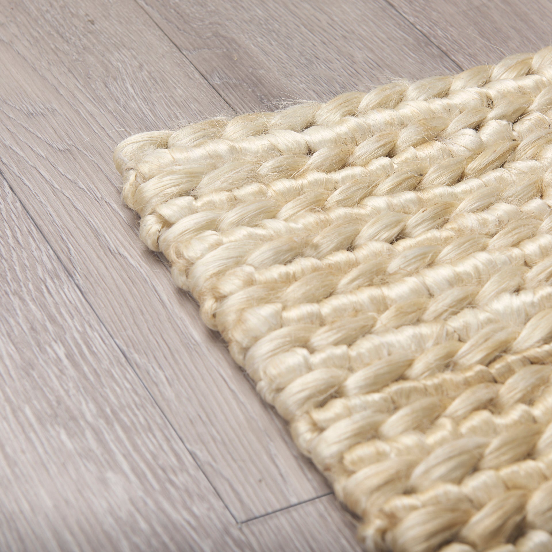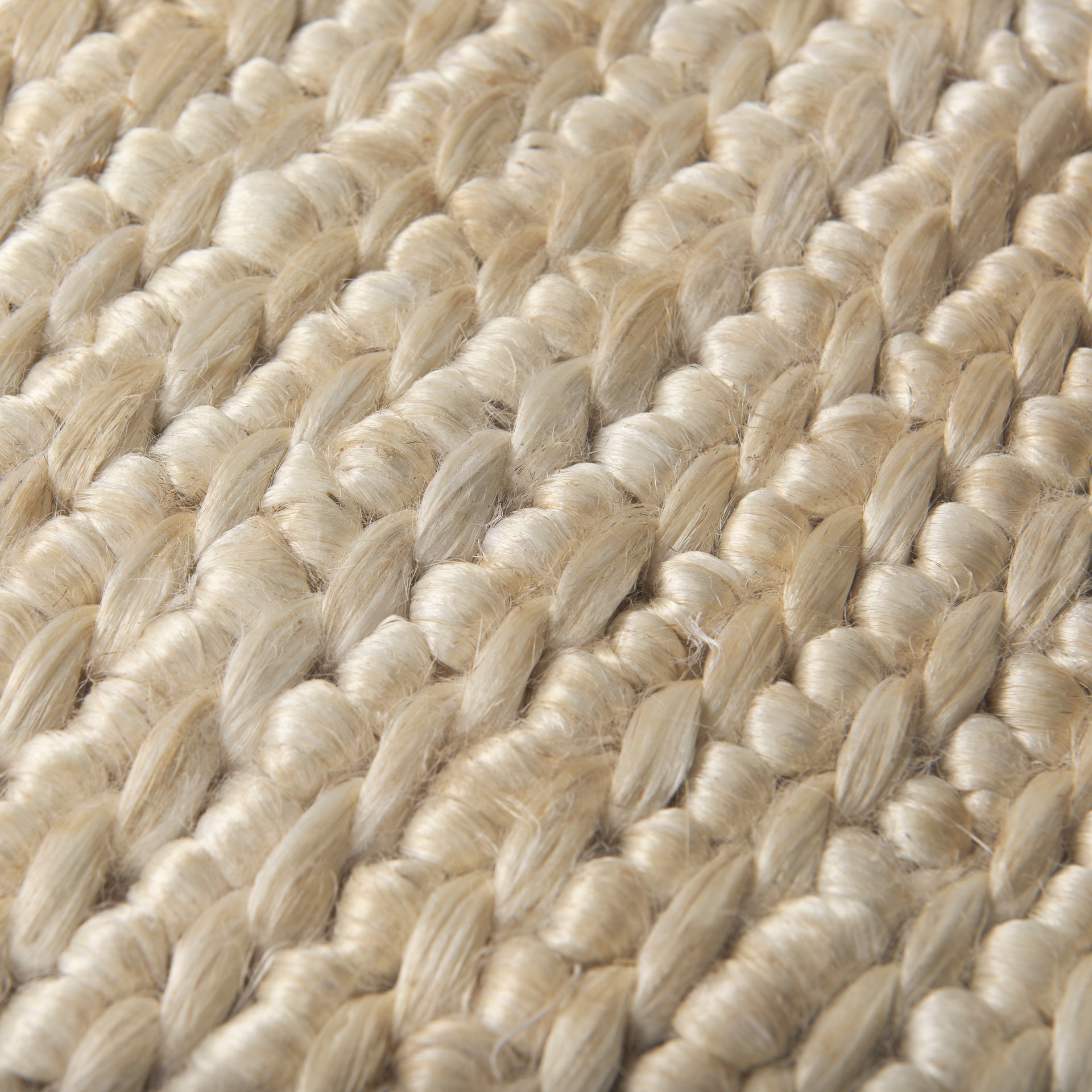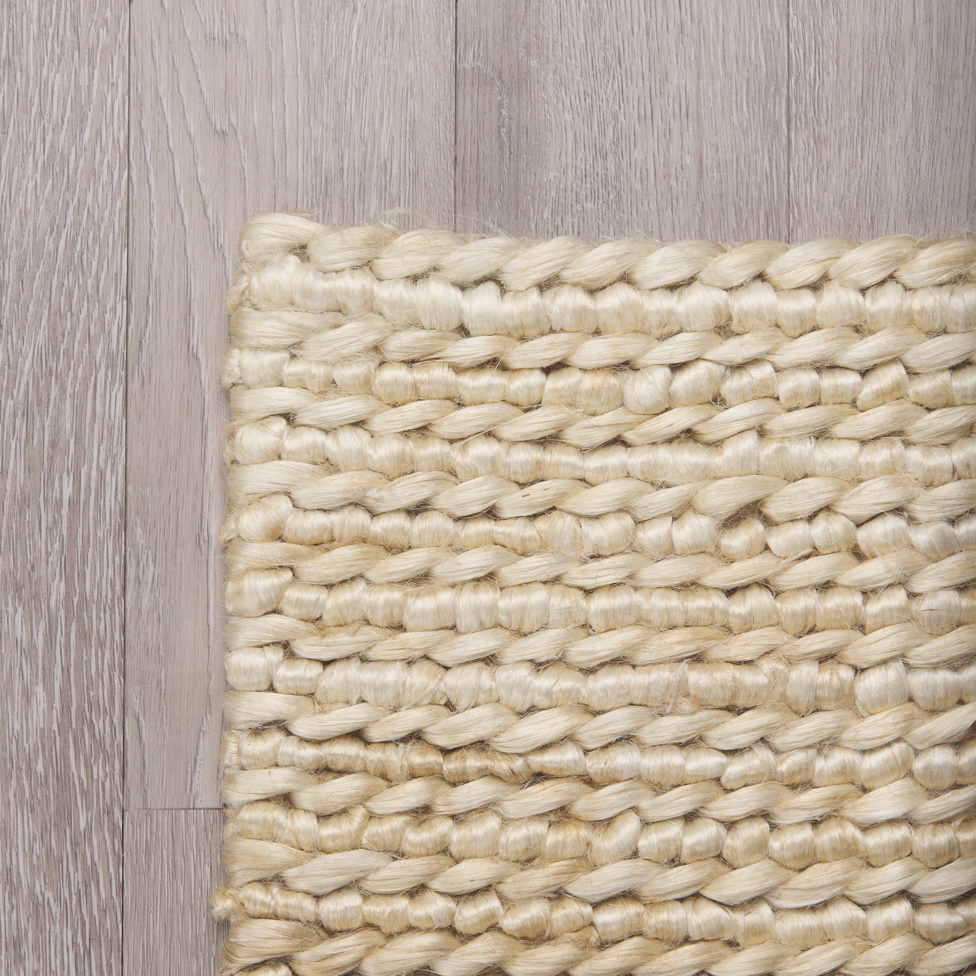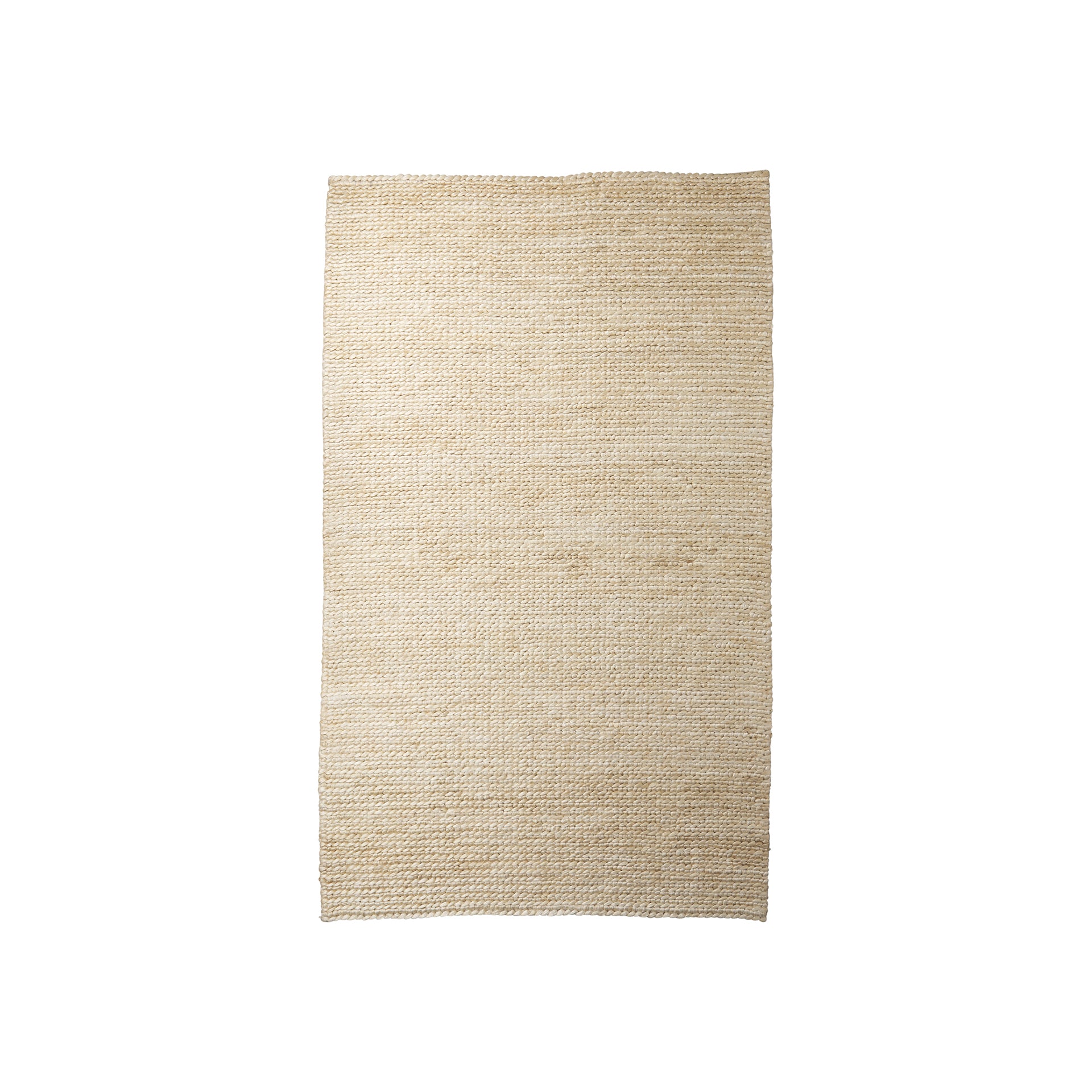 A simple area rug, handwoven from 100% hemp with a natural, golden hue