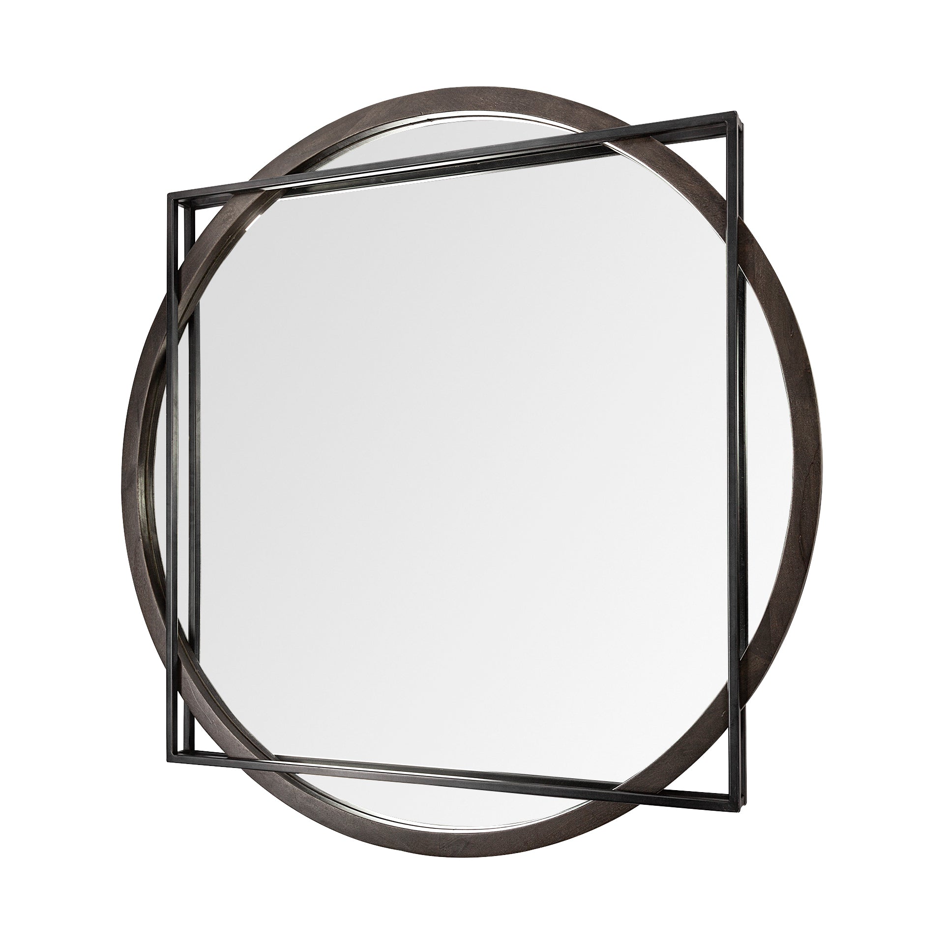 Norbert 46" Round-Square Black Wood/Metal Frame Mirror