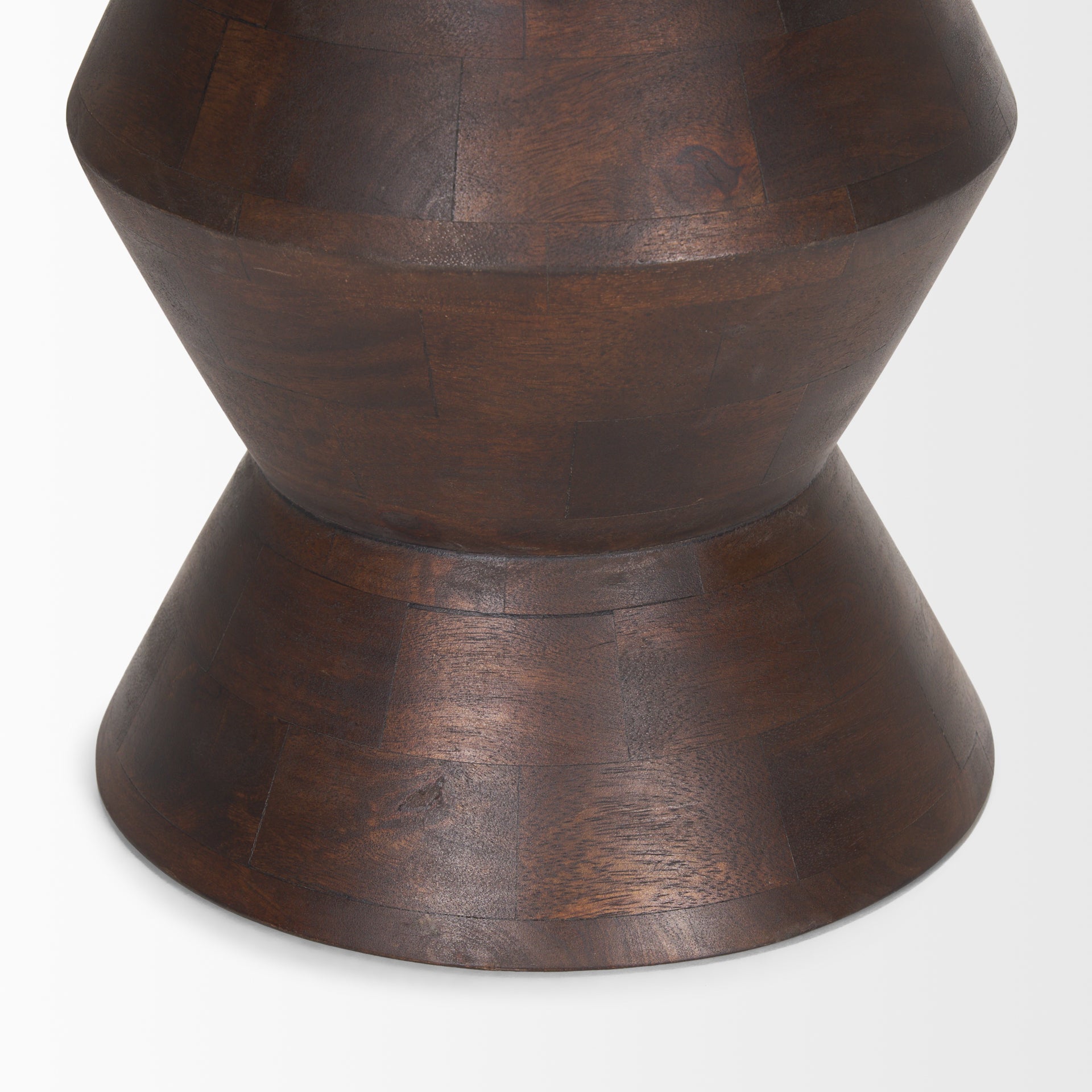 Crafted from solid mango wood and finished in a rich dark brown stain.