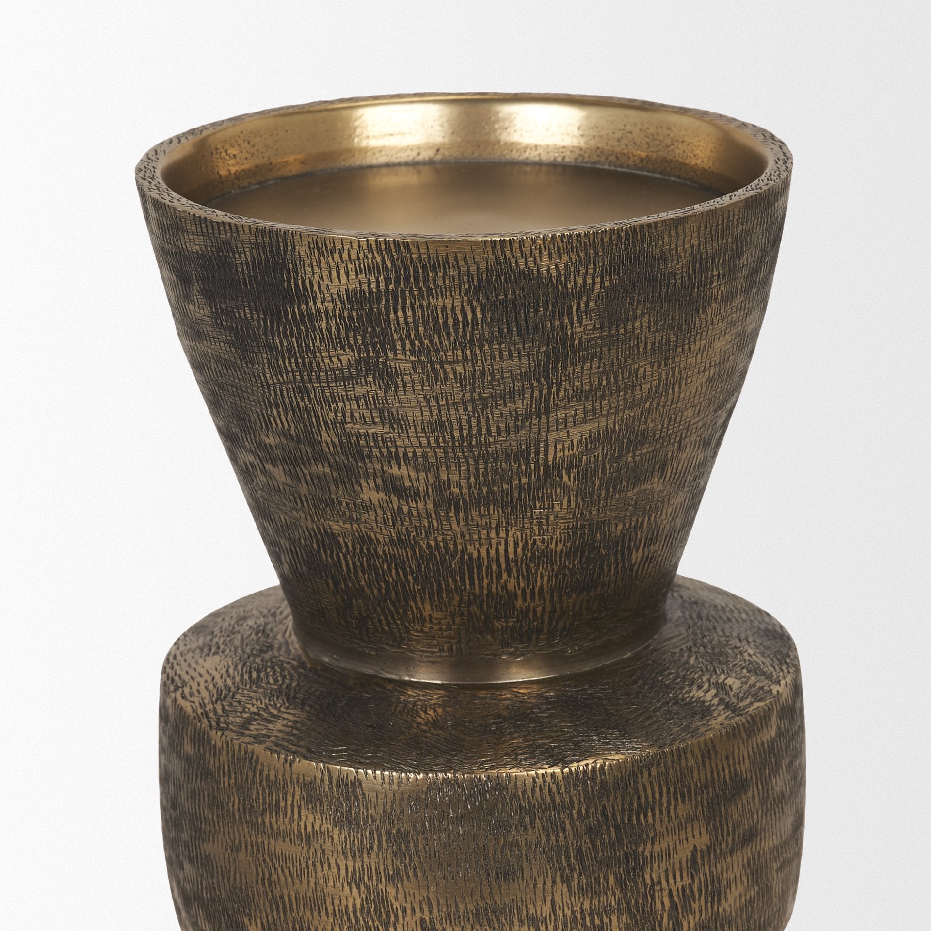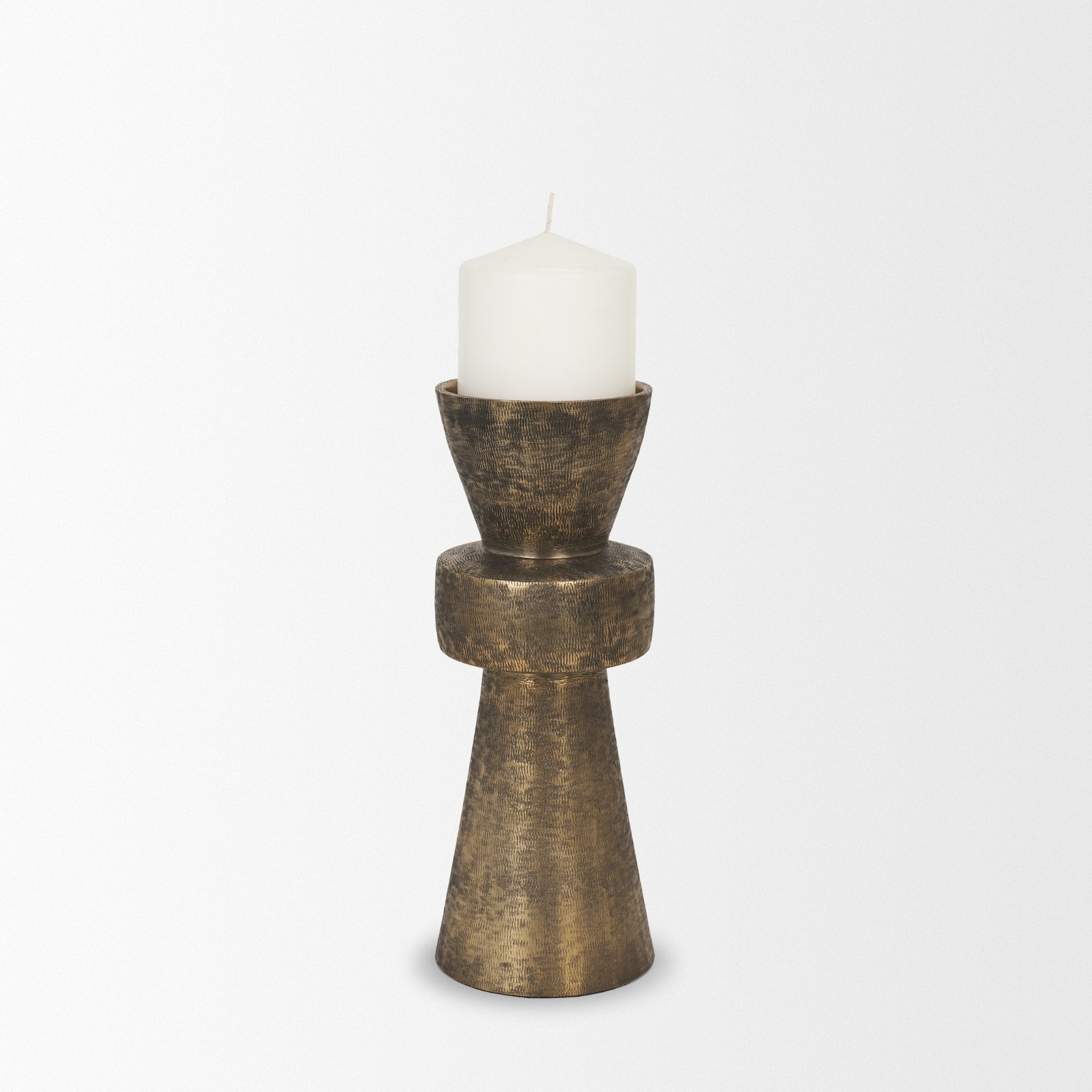 Odilia Small Textured Antiqued Gold Metal Geometric Pillar Candle Holder