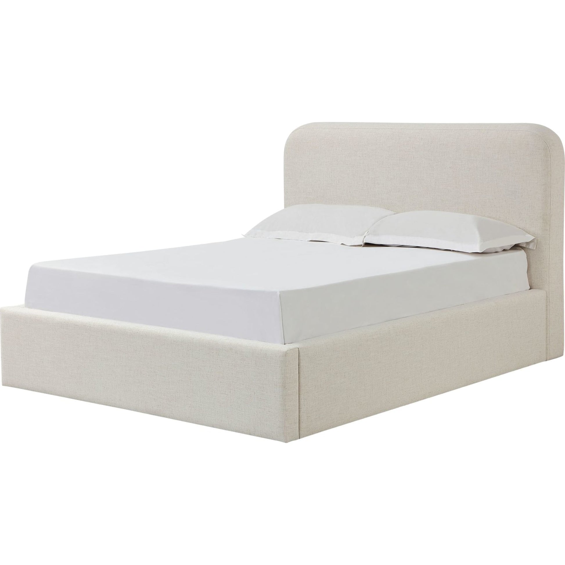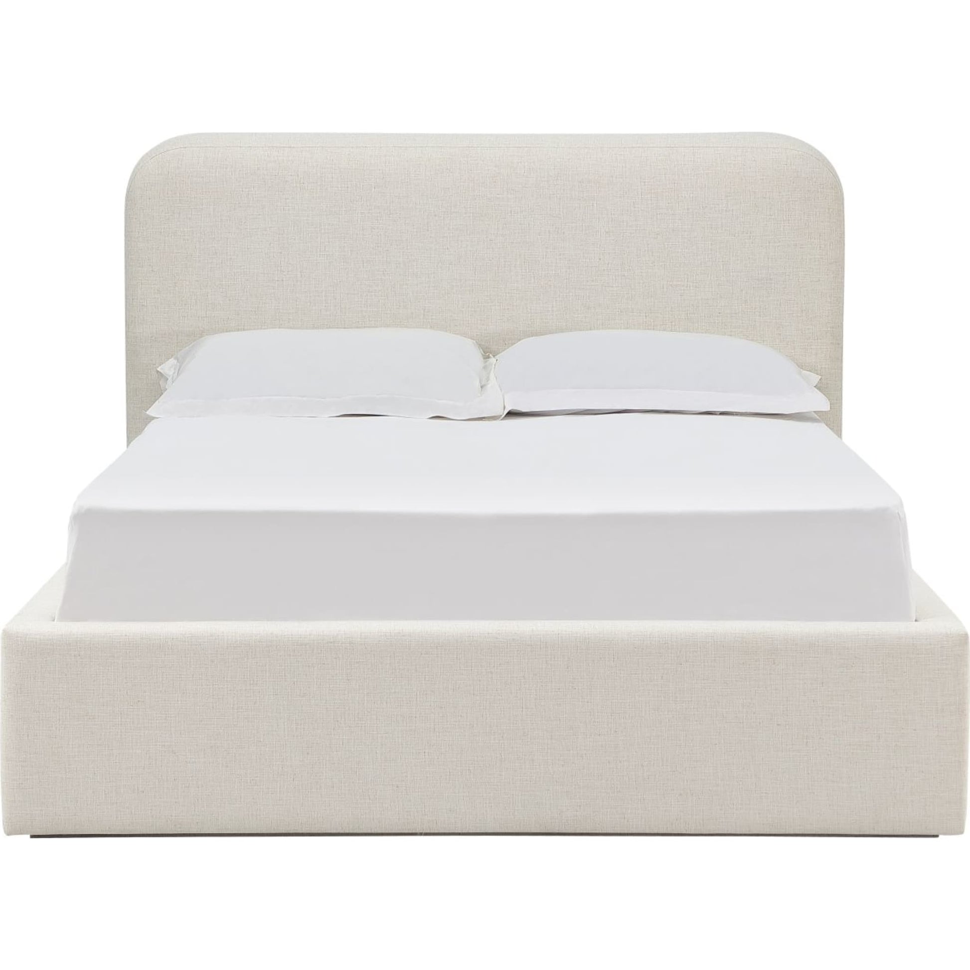 Off-White Upholstered Platform Bed in Whipped Honey Linen