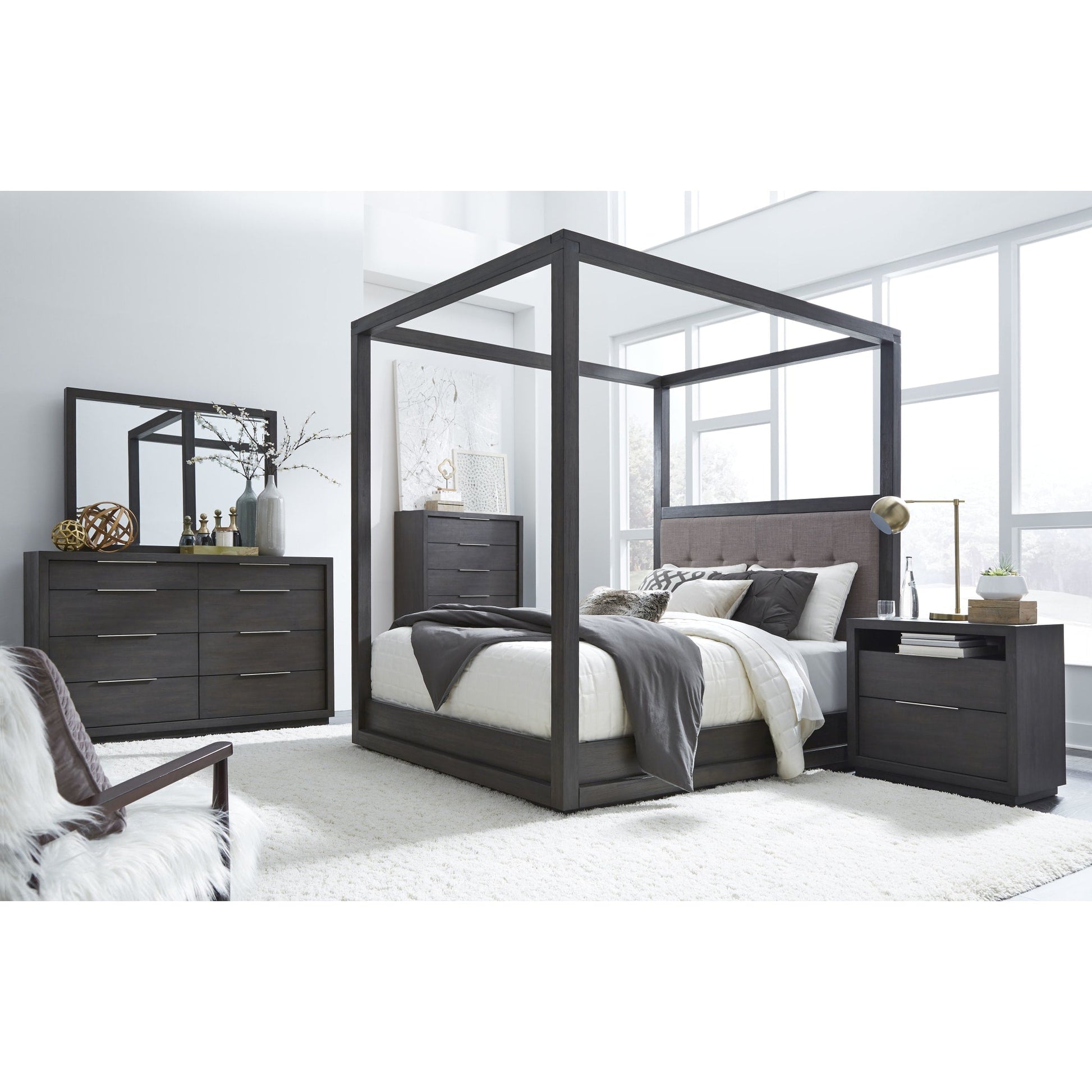 The sleekly tailored Oxford collection makes a striking first impression with bold proportions, crisp, modern lines and a weathered finish. Smartly accented with top-mounted nickel plated pulls, concealed footboard storage, and a floating plinth base. Available in Basalt Grey.