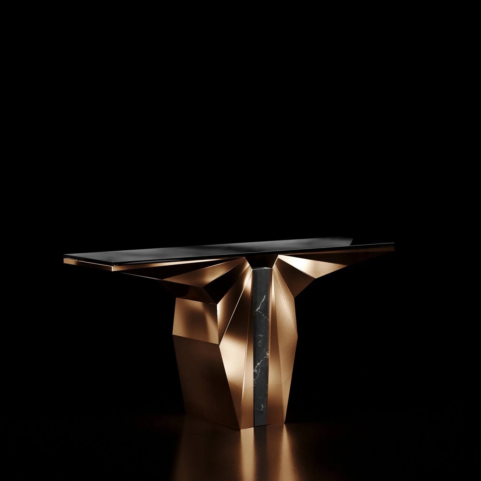 The Palm Console Table by Roberto Grassie is an elegant and contemporary design that adds a luxurious touch to any space. It features a striking combination of materials and finishes: