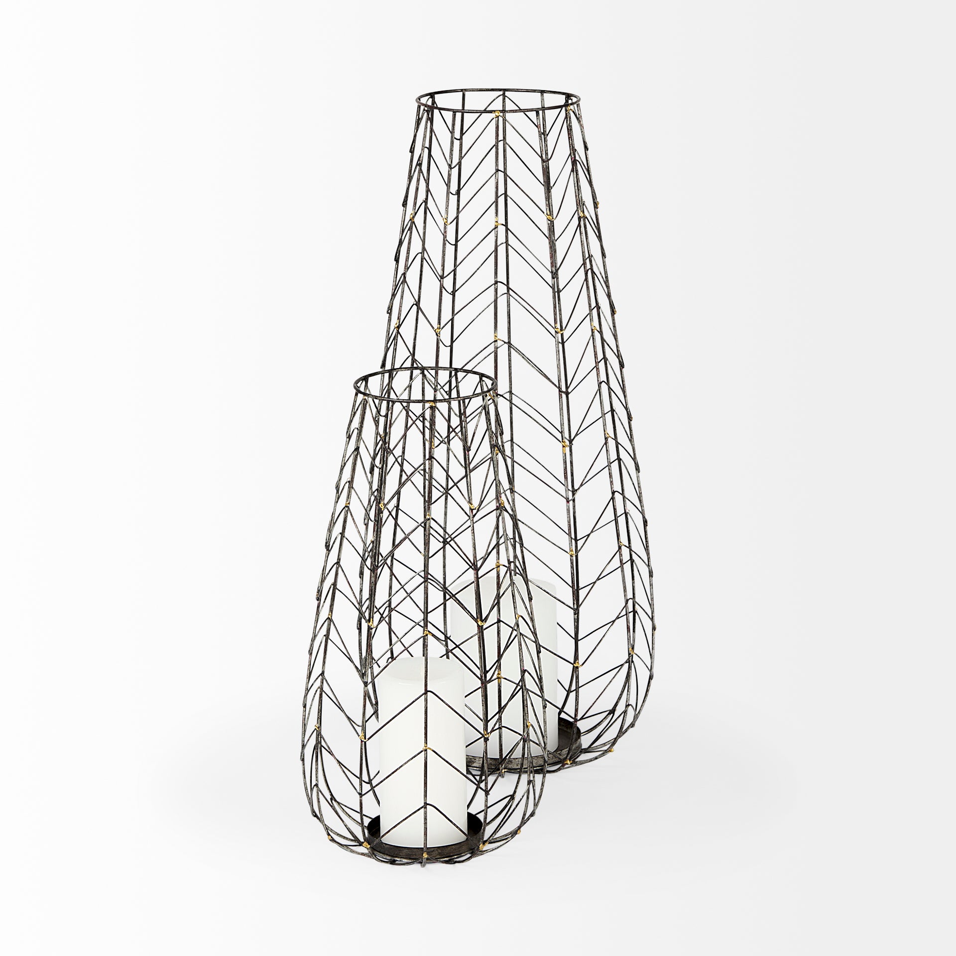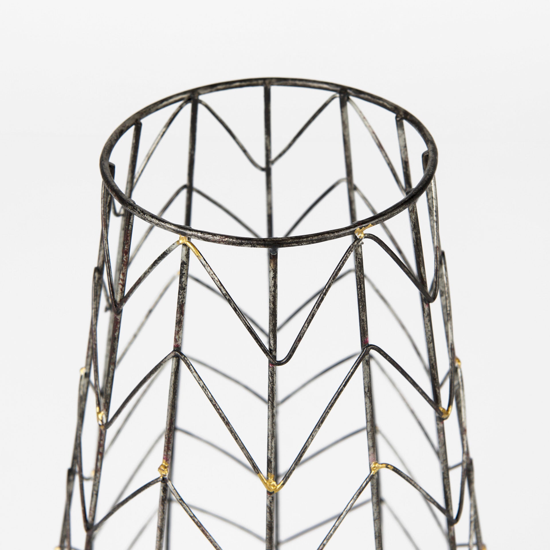 The Petiole, skillfully crafted from metal with a chevron mesh pattern, is a beautiful and unique addition to your space that is sure to stand the test of time.Β