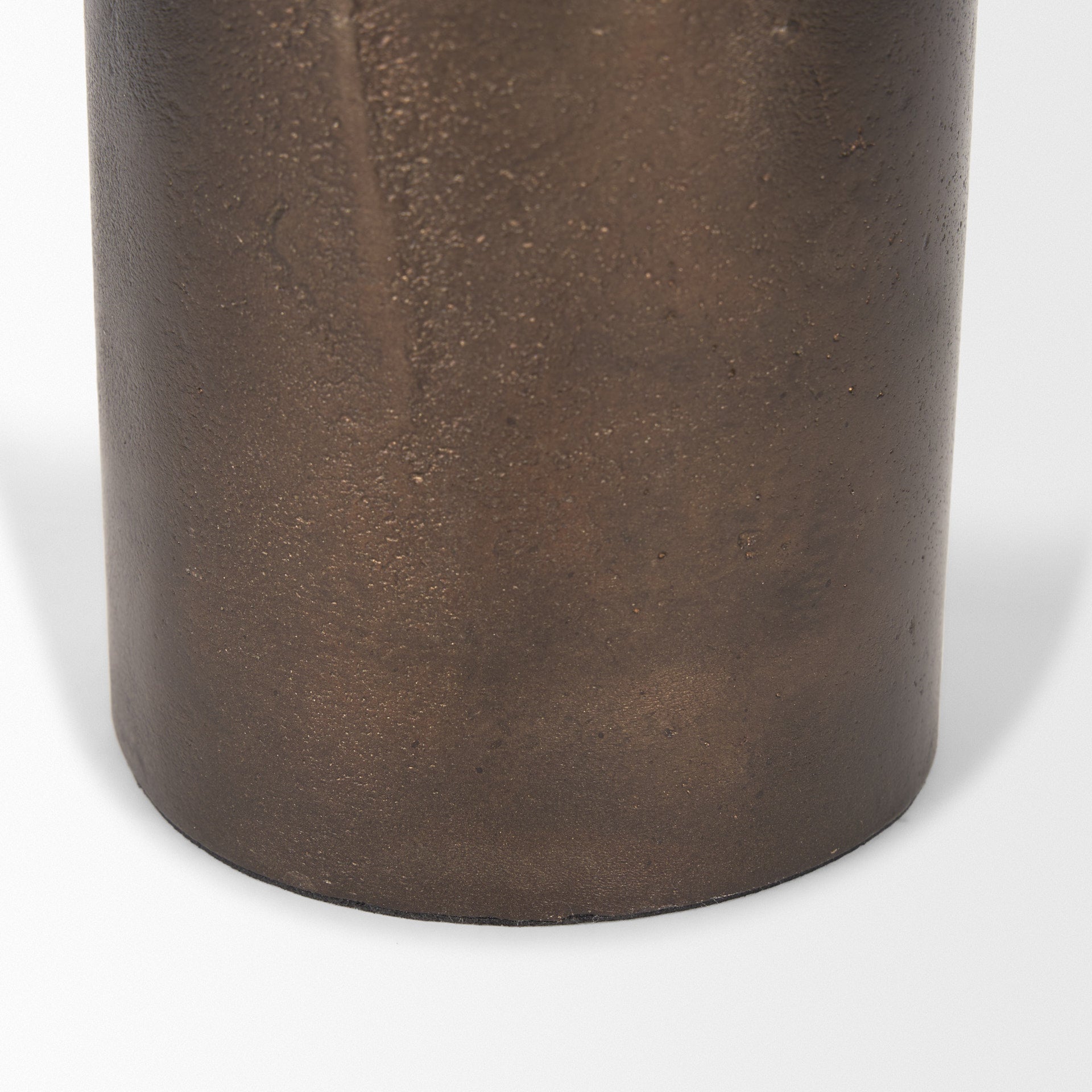 Petria Candle Holder, crafted from cast aluminum with an antiqued brass finish, designed to enhance the warm glow of candlelight