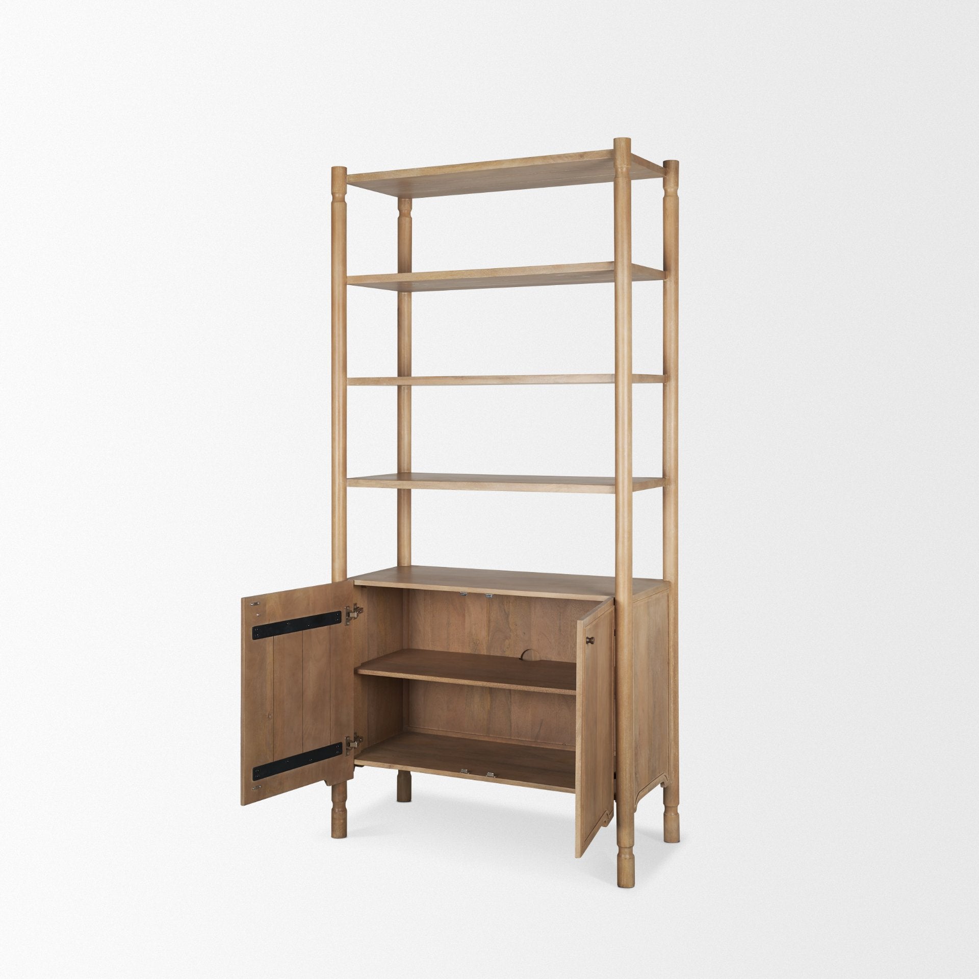 Phil Light Brown Wood 2 Door 3 Shelves Open Shelving Unit