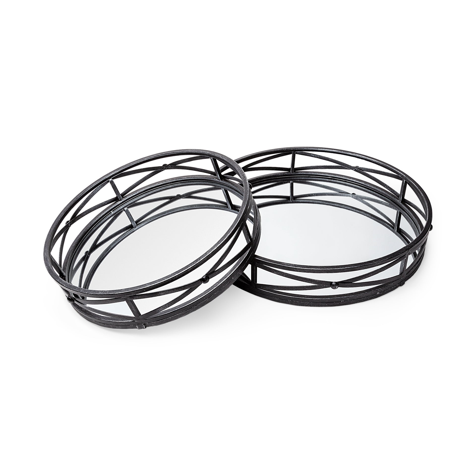 Piers (Set of 2) Black Metal Mirrored Round Trays