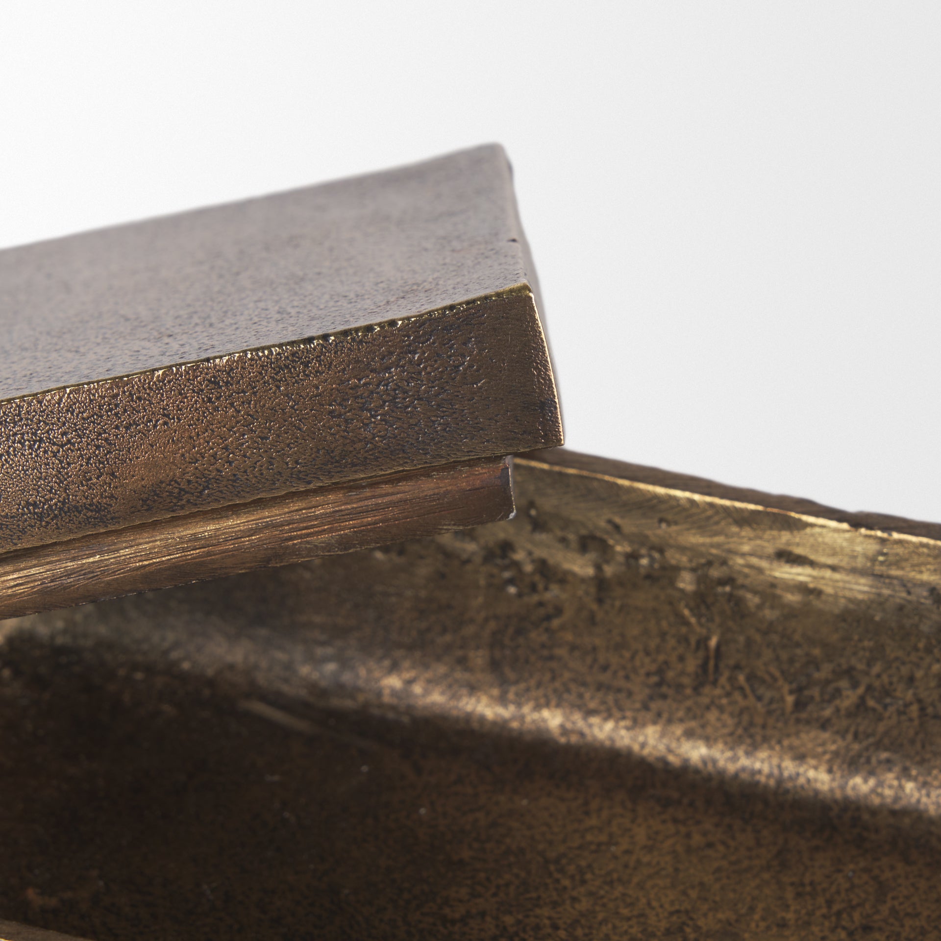 Porschia is a small cast aluminum antiqued gold metal decorative box.