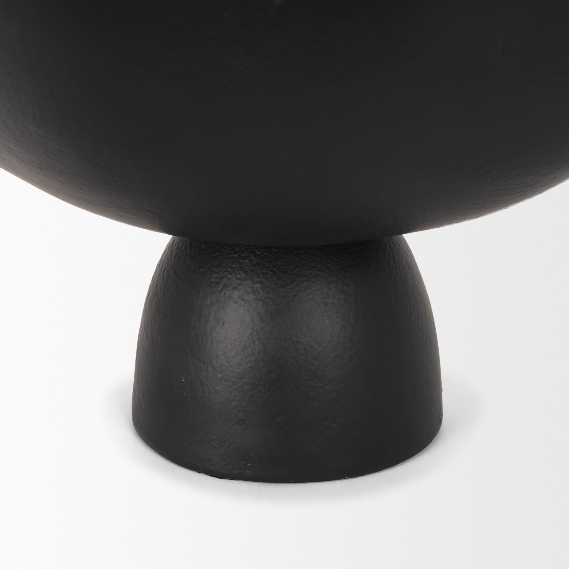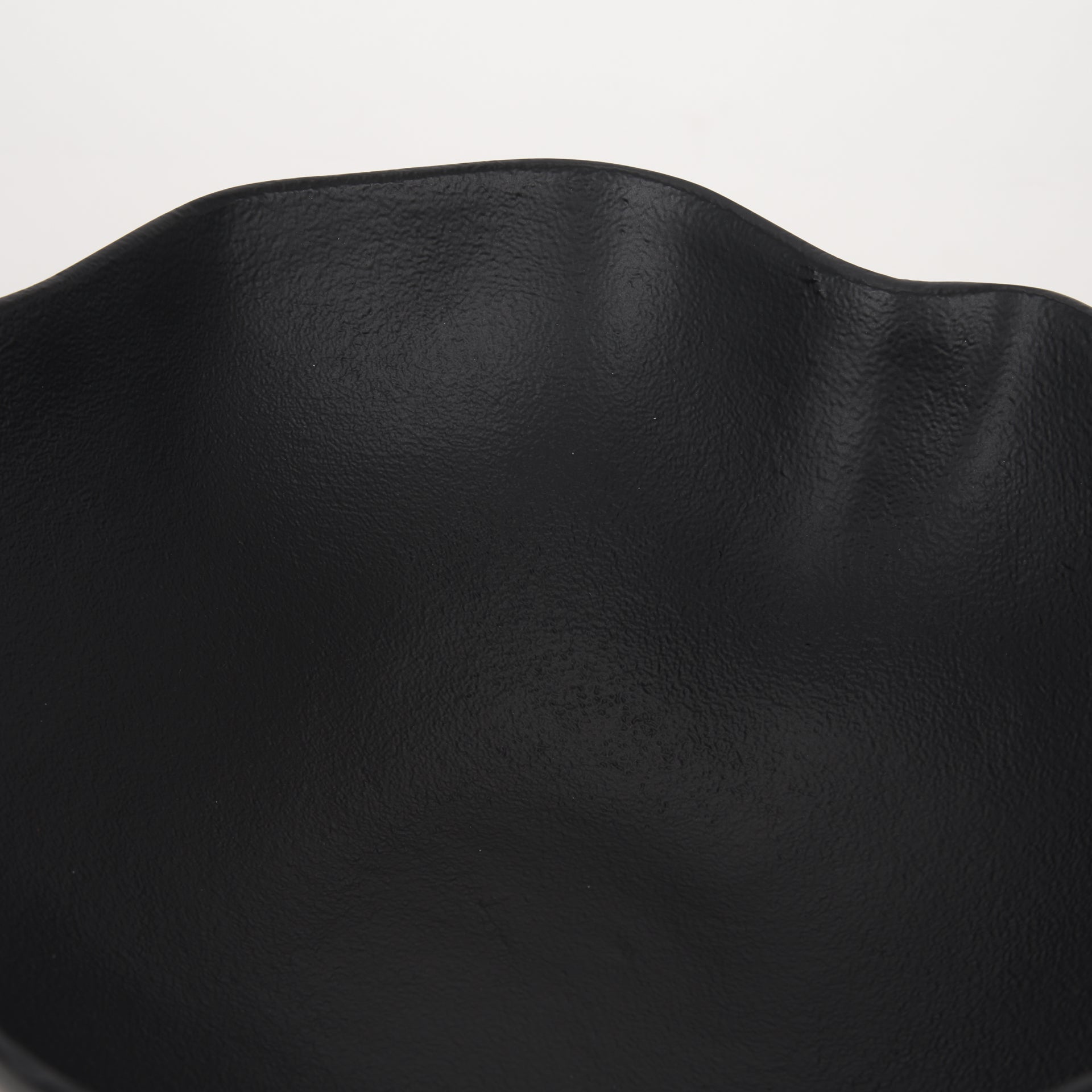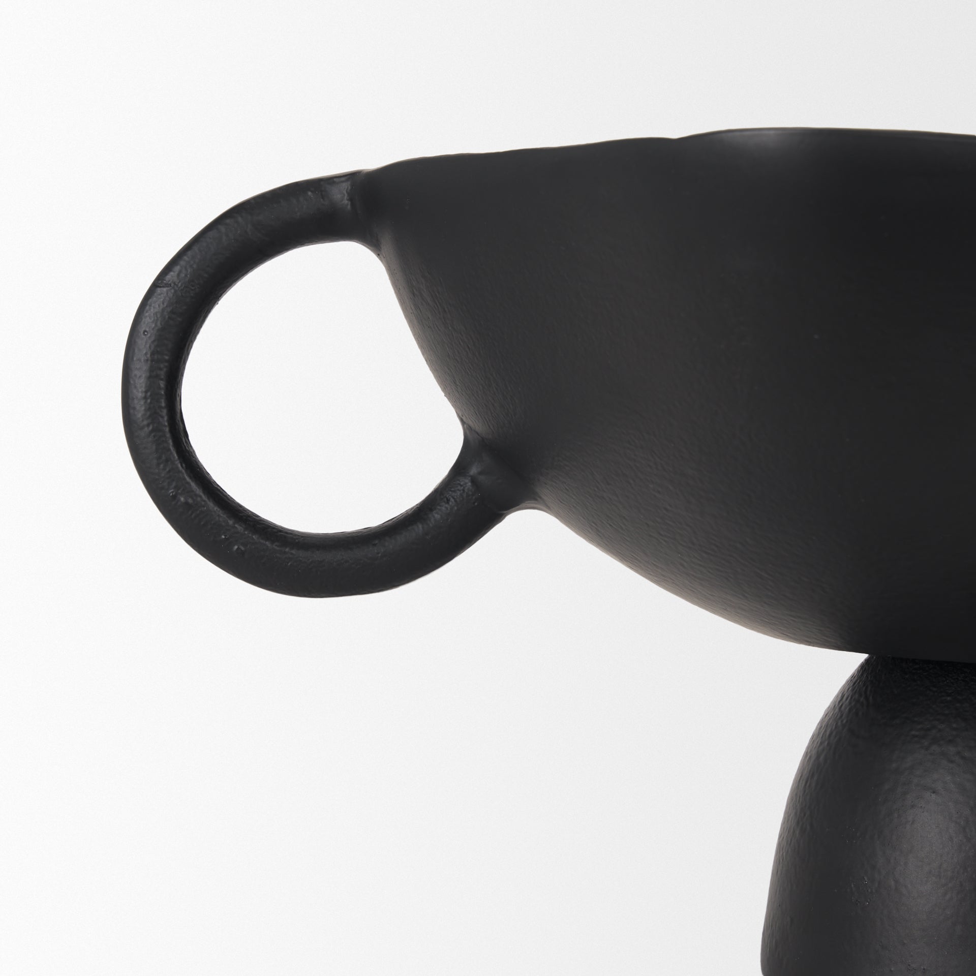 The Radka Decorative Bowl is expertly crafted from cast aluminum, showcasing organic lines and two handles, all accentuated by a powder coated matte black finish.