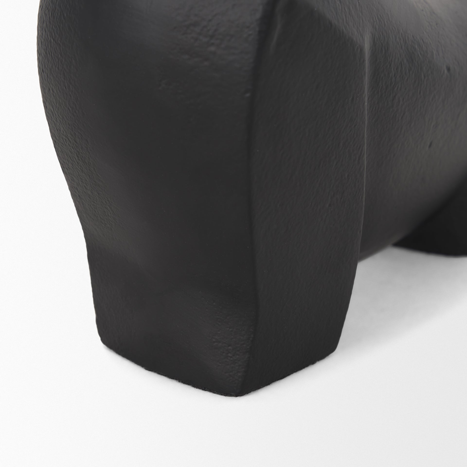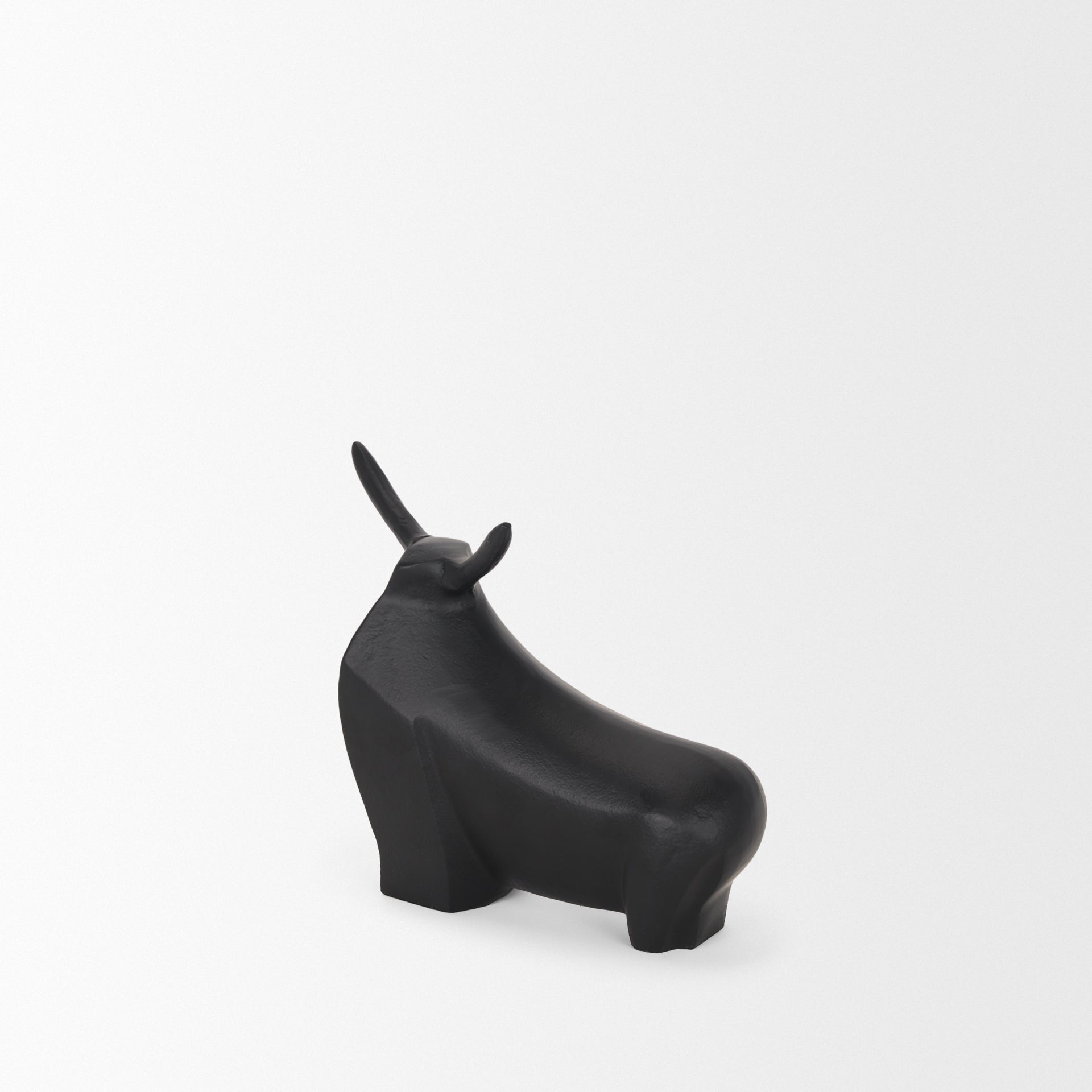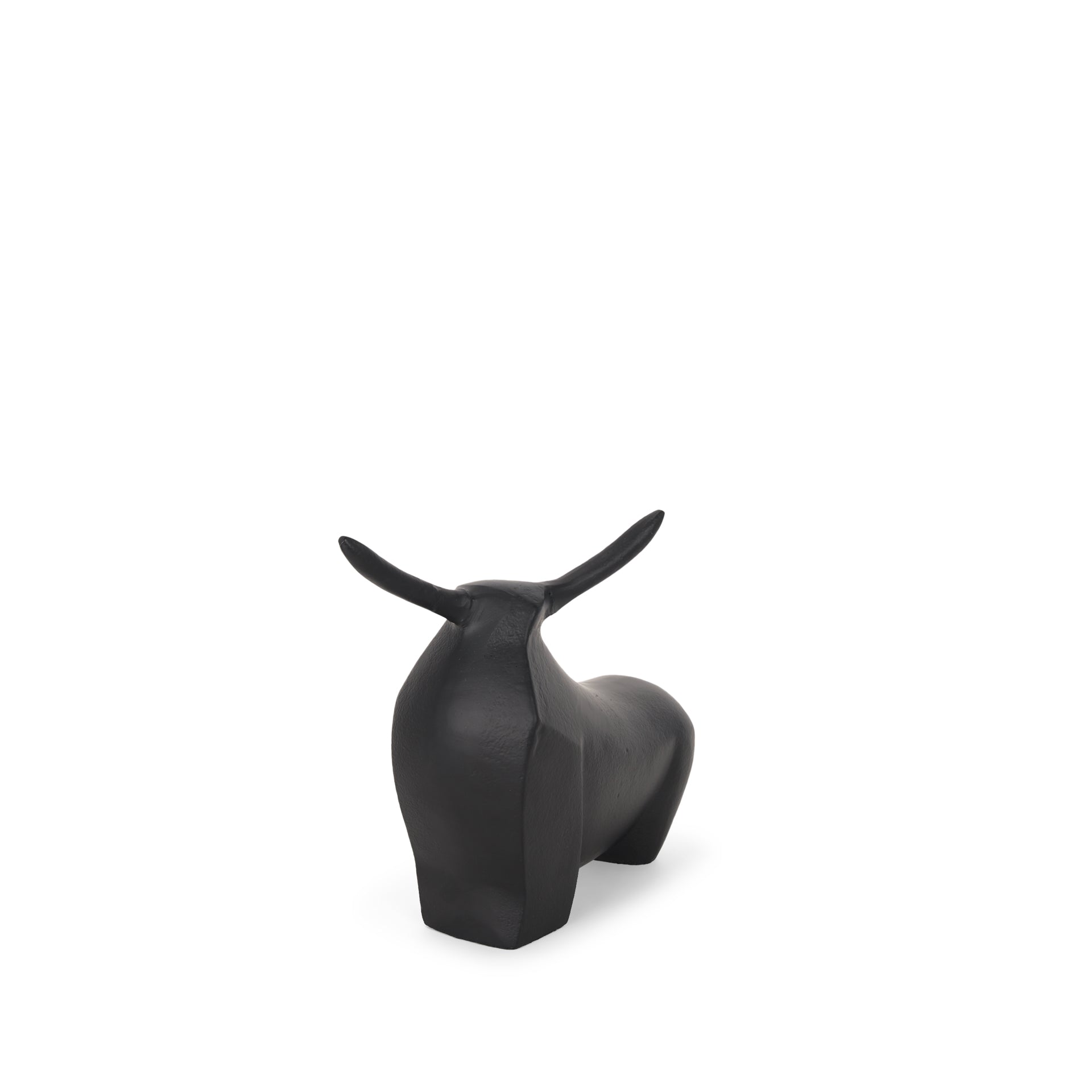 Radu Bull Decorative Object is crafted from cast aluminum, featuring sleek lines and a smooth matte black finish.