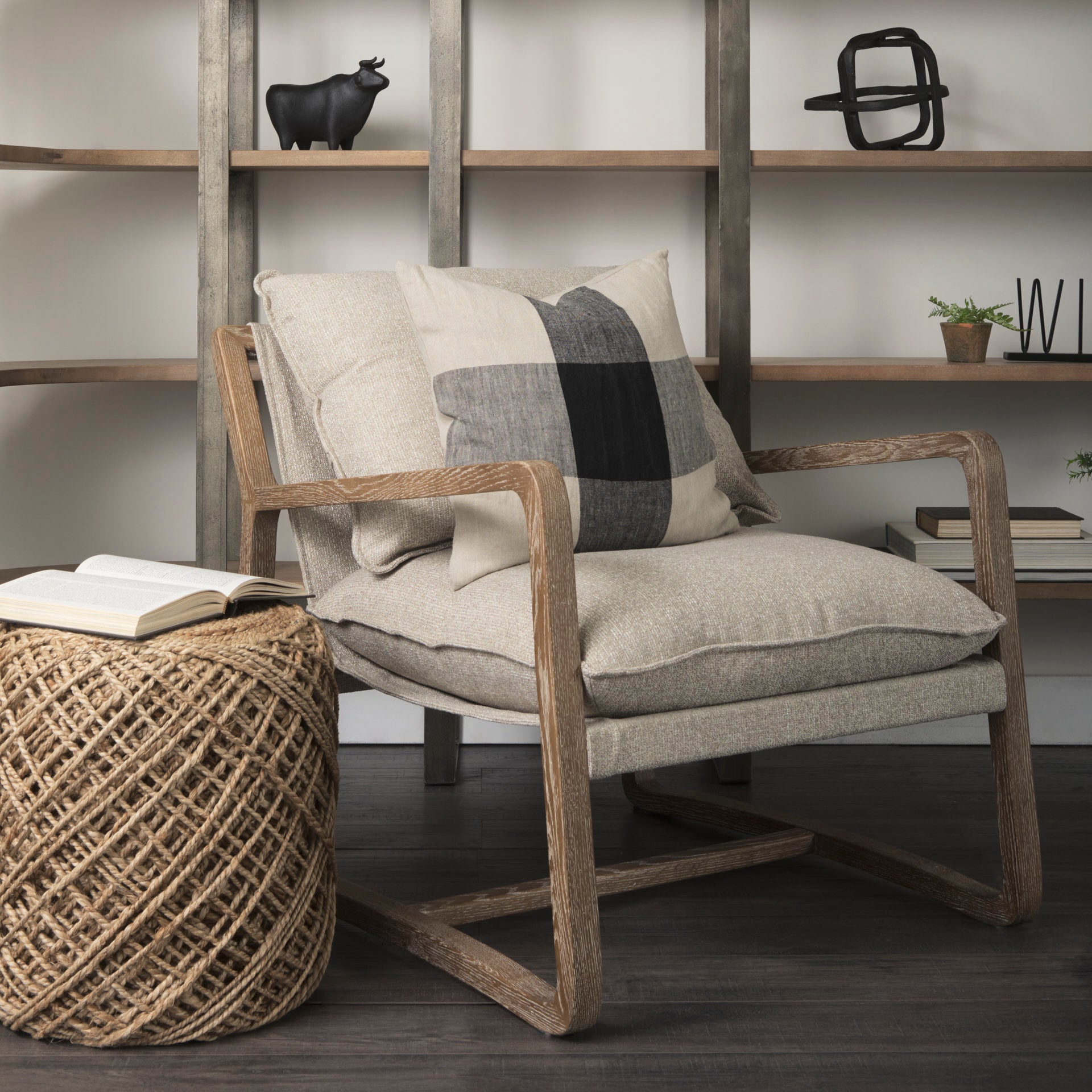 Raquel 18L x 18W Beige and Black Fabric Plaid Decorative Pillow Cover