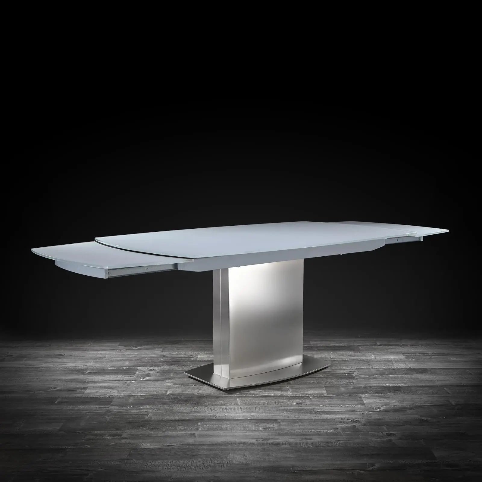 If you want a matte grey extendable dining table that embraces modern style, you’ll love the sleek lines and subtle nuances of this table. The 10mm acid wash matte grey top is complimented by a perfectly polished stainless steel base. For beauty and function, there's no finer choice than the Romeo Extendable Dining Table.