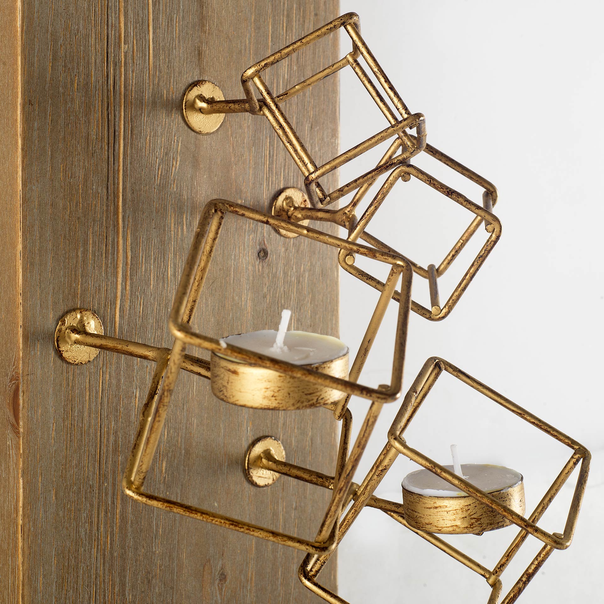 Salvador I 22H Wood Based Brass Metal Cube Wall Candle Holder