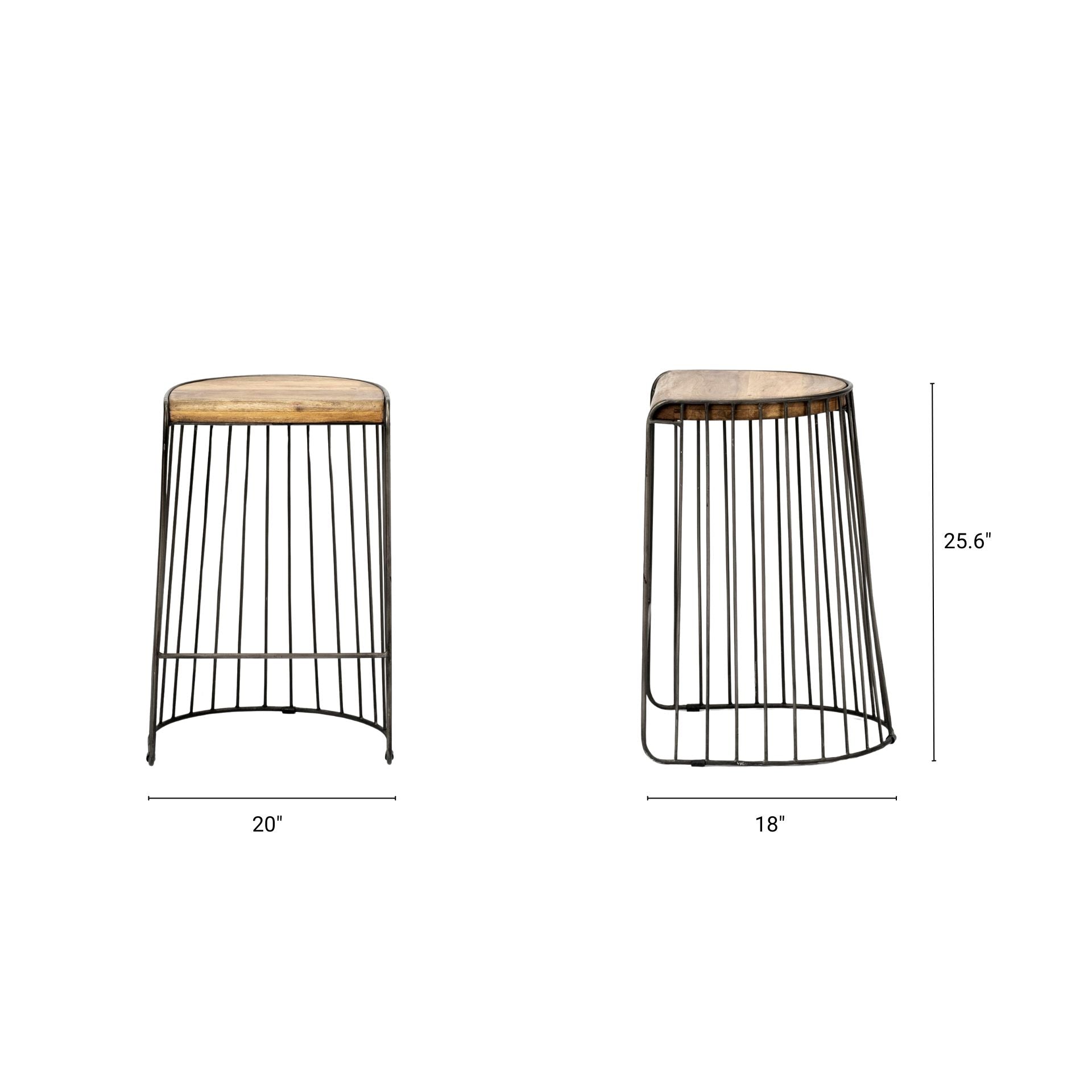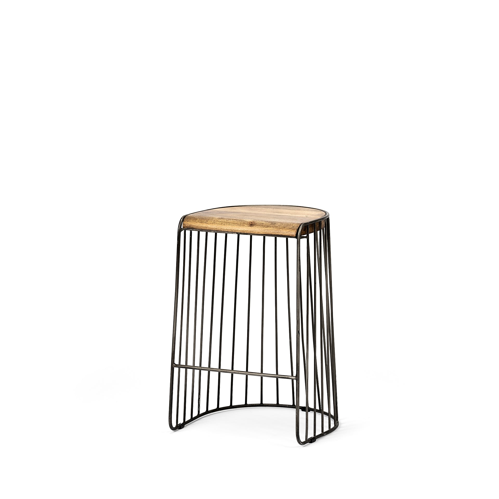 Seagram 25.6" Seat Height Brown Wood Seat Black Metal Frame Stool