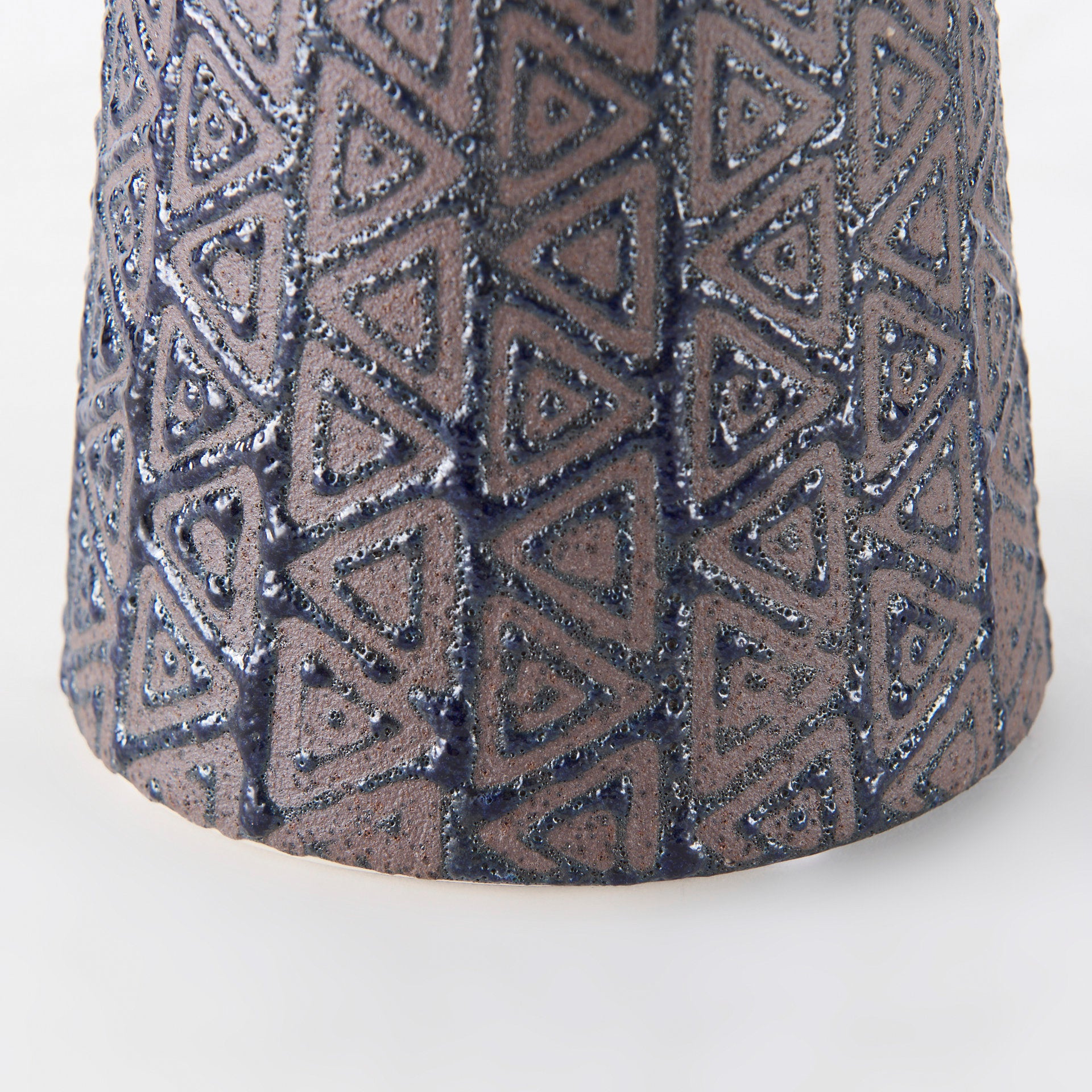 The Sefina is finished in a rich brown finish with black geometric patterns, making it a gorgeous vase that is sure to turn heads.Β