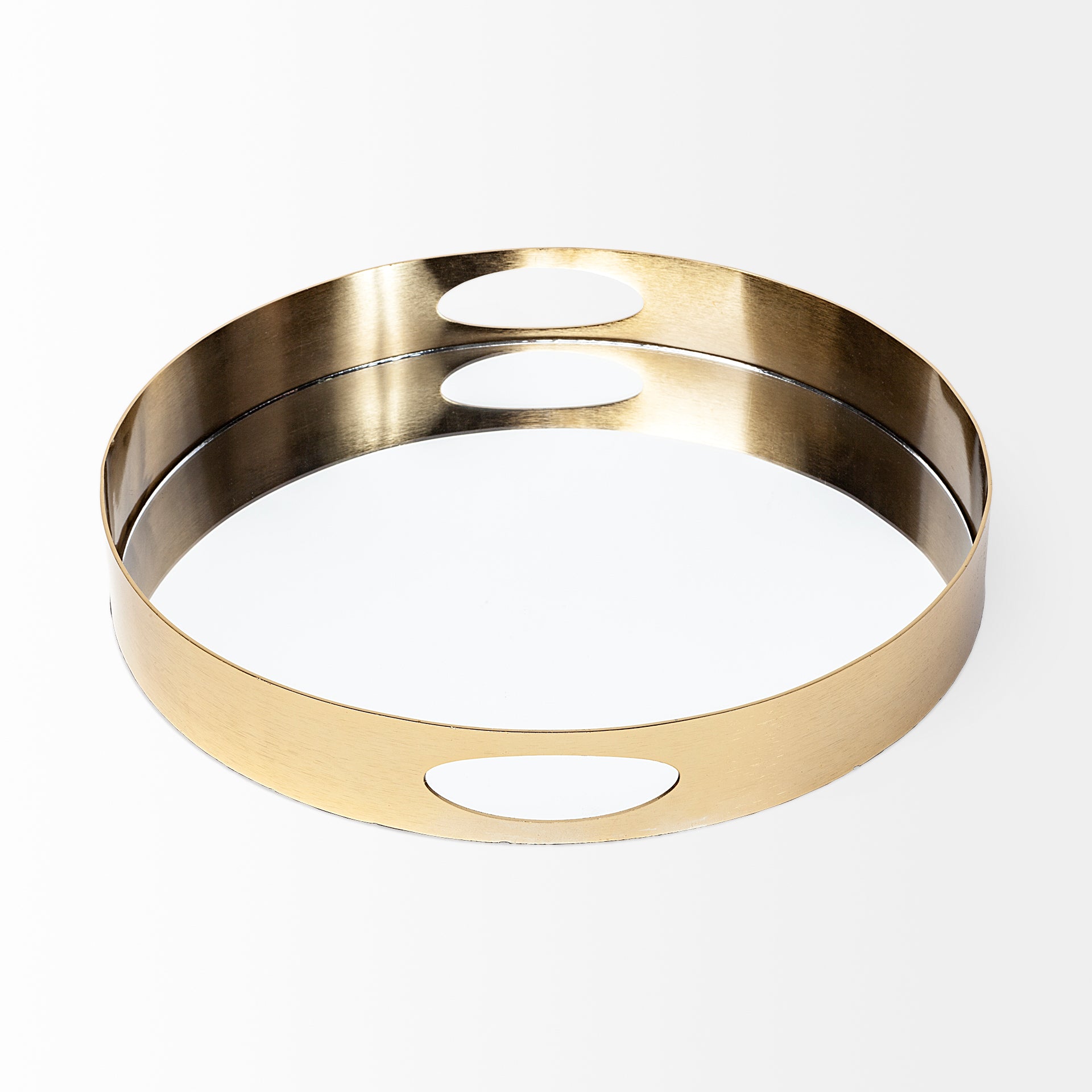 Serkis 15L x 15W Gold Metal Mirrored Base Round Tray