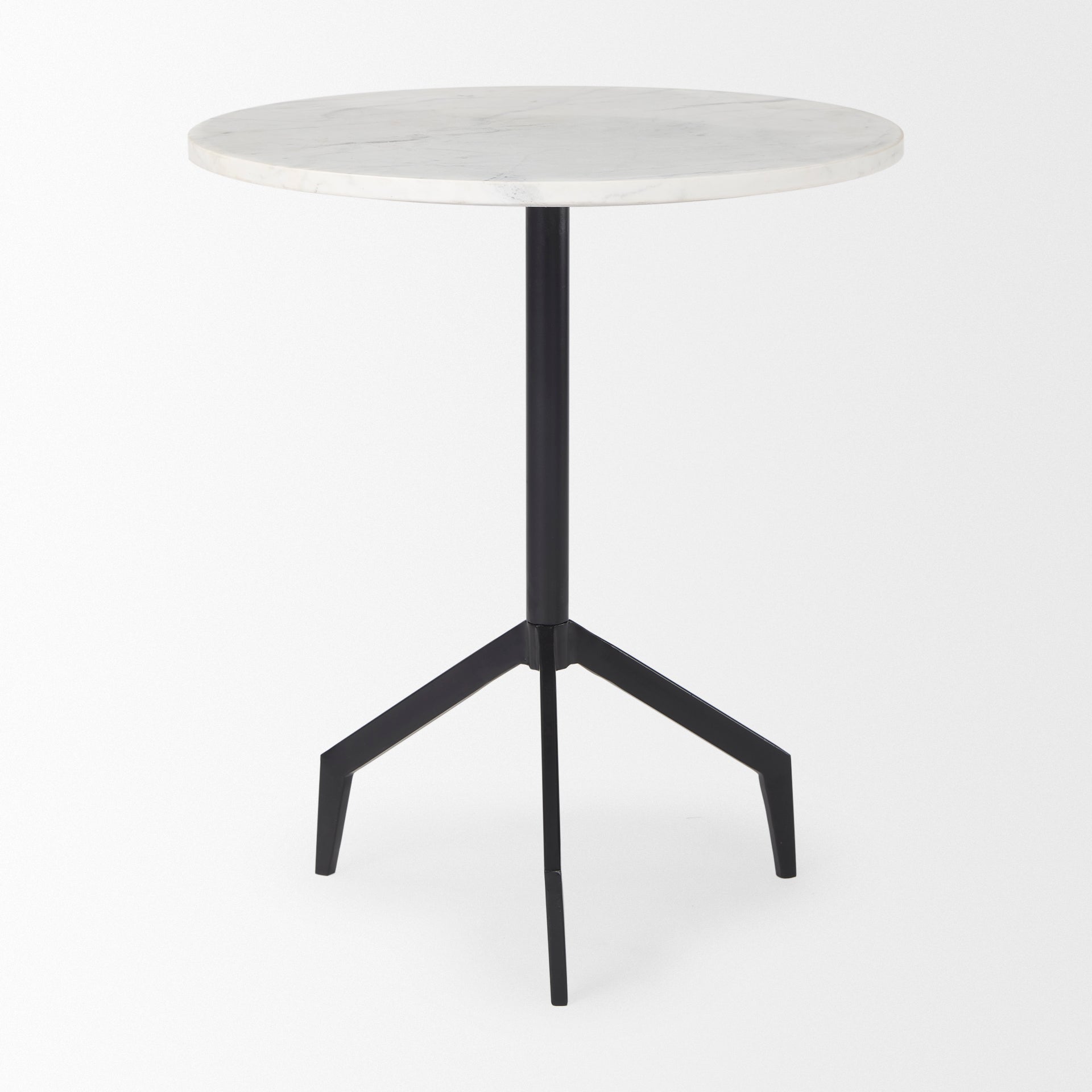 Serre Marble Top 3 Prong Black Metal Base End Table