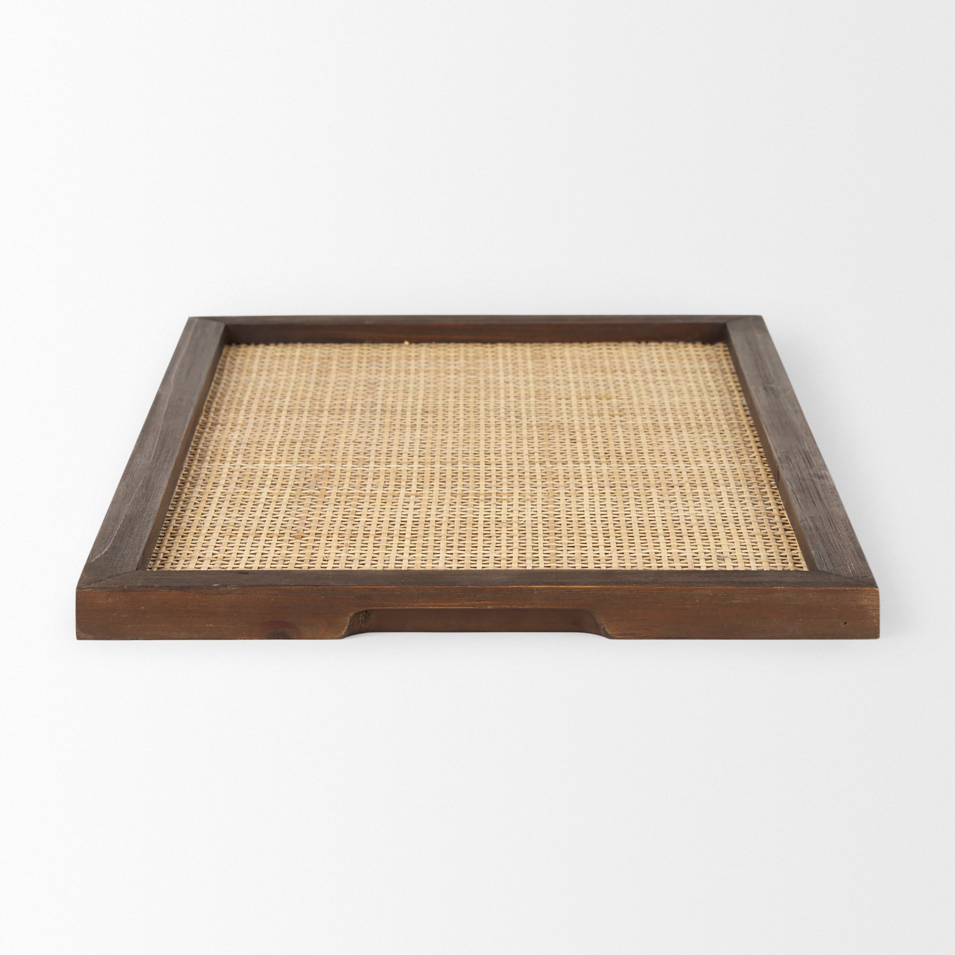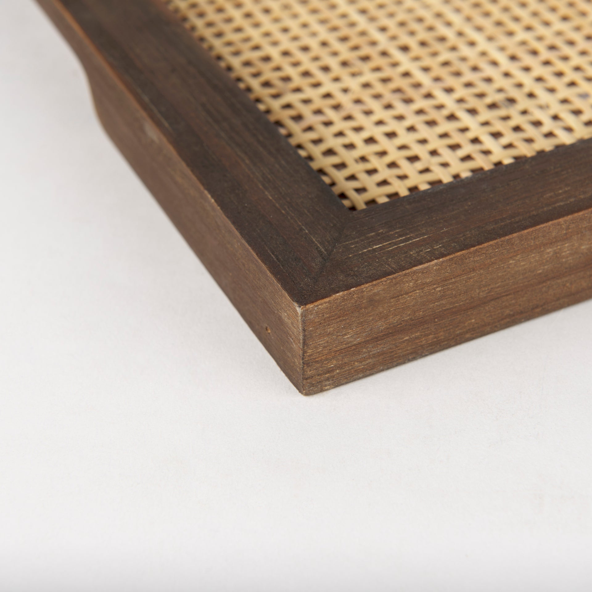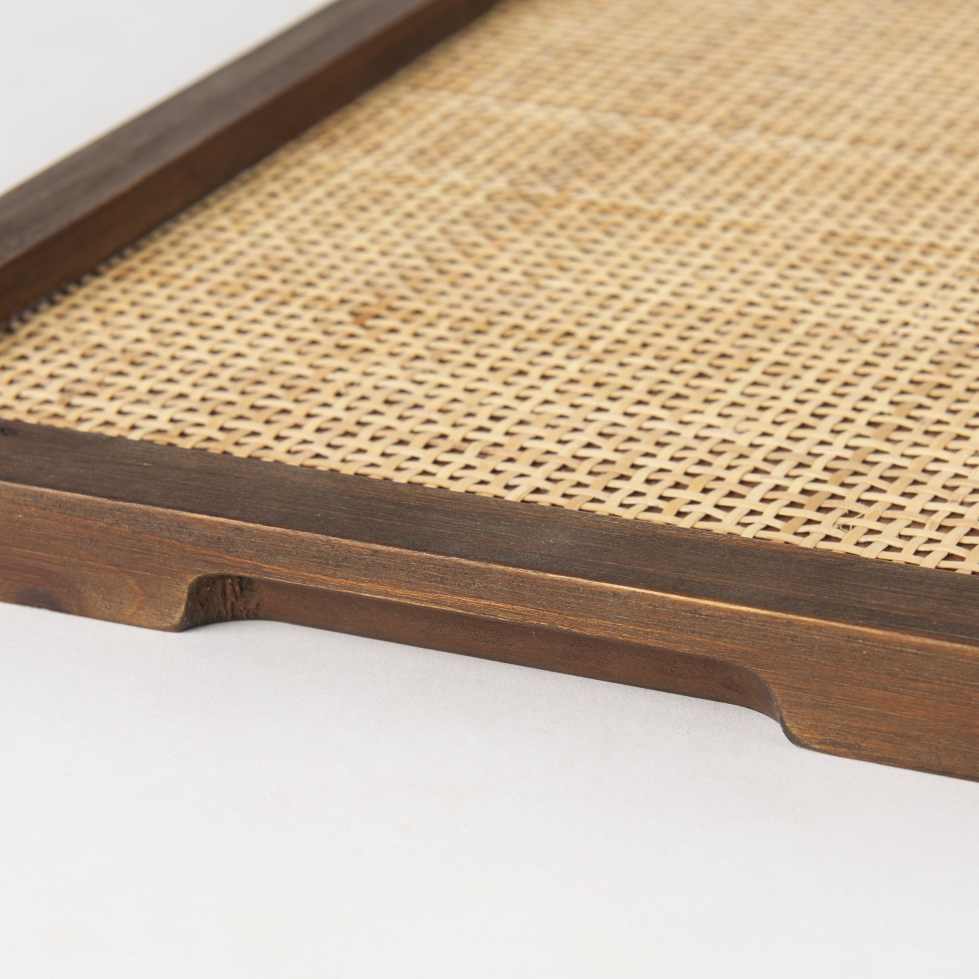 Silas Cane and Medium Brown Wood Rectangular Tray