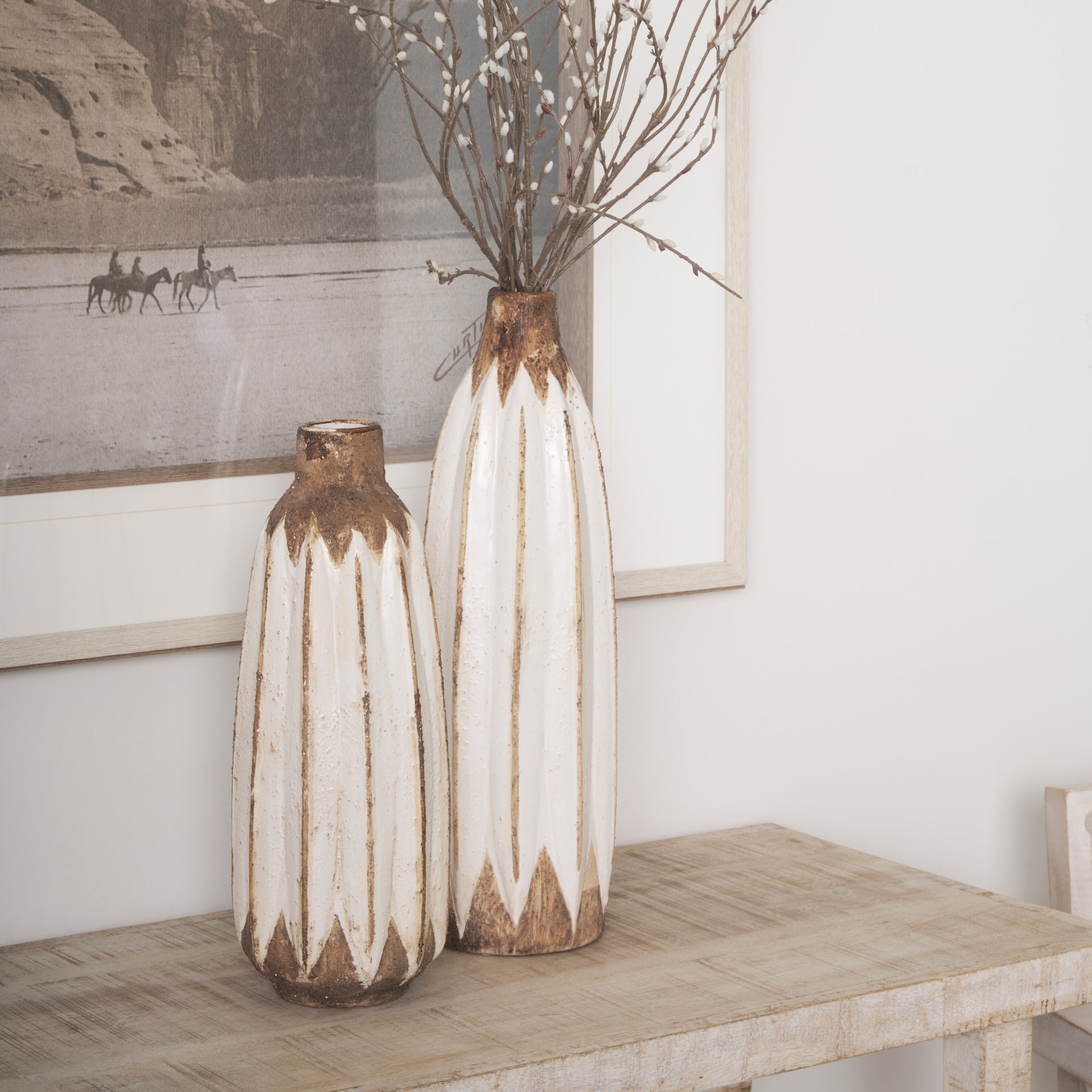 Sisko I Short Rustic Brown White Ceramic Vase