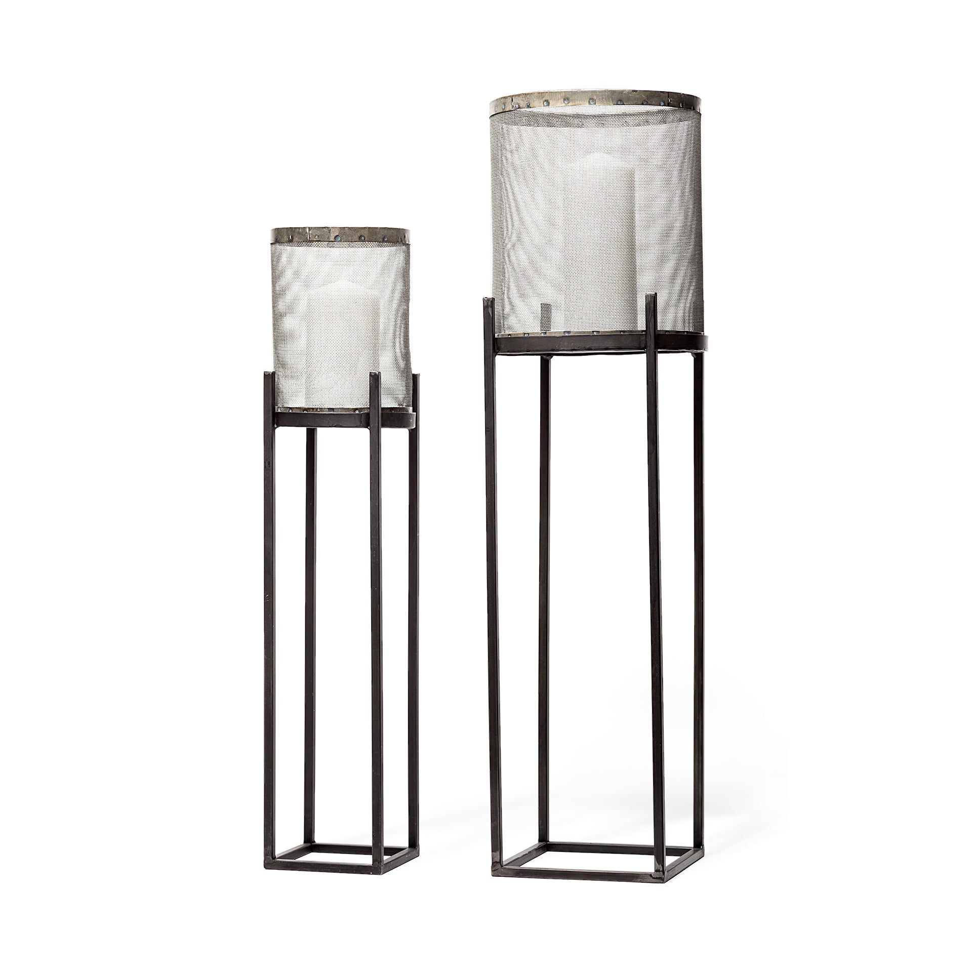 Steen Set of Two Black Meshed Metal Candle Holder Lanterns