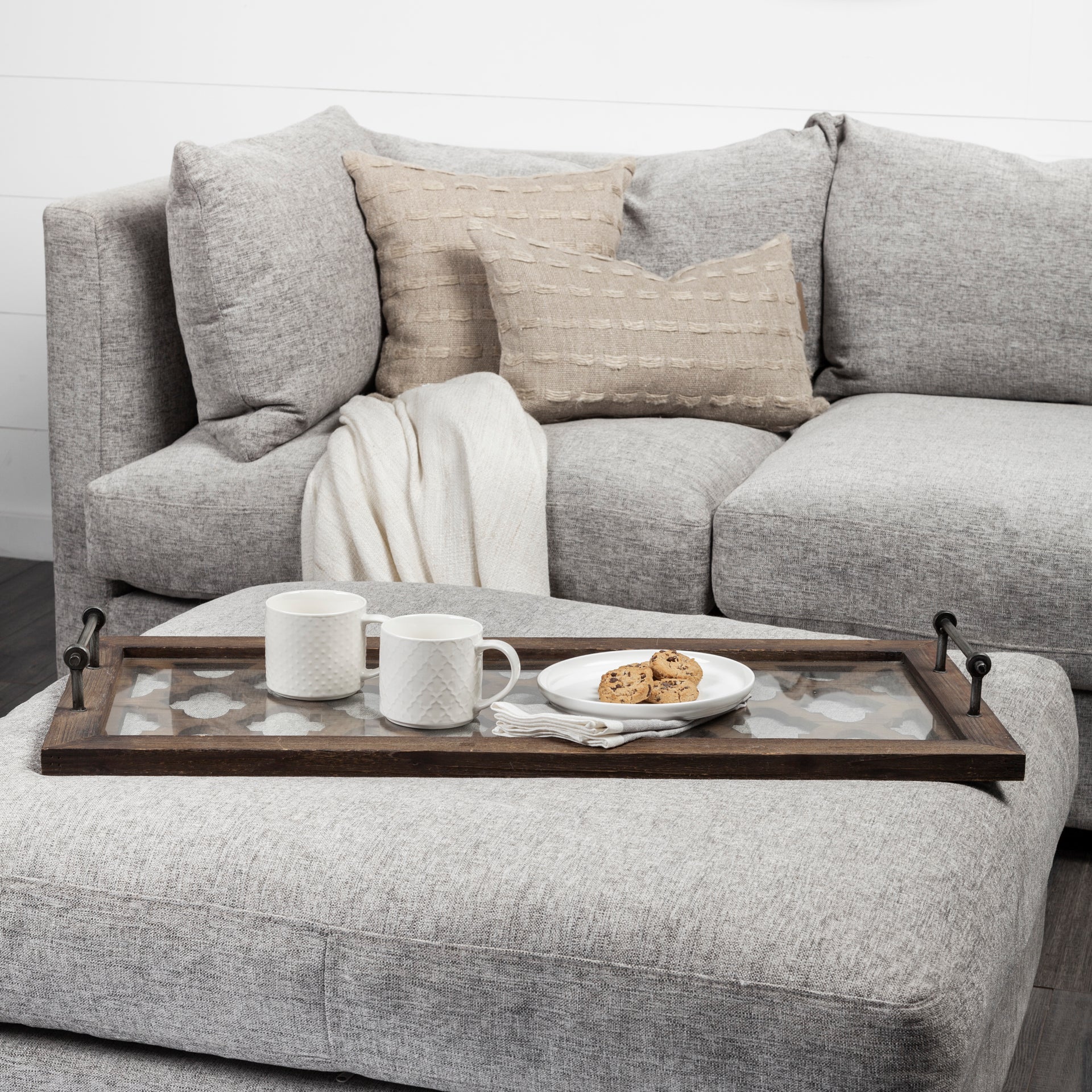 Stotonic 35L x 16W Brown Wood W Glass Top Rectangular Serving Tray
