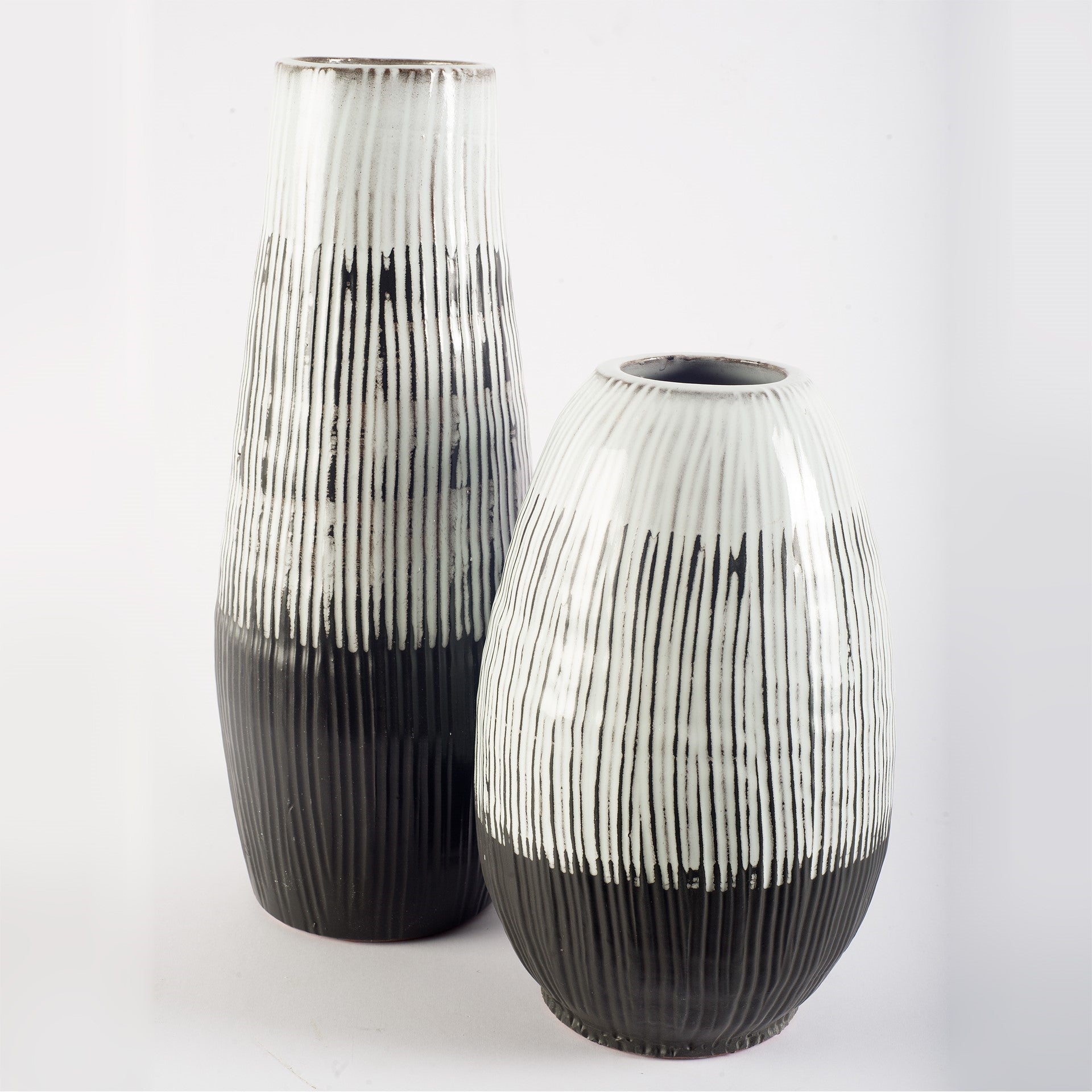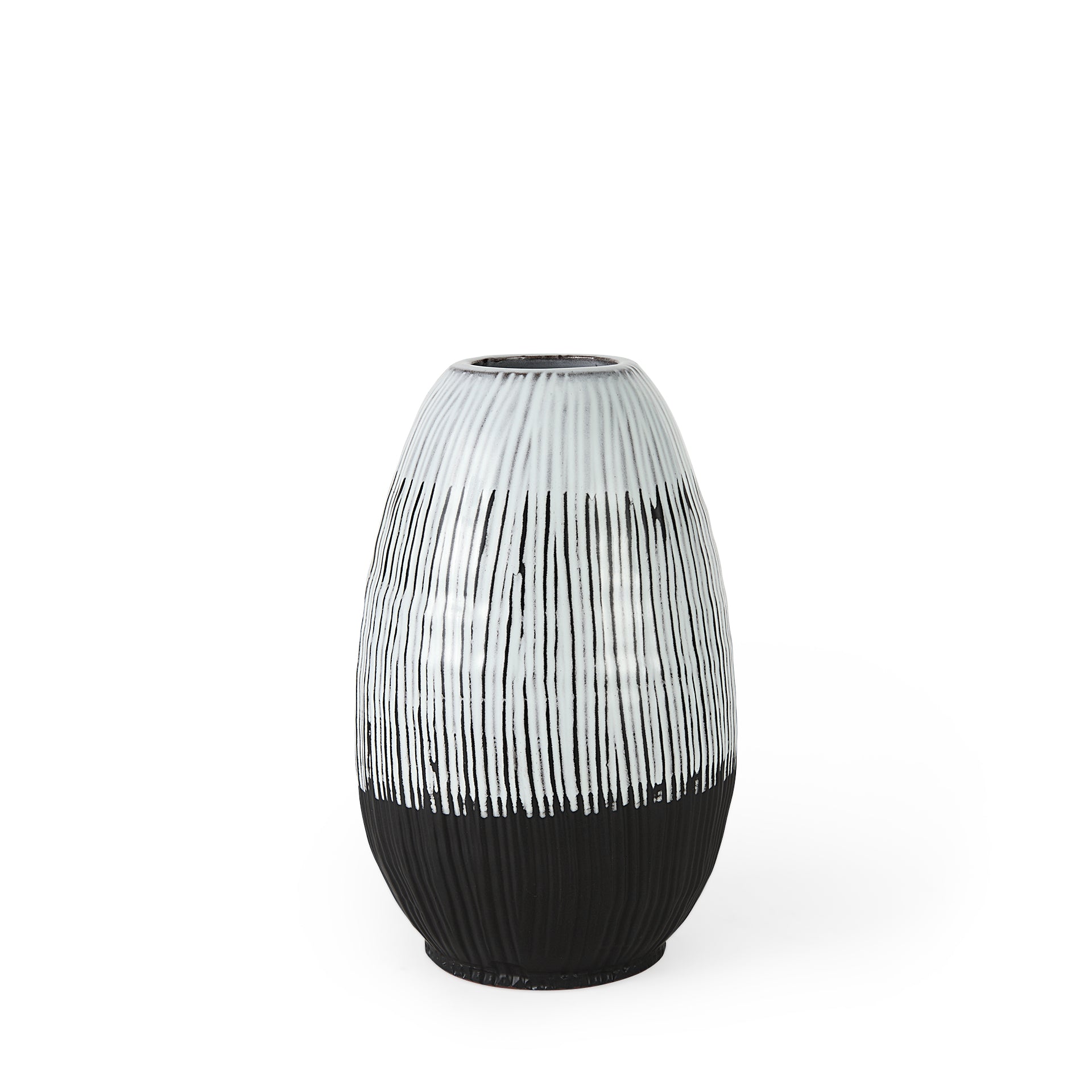 The Tamani features a dark brown base with hand painted white stripes, making it a gorgeous vase that is sure to turn heads.Β