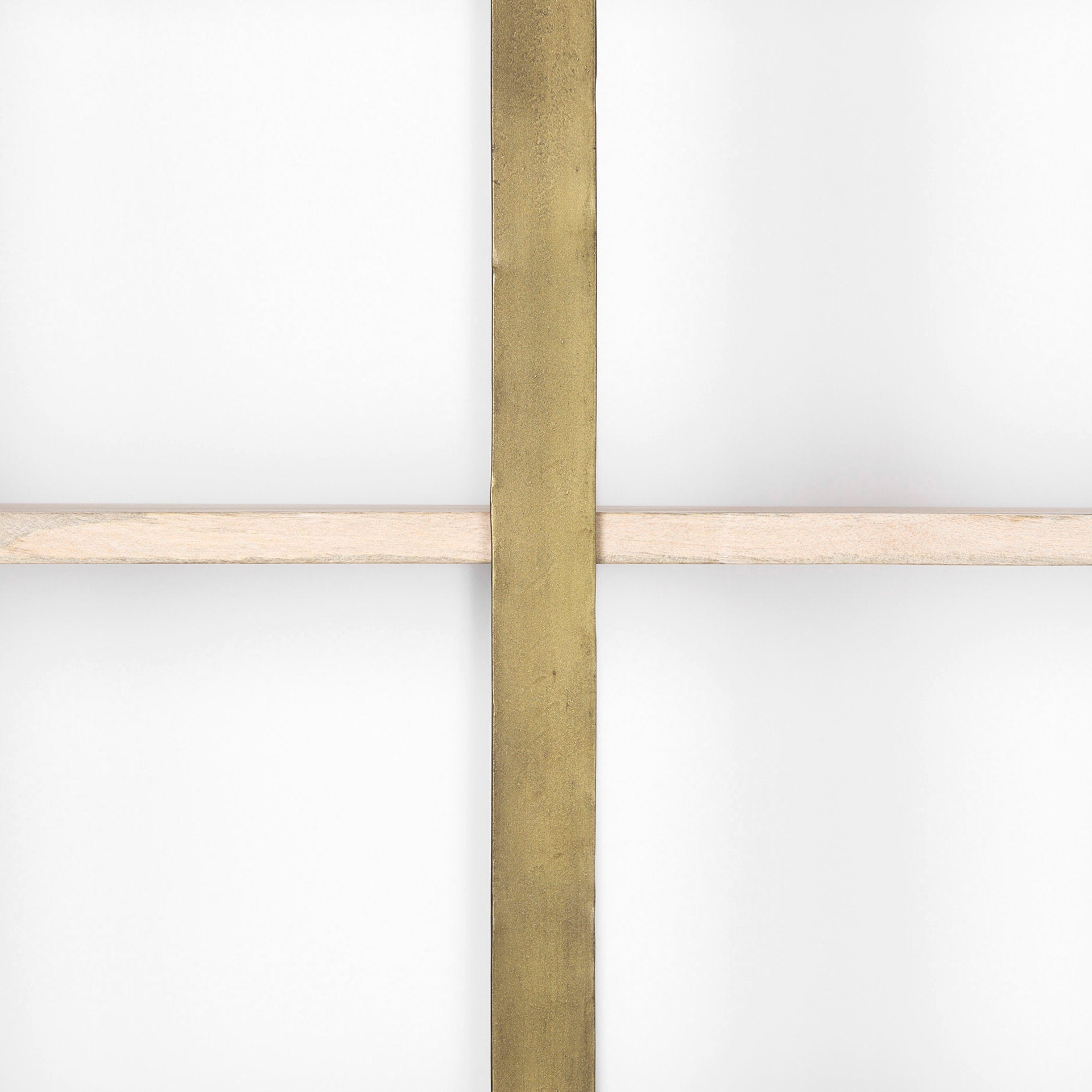 Light brown wood and metal frame with gold finish